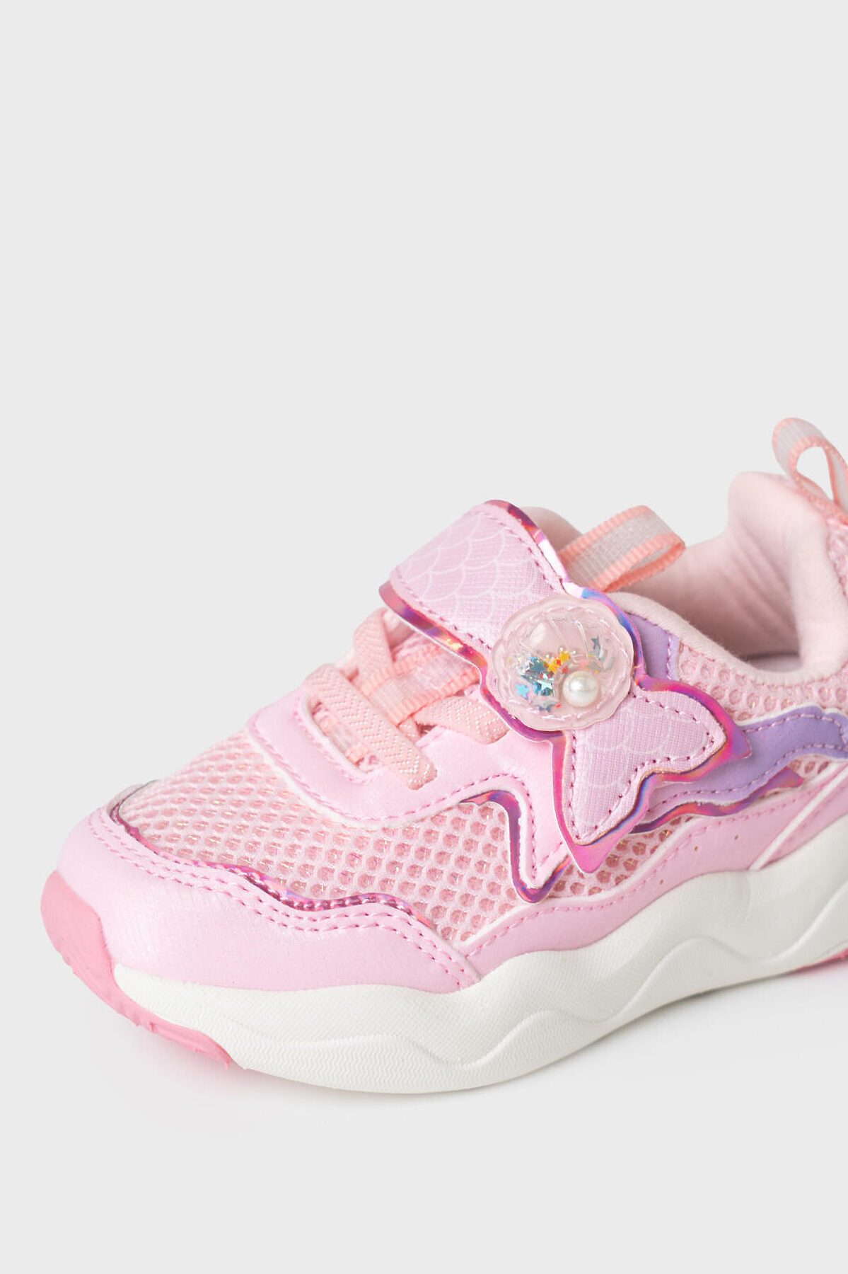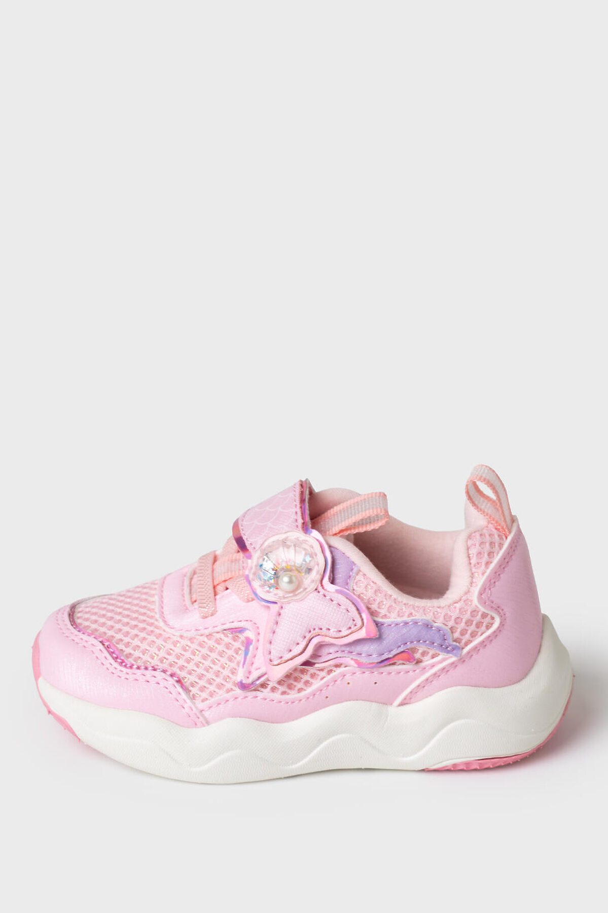 Детские кроссовки для девочки с оригинальной формой липучки в виде хвоста русалки. Кроссовки выполнены из дышащего текстиля и искусственной кожи. В обуви стоит текстильная 100% хлопковая подкладка которая обладает высокой гигроскопичностью. Одна широкая липучка очень удобны для детей при обувании. Съемная стелька выполнена из свиной натуральной кожи. Формоустойчивый задник поддерживает стопу в правильном положении. Эргономичная форма колодки обеспечивает правильное формирование стопы ребенка. Подошва из ЭВА очень легкая и гибкая. а дополнительная вставка из ТПР делает подошву нескользкой и более износостойкой.