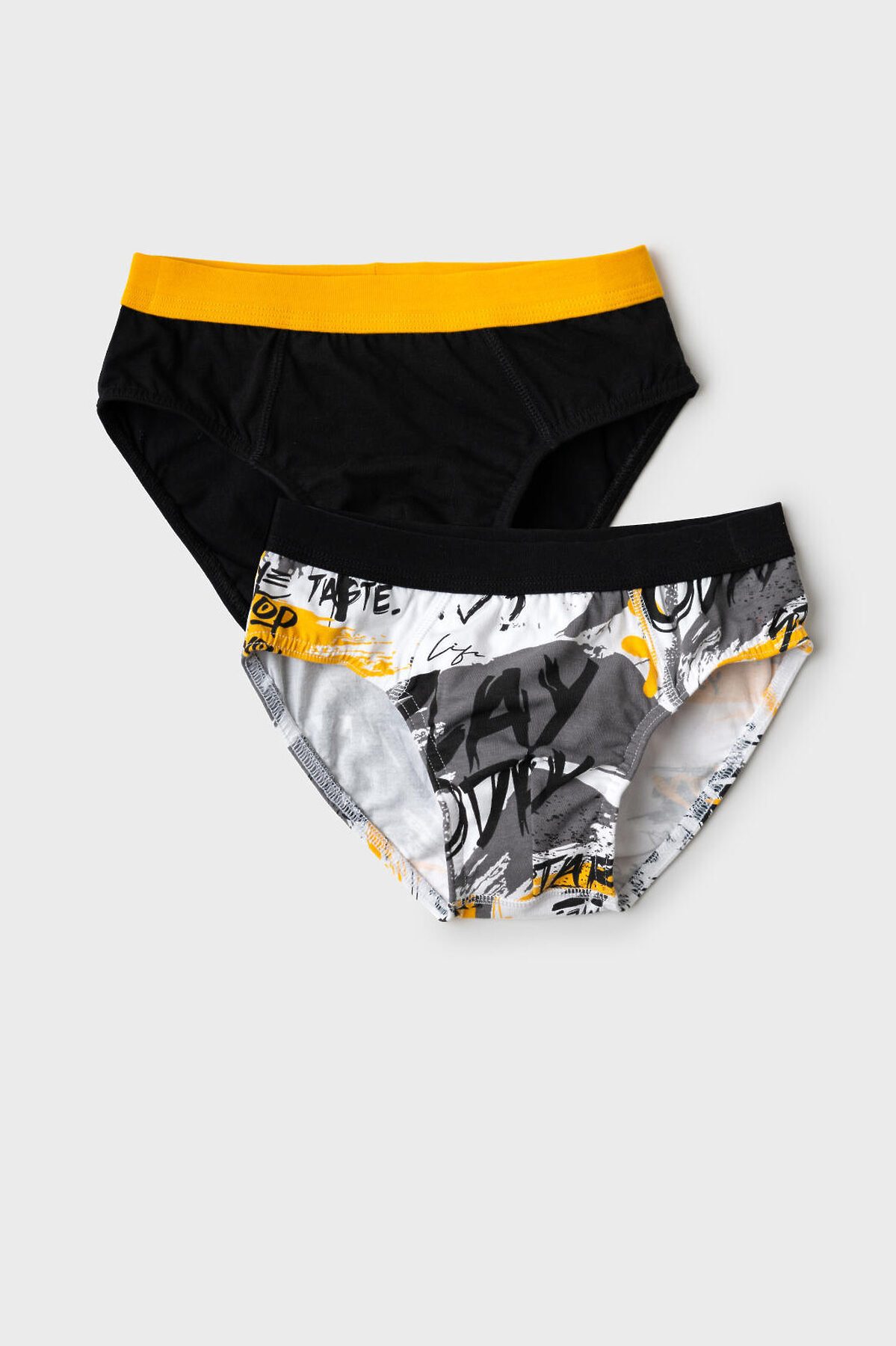Набор из двух трусов-брифов для мальчика подростка. У изделий удобный эластичный пояс, мягкие обработанные края пройм и анатомическая вставка спереди. Такой крой обеспечивает хорошую посадку и комфорт в носке. Материал - хлопковый, мягкий трикотаж.