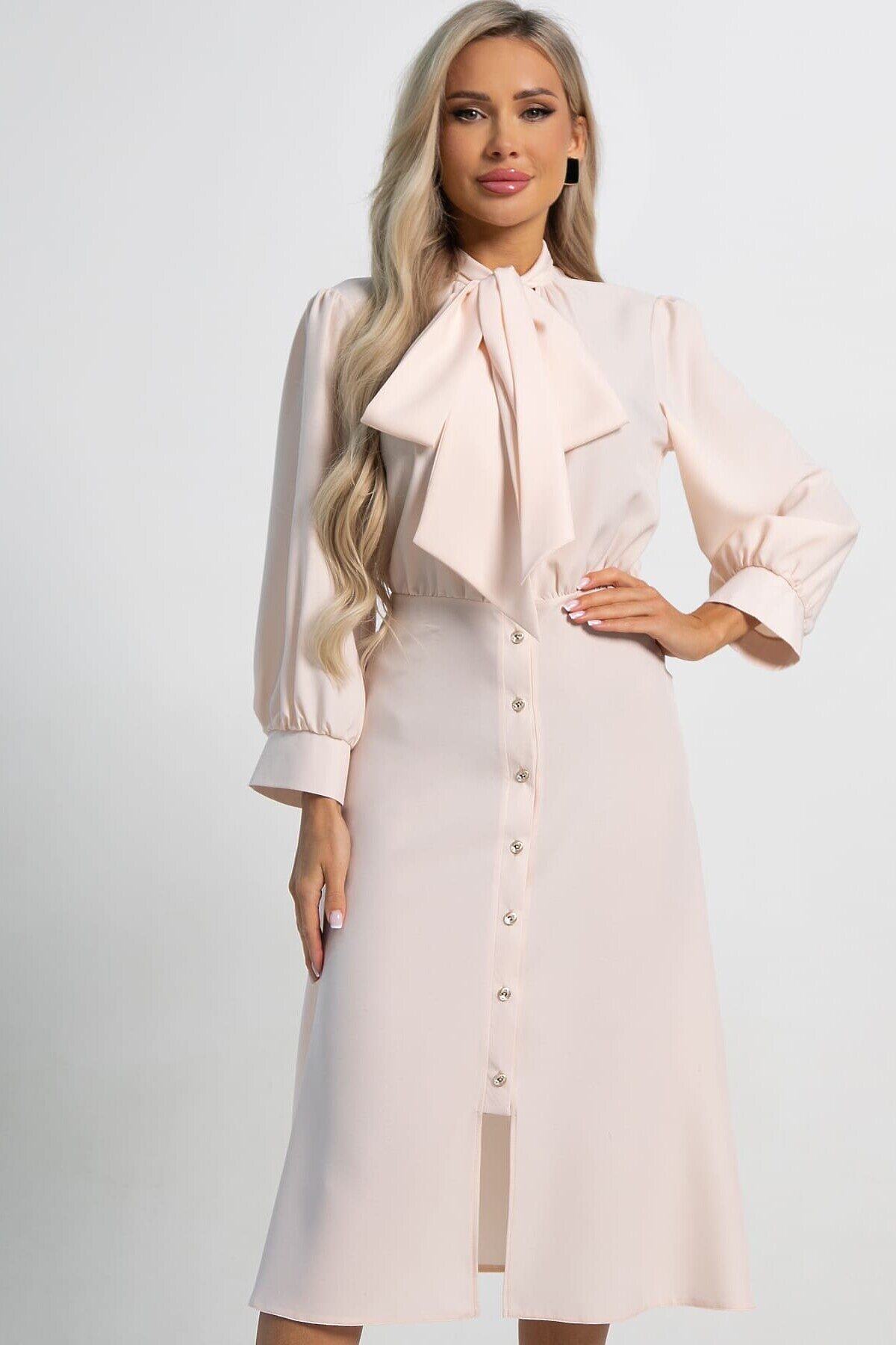 Откройте для себя воплощение утонченности и изысканности с нашим новым платьем, которое станет вашим ключом к созданию неповторимого образа. Завязки на горловине придают модели особый шарм. Это платье подчеркнёт вашу уверенность и женственность, идеально подходя как для праздничных мероприятий, так и для создания элегантного повседневного образа.