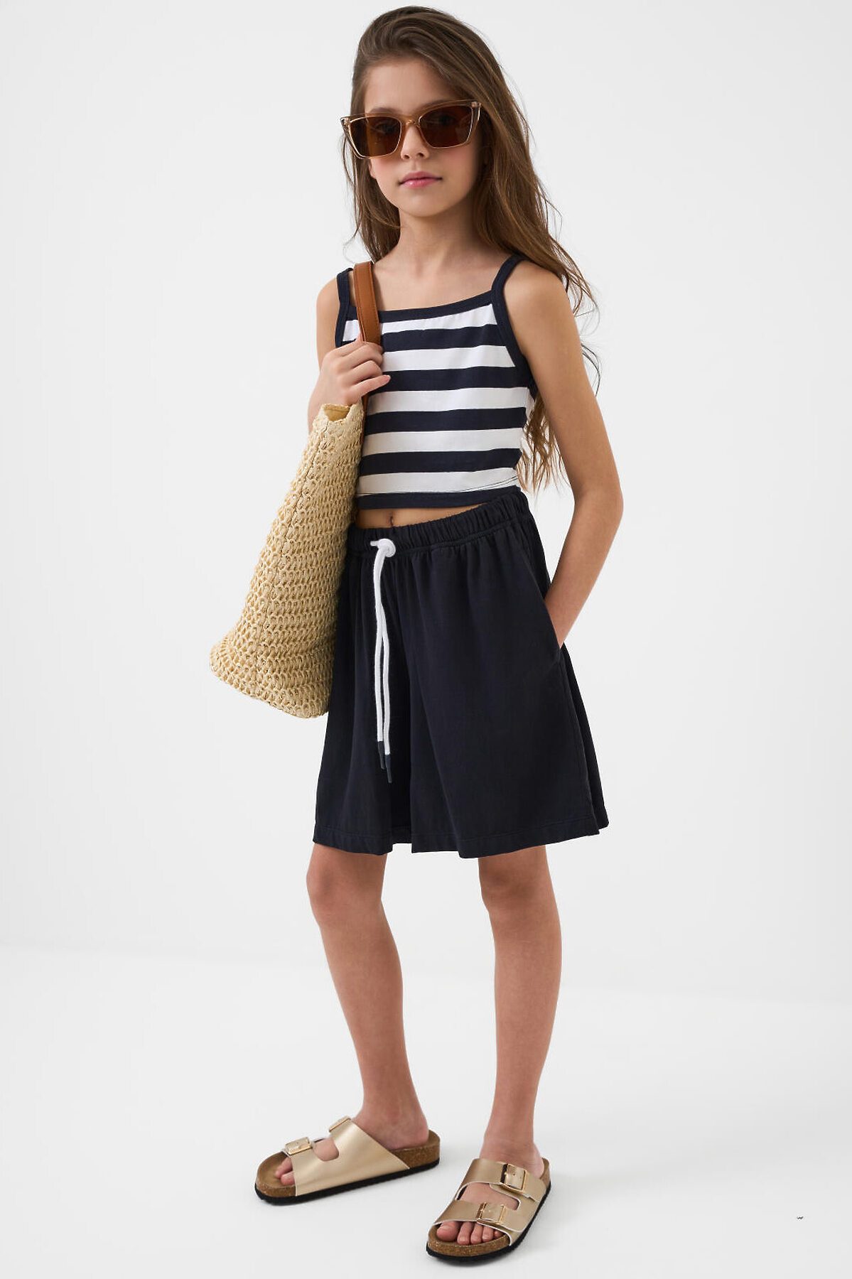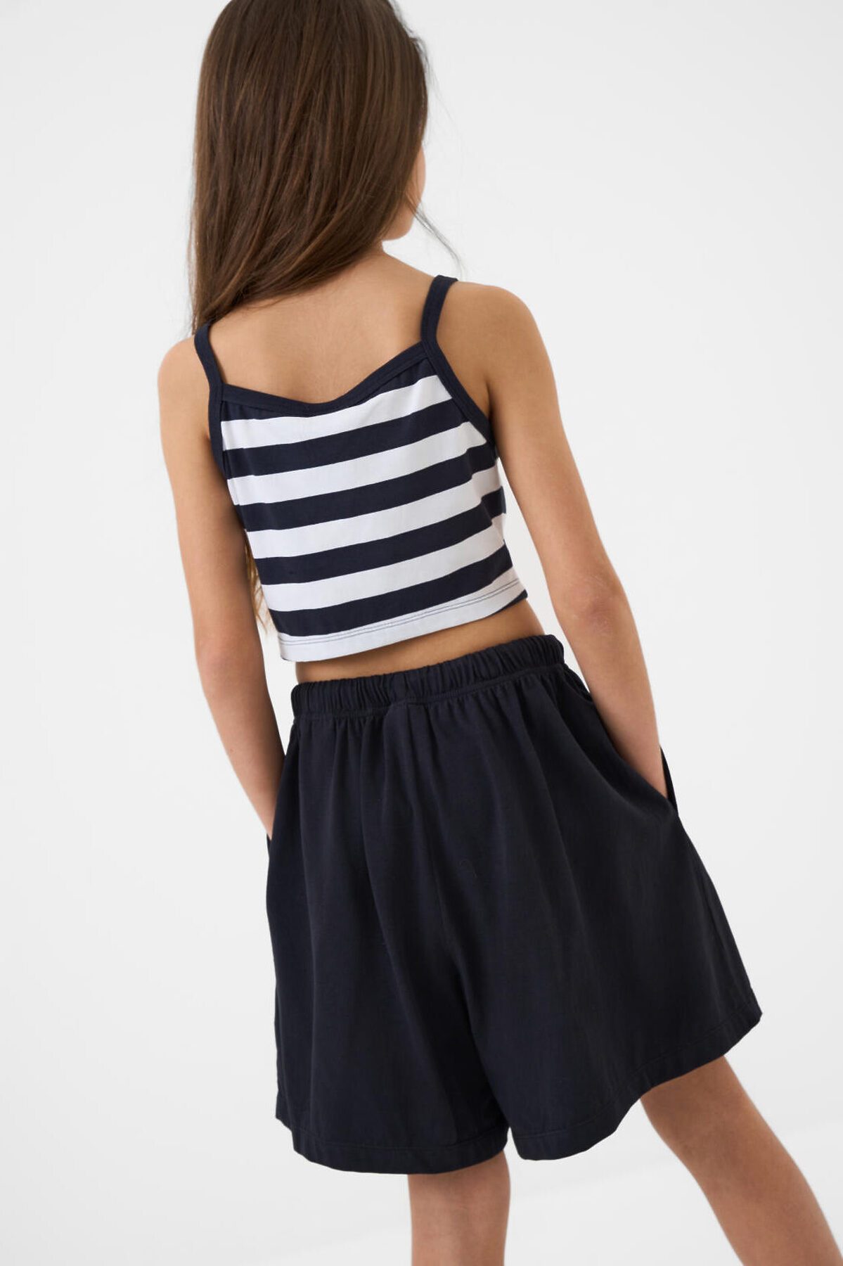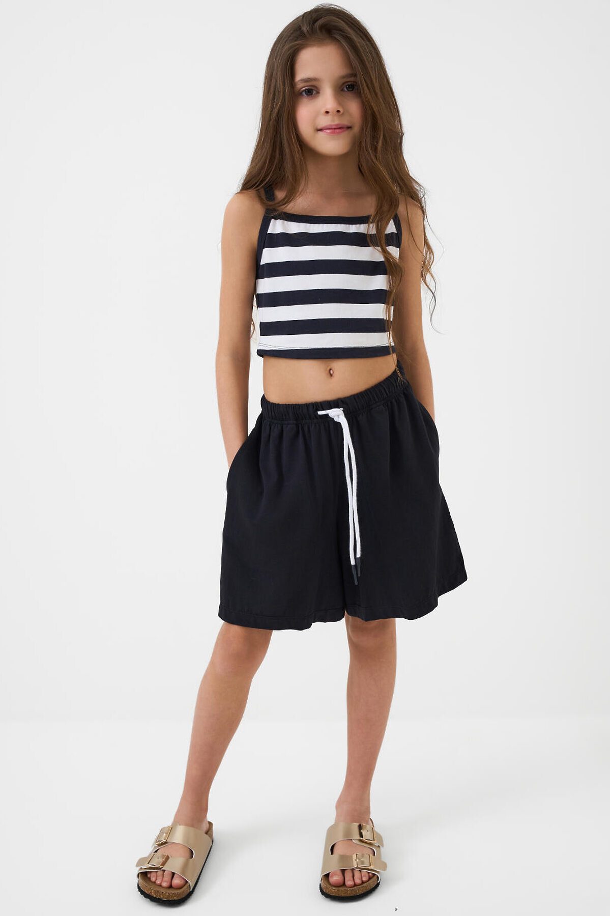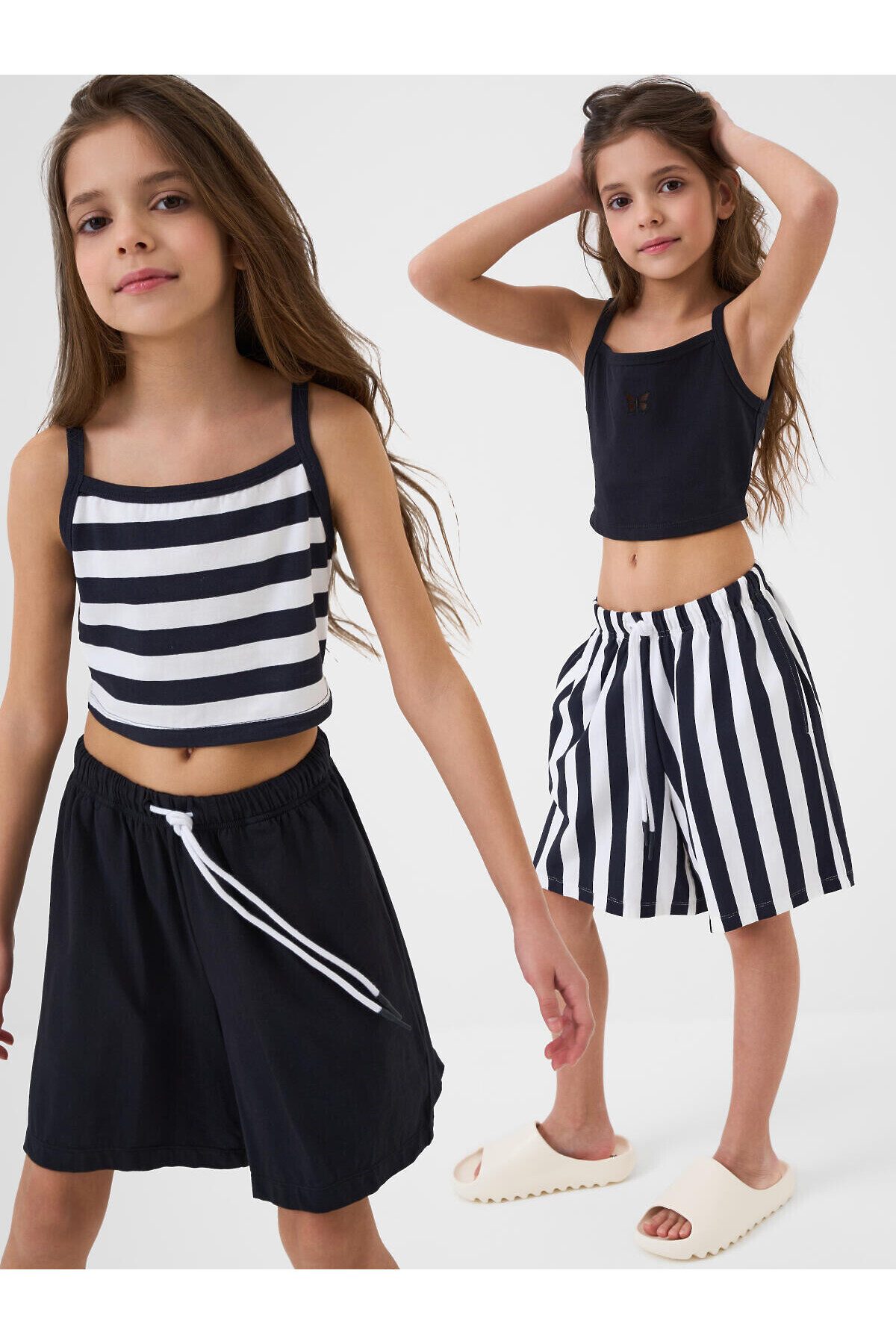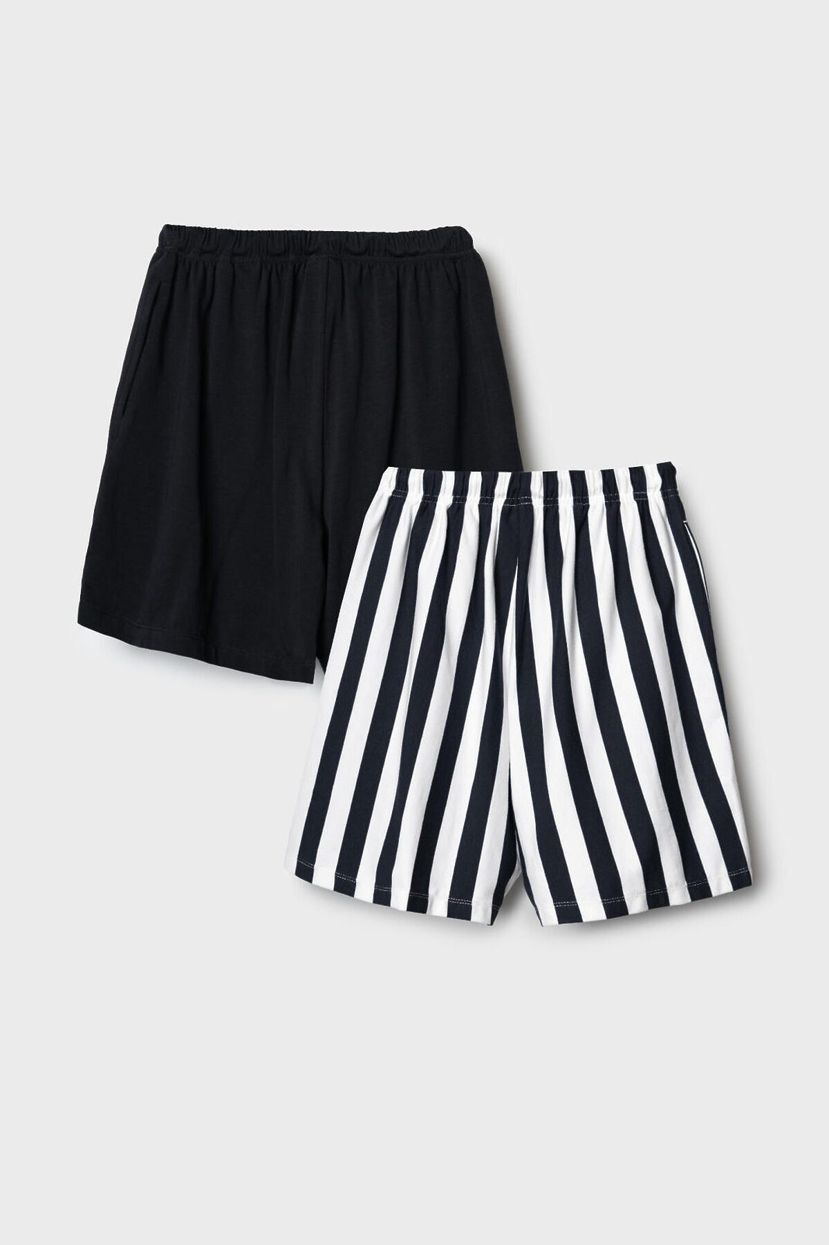 Набор шорт для девочки подростка. В комплект входят две пары шорт свободного кроя. Модели из мягкого, хлопкового трикотажа джерси. Удобная посадка обеспечивается эластичным поясом со шнуром. По бокам расположены два кармана.