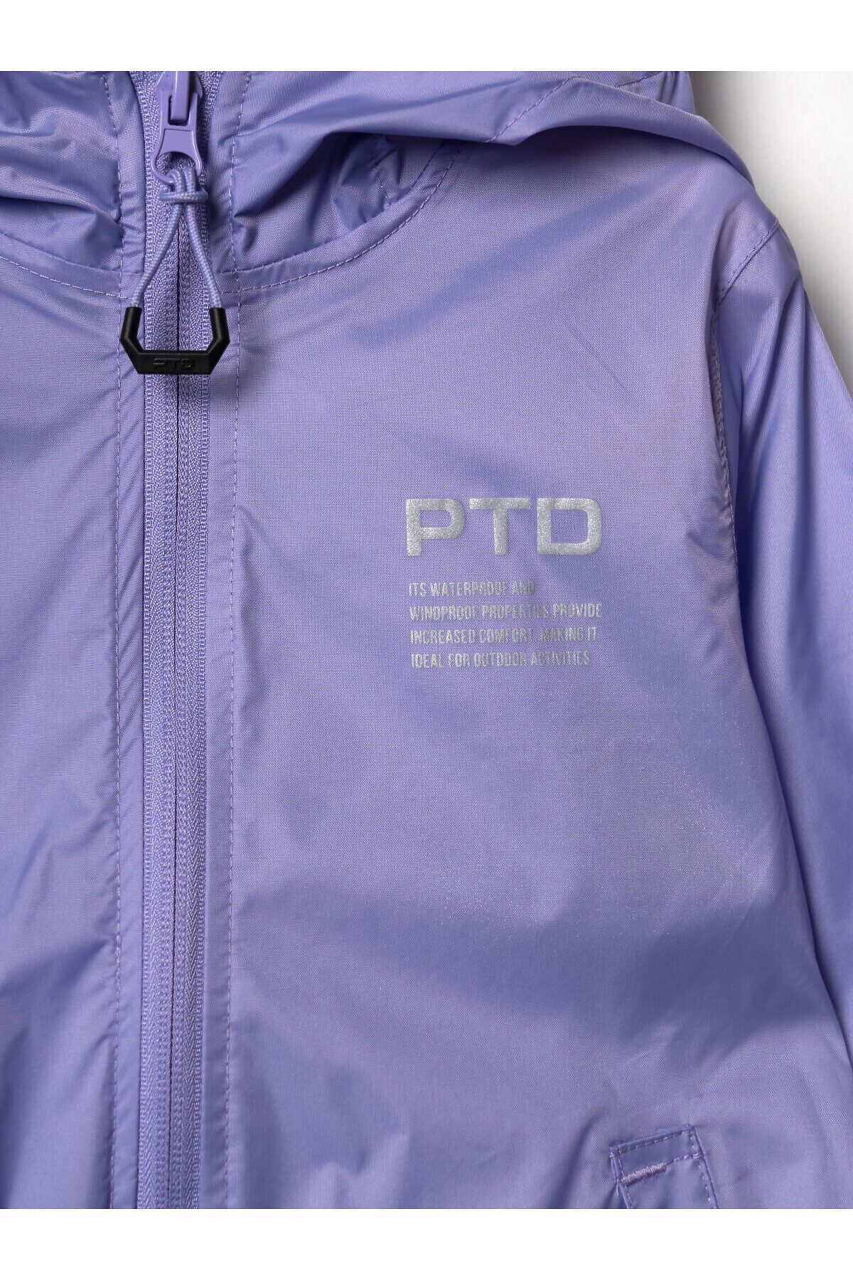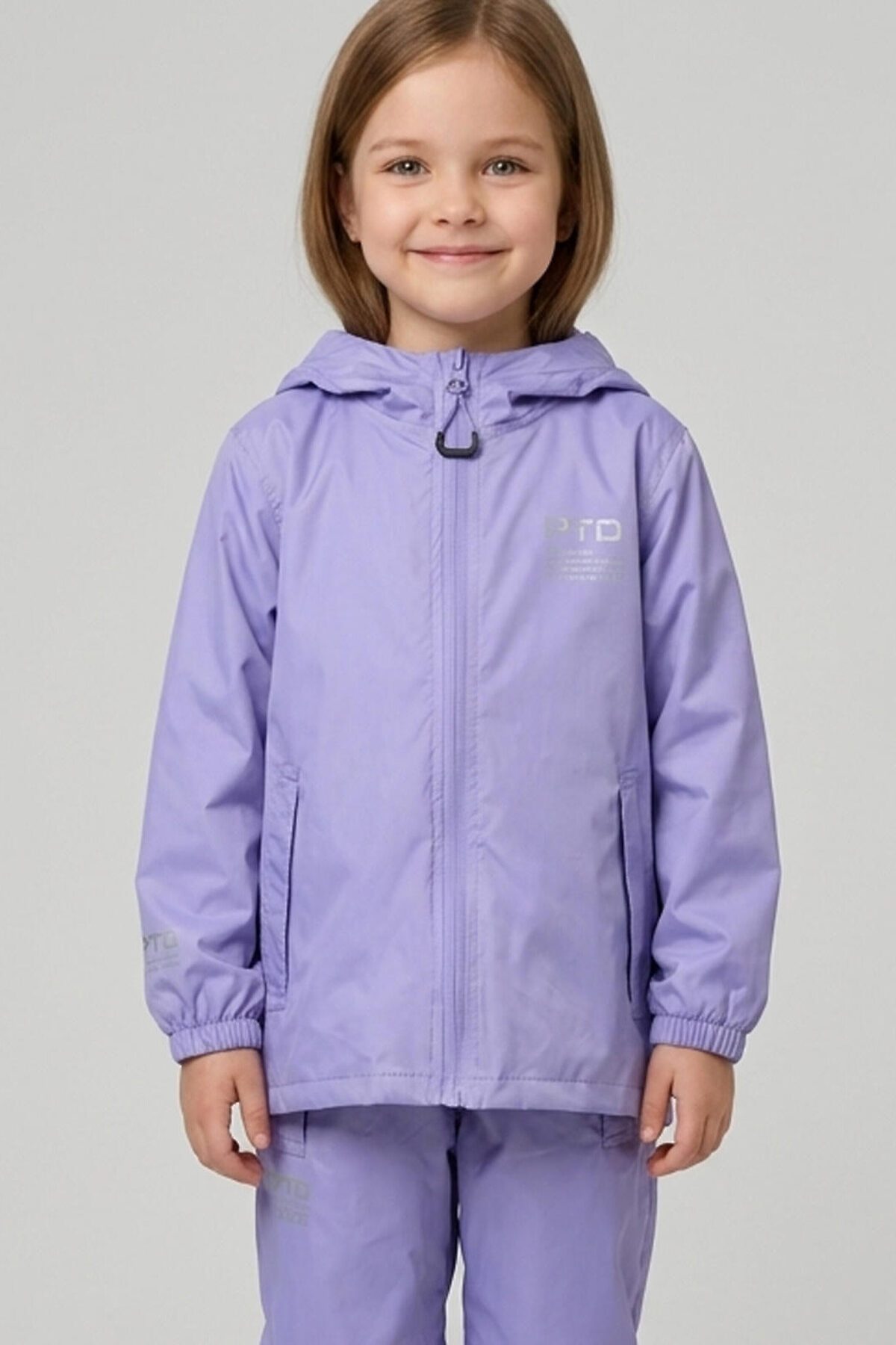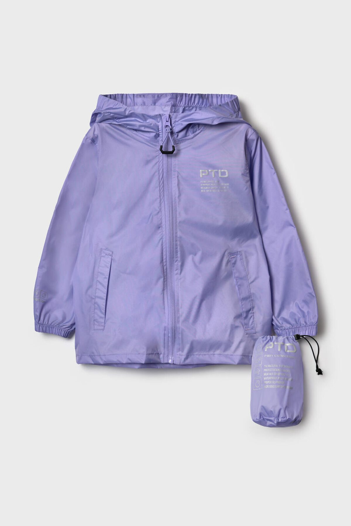 Яркая непромокаемая и ветронепродуваемая легкая куртка-дождевик для девлчки из PTD RAIN COLLECTION. Куртка одевается на верхнюю одежду, поэтому в куртке есть специальные отверстия, чтобы была возможность залезть в карман верхней одежды. Куртка на молнии. Капюшон на утяжке. Манжеты на резинке и кнопке, которую можно расстегнуть , чтобы рукава были более широкие. Специальная грязеотталкивающая пропитка сохранит изделие чистым даже после активных игр на улице. Внутри все швы дополнительно проклеены изолирующей тесьмой. Светоотражающие детали обеспечивают безопасность ребенка в темное время суток. Добавлена петелька под капюшоном с внешней стороны, чтобы остальные вещи на вешалке не намокали. В комплекте идет непромокаемый мешочек. Куртка в свернутом виде и упакованная в мешочек занимает очень мало места. поэтому ее легко можно брать с собой в рюкзак или сумку на случай дождя. Куртку можно сочитать с непроницаемыми брюками из такого же материала