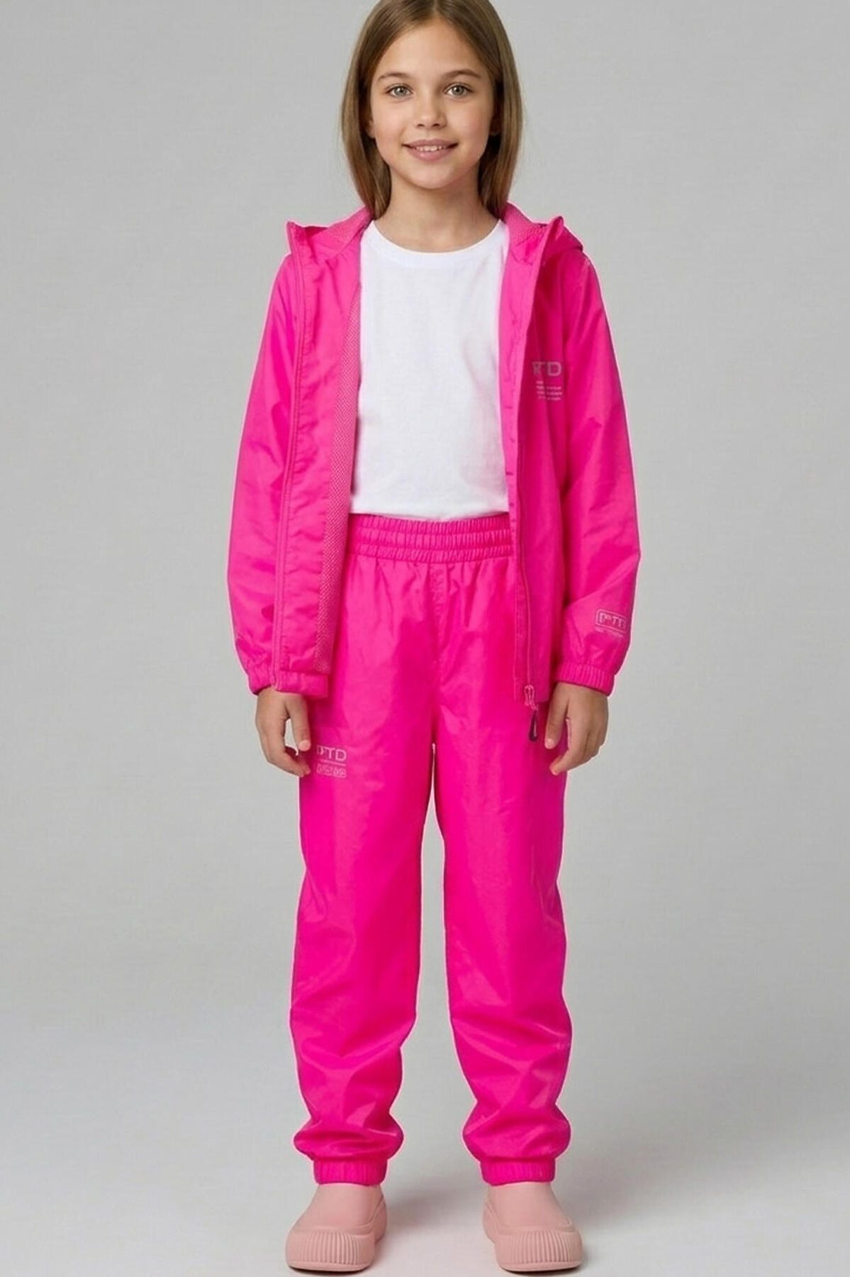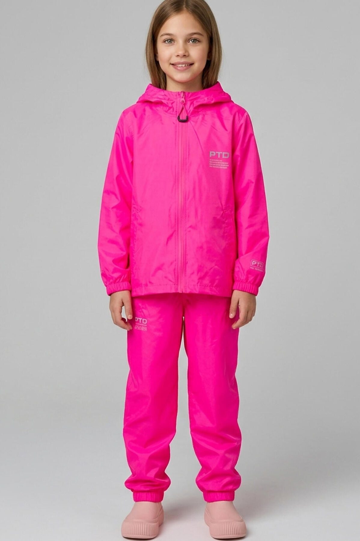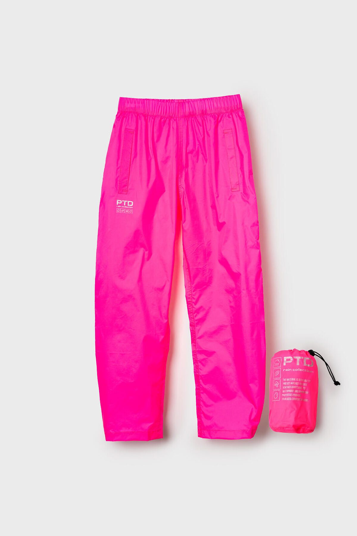 Яркие непромокаемые и ветронепродуваемые легкие брюки для девочки-подростка из PTD RAIN COLLECTION. Брюки одевается на верхнюю одежду, поэтому в брюках есть специальные отверстия, чтобы была возможность залезть в карман верхней одежды. Брюки на широкой резинке. Манжеты на резинке и кнопке, которую можно расстегнуть , чтобы брюки можно было одеть сверху на резиновые сапоги. Специальная грязеотталкивающая пропитка сохранит изделие чистым даже после активных игр на улице. Внутри все швы дополнительно проклеены изолирующей тесьмой. Светоотражающие детали обеспечивают безопасность ребенка в темное время суток. В комплекте идет непромокаемый мешочек. Брюки в свернутом виде и упакованные в мешочек занимает очень мало места. поэтому их легко можно брать с собой в рюкзак или сумку на случай дождя. Брюки можно сочитать с непроницаемыми курткой из такого же материала