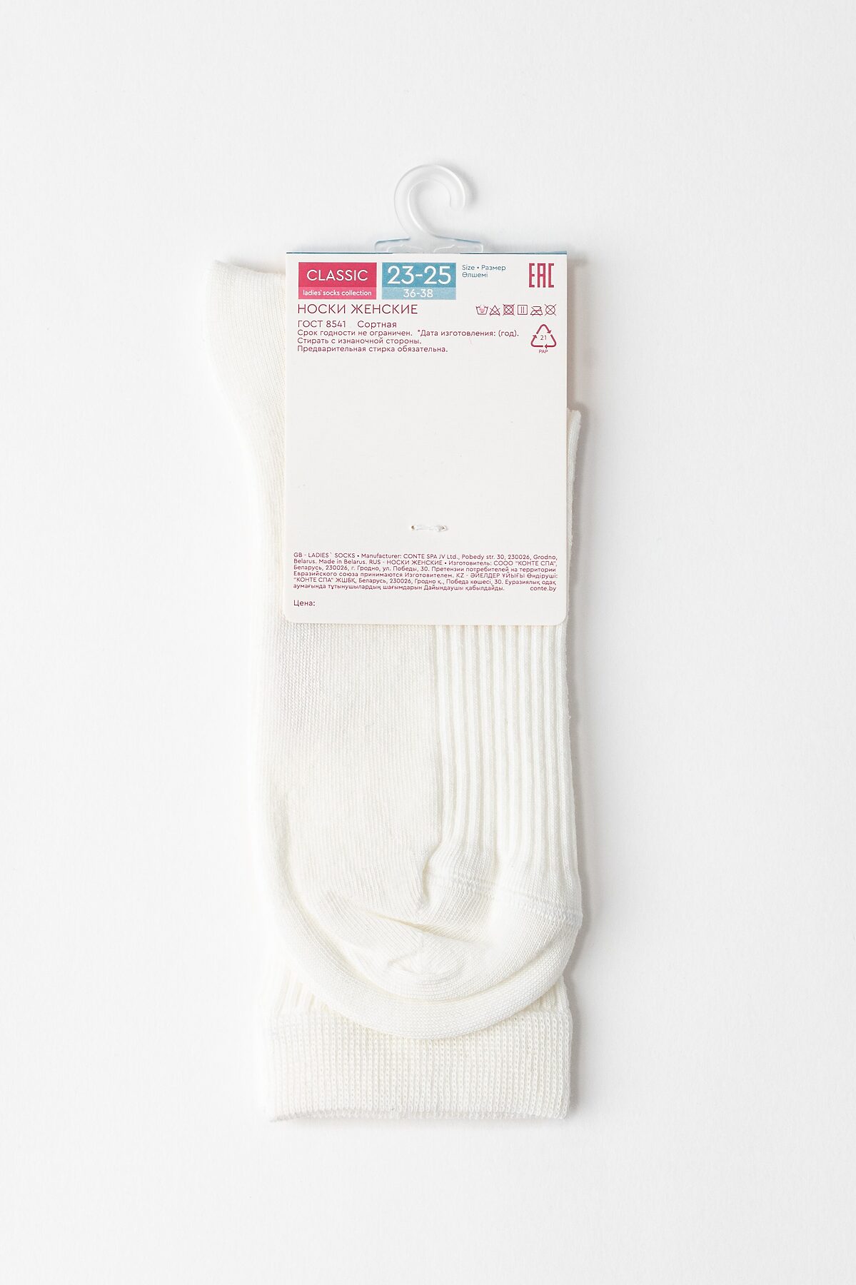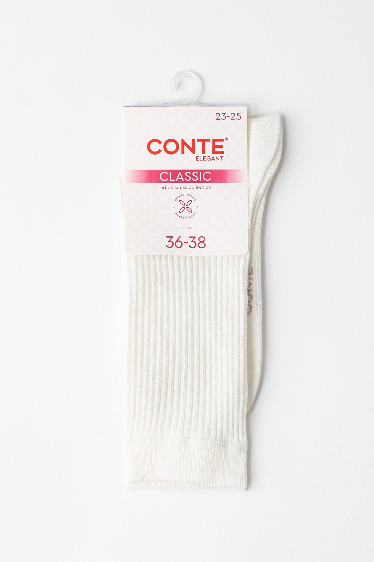 CONTE CLASSIC Хлопковые носки в рубчик CONTE ELEGANT, молочный