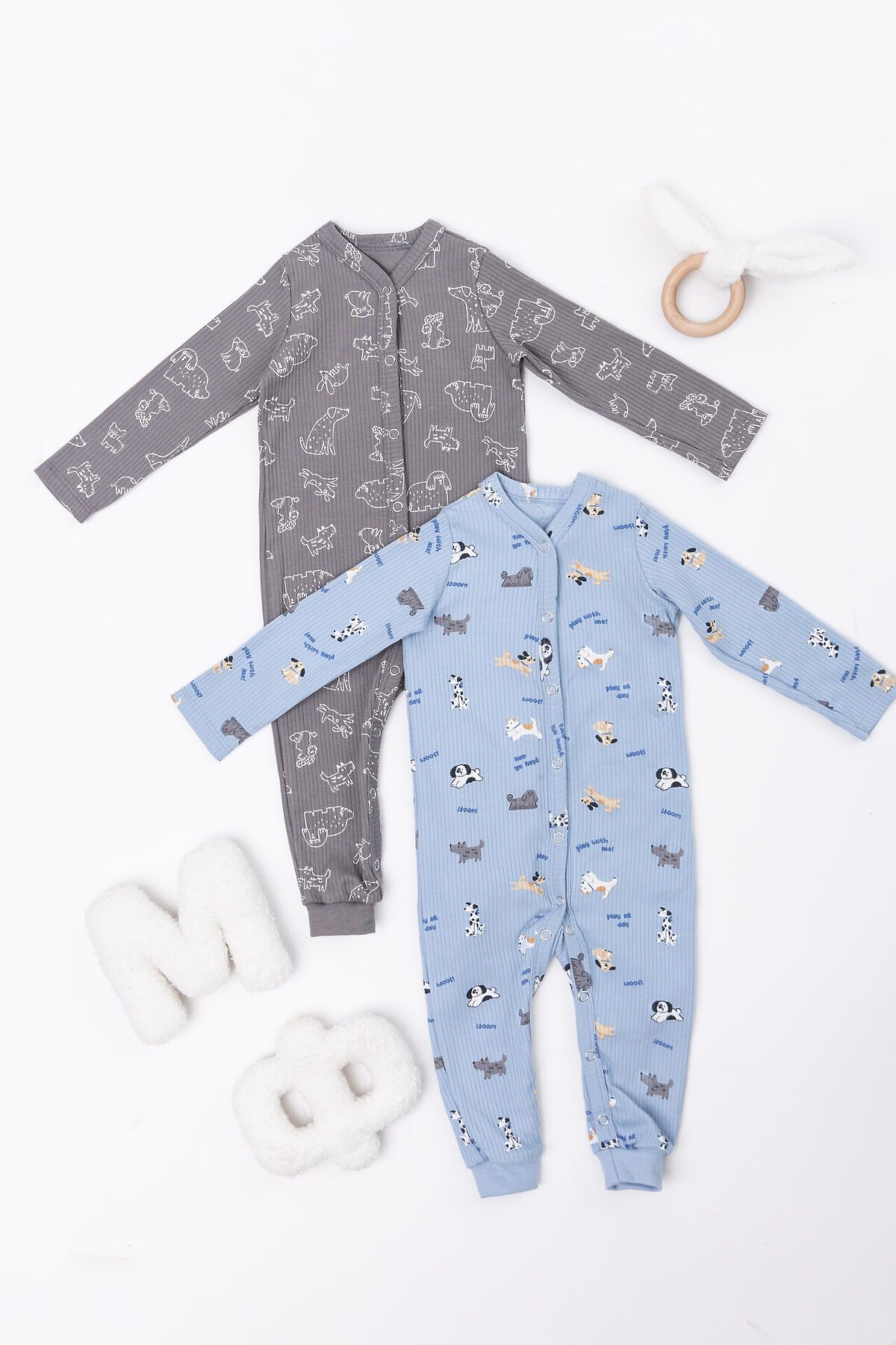 Комбинезон нательный детский (2шт.) MARK FORMELLE, собачки на голубом +собачки на сером