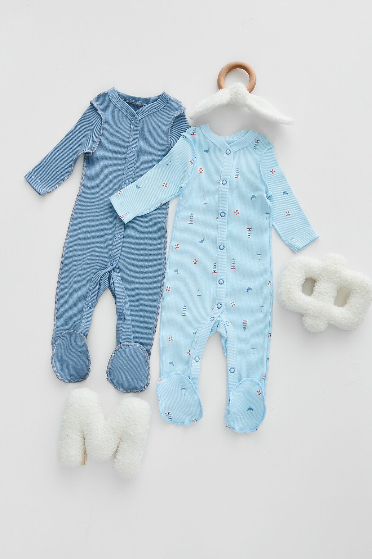 Комбинезон нательный детский (2шт.) MARK FORMELLE, маяк на голубом небе +серо -синий