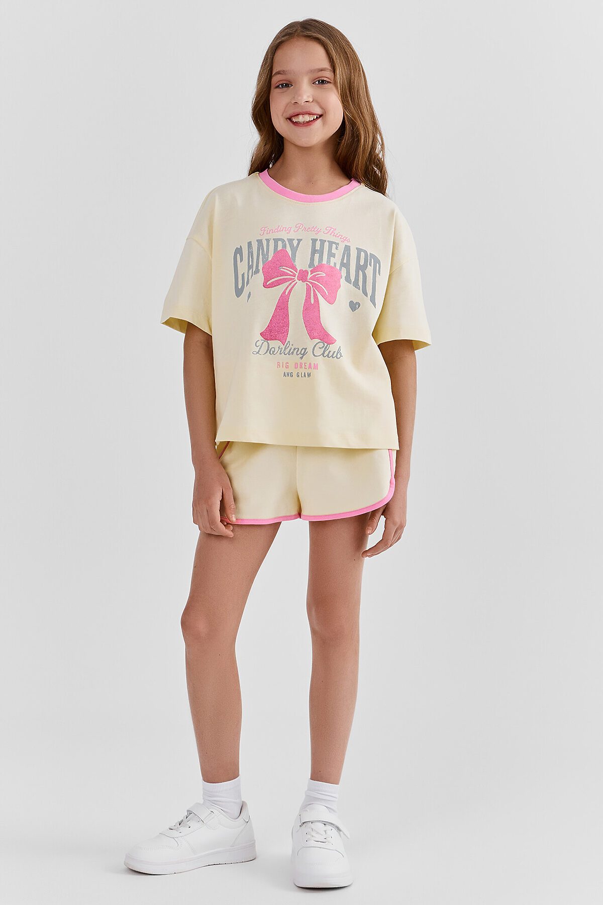 Комплект для девочек (футболка, шорты) MARK FORMELLE, лимонный лед +печать