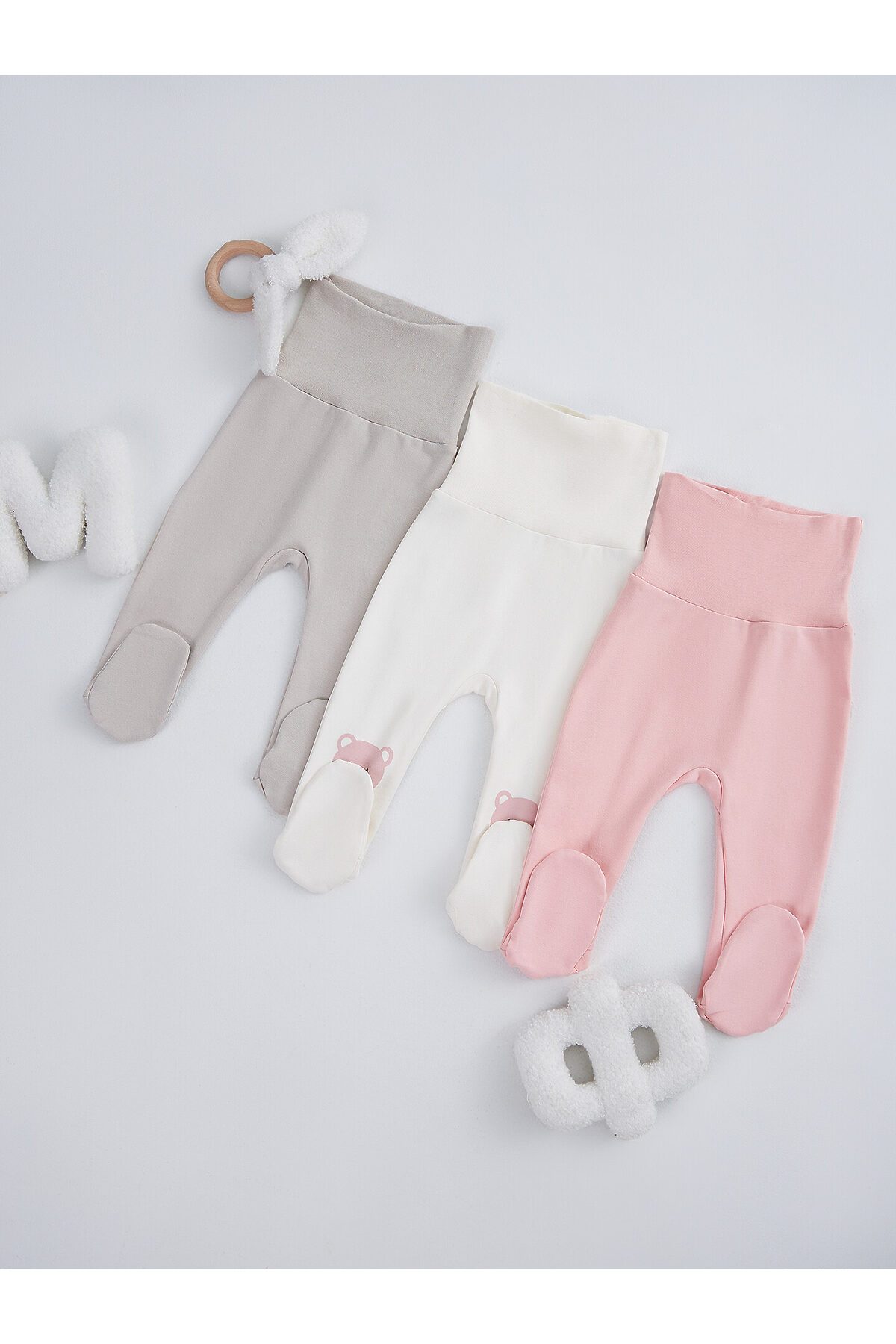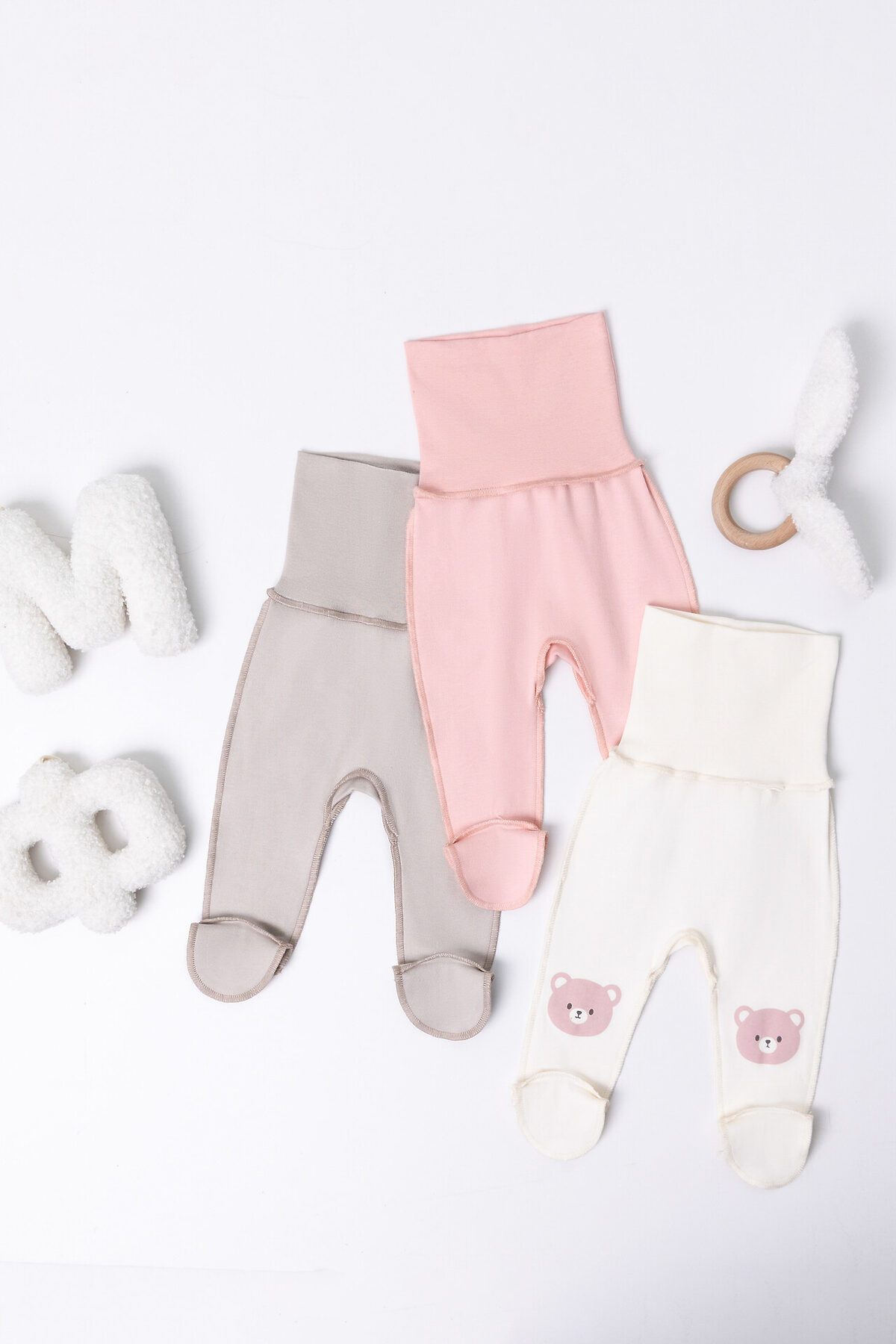 Ползунки детские (3шт.) MARK FORMELLE, молочный +серо-коричневый +серебр.розовый +печать