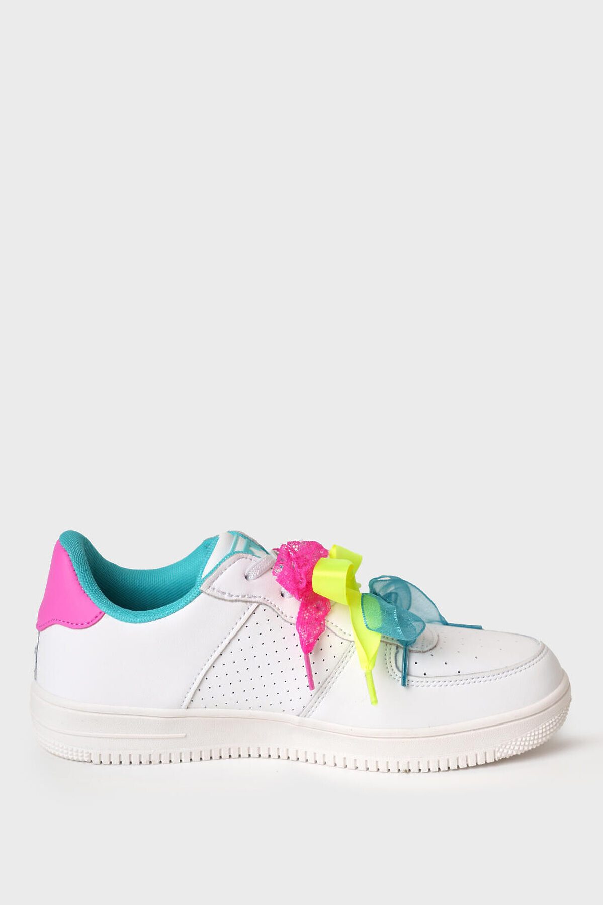 Трендовые белые кеды из натуральной кожи для девочки подростка. Кроссовки декорированы несколькими цветными бантиками. В носочной части имеется перфорация для лучшей циркуляции воздуха. Эластичные шнурки создают удобство при обувании. В носочной части обуви стоит текстильная подкладка c высоким содержанием хлопка 80%, которая обладает высокой гигроскопичностью. В пяточной части обуви текстильная подкладка обладает хорошей износостойкостью. Профилированная съемная стелька из натуральной кожи с анатомической формой подсводника обеспечивает правильную нагрузку на стопу. Формоустойчивый задник поддерживает стопу в правильном положении. Эргономичная форма колодки обеспечивает правильное формирование стопы ребенка. Подошва из ТПР не скользит и устойчива к истиранию.