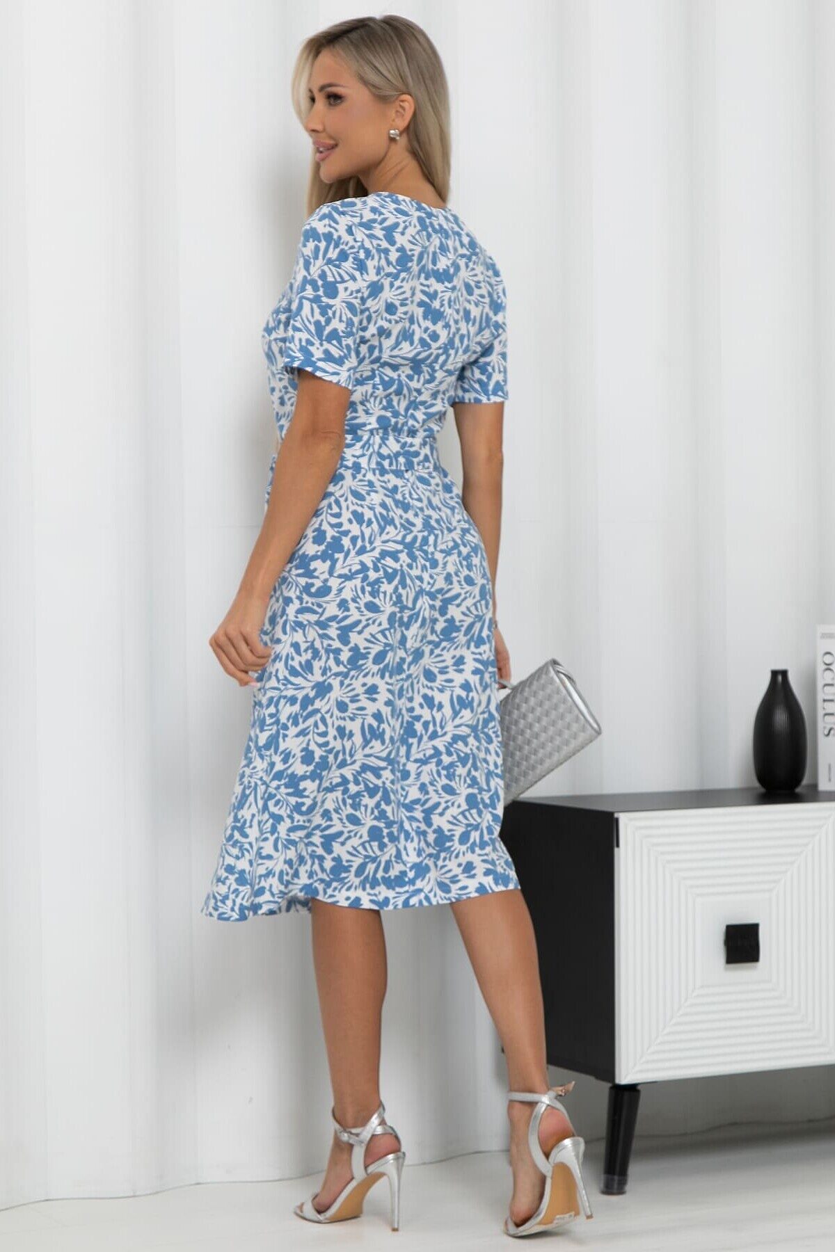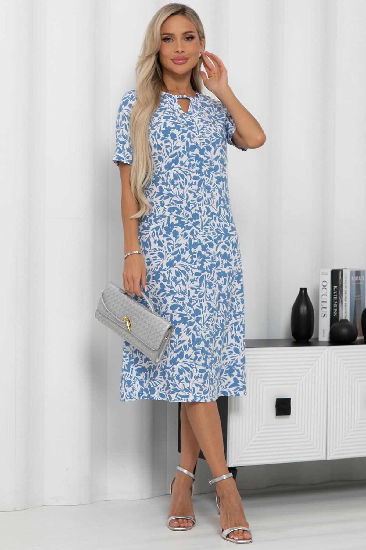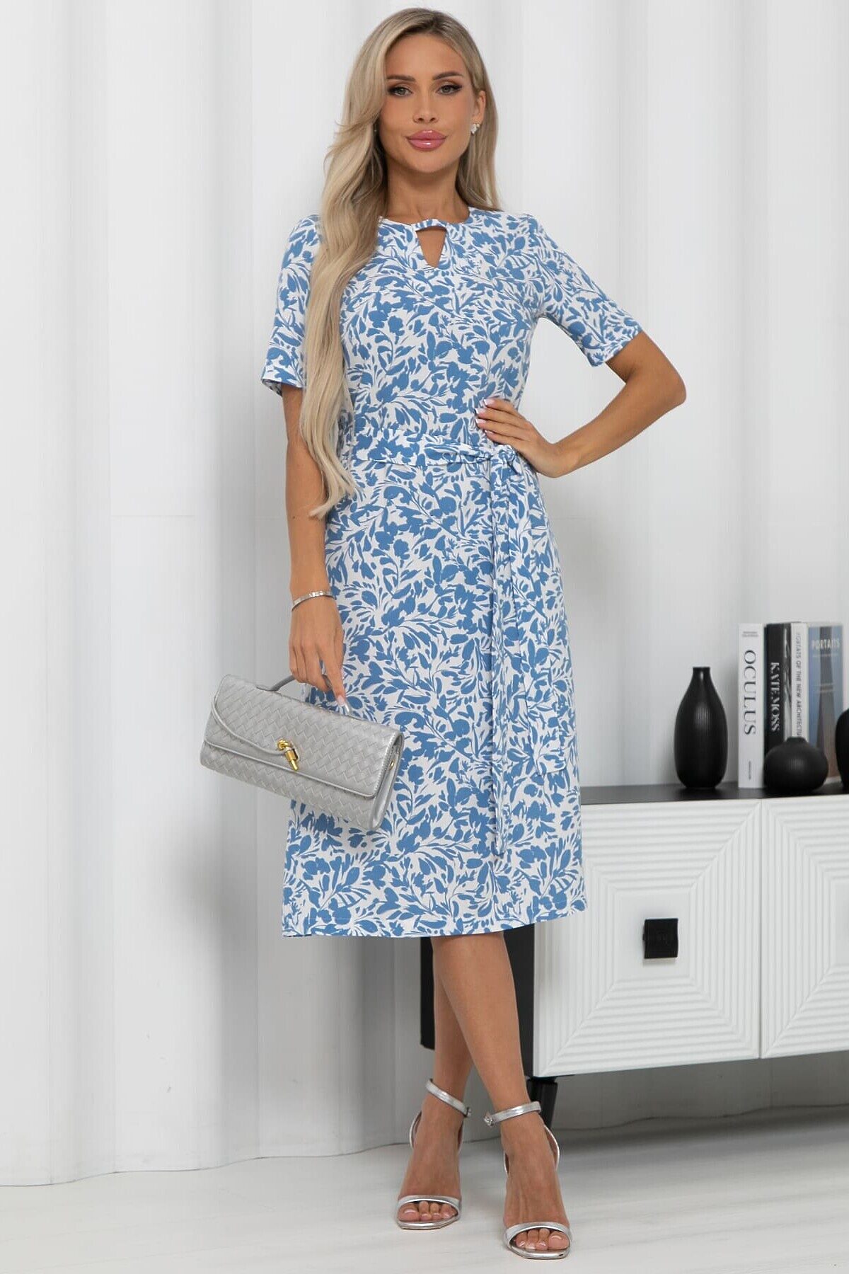Очаровательное платье из натурального штапеля в бело-голубых тонах. Идеально для жарких дней, дарит комфорт и легкость. В комплект входит пояс из основной ткани, который позволяет подчеркнуть талию. Красивый принт и свободный крой подчеркнут вашу женственность.