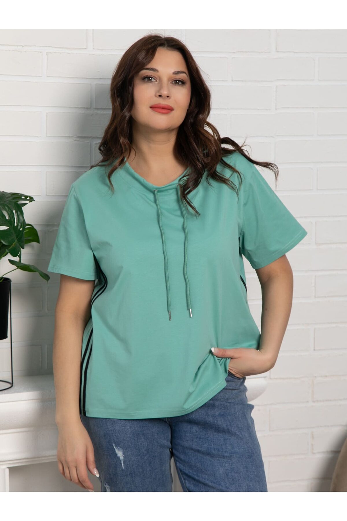 Внесите в свой образ яркие акценты с помощью этой потрясающей блузки! Контрастные полоски по бокам придают модели особый шарм, визуально вытягивая силуэт и добавляя динамики. Эти декоративные элементы делают блузку не просто однотонной, а интересной и стильной. Удобная кулиска на горловине. Блузка прекрасно сочетается с шортами, джинсами и юбками.