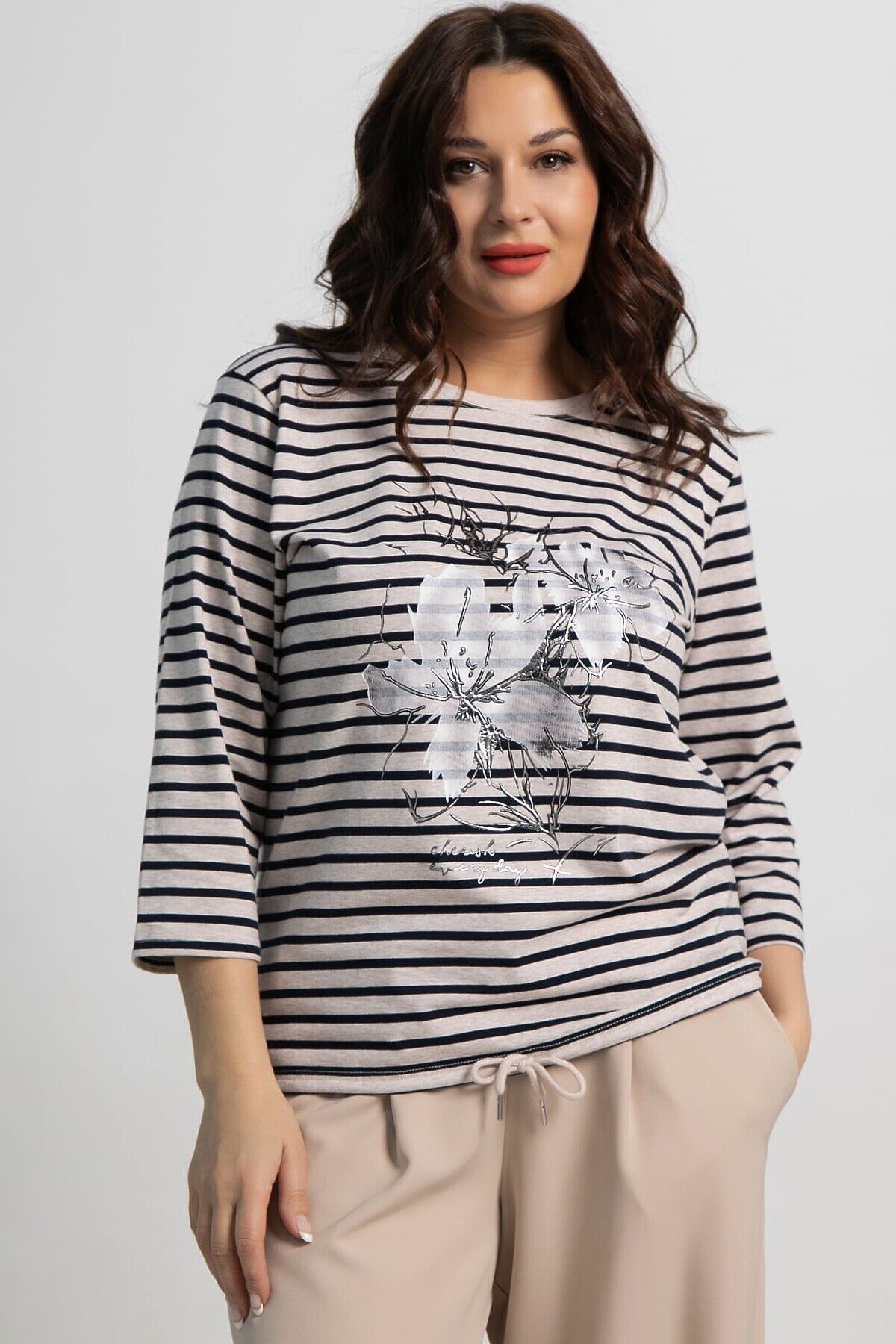 Блуза Линдсей LADY TAIGA, бежевая/полоска