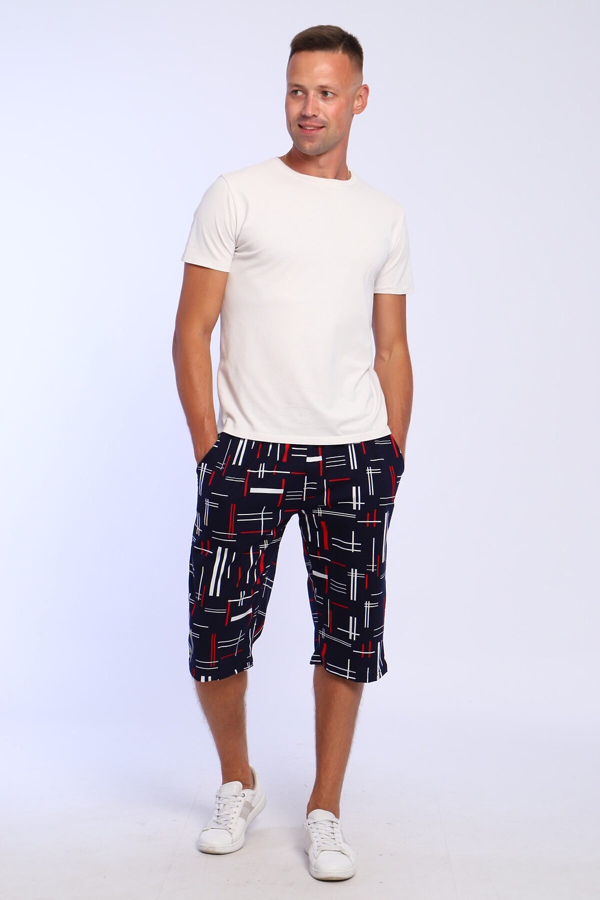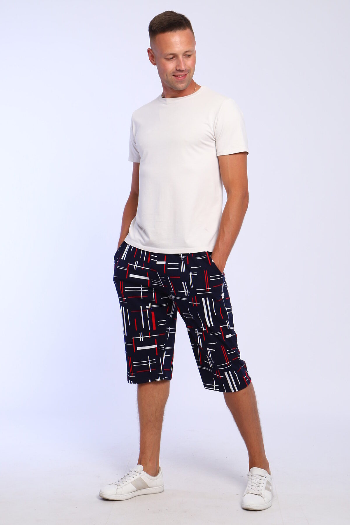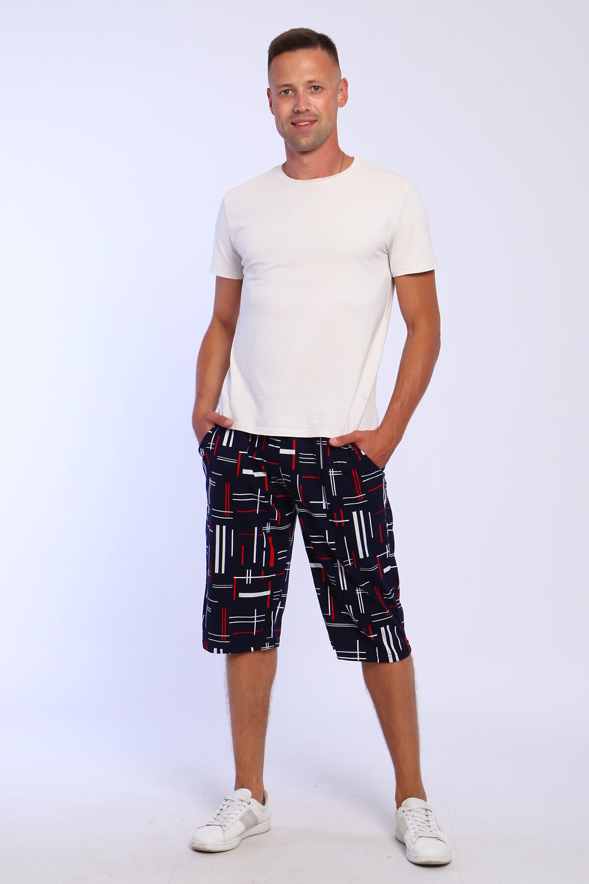 Шорты мужские трикотажные удлиненные, боковые карманы, пояс прострочен.