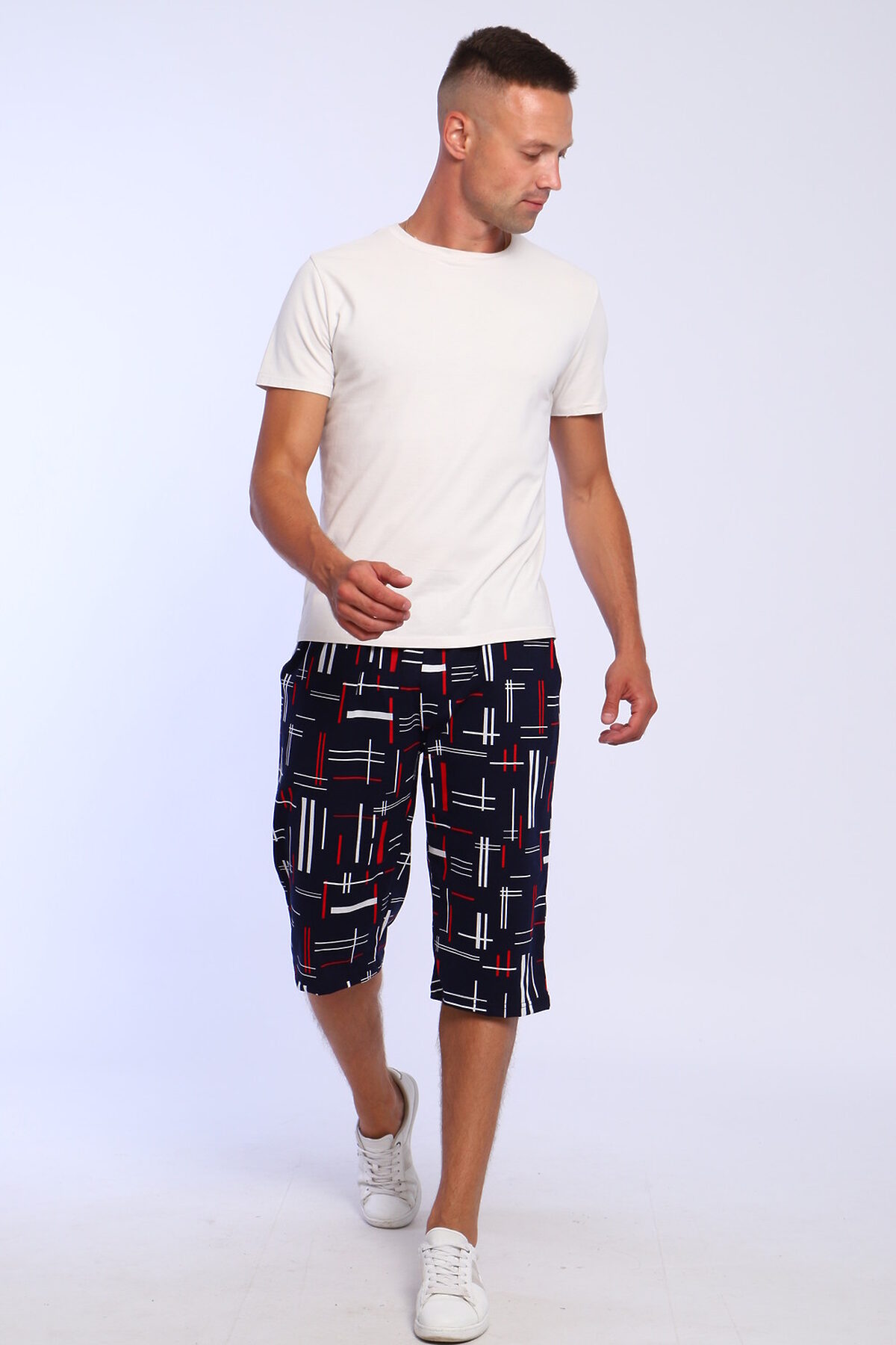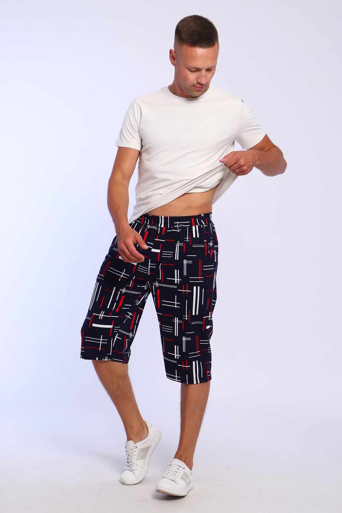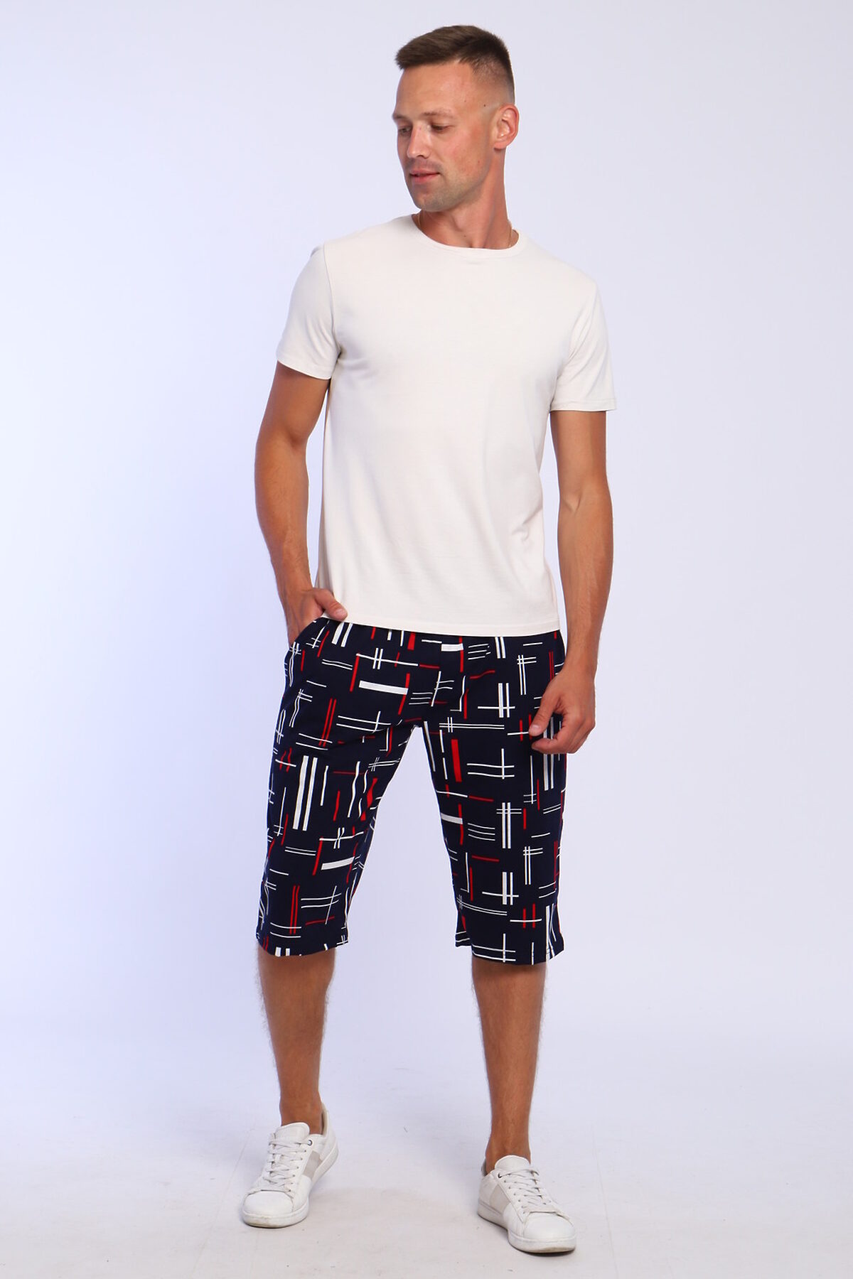 Шорты мужские трикотажные удлиненные, боковые карманы, пояс прострочен.