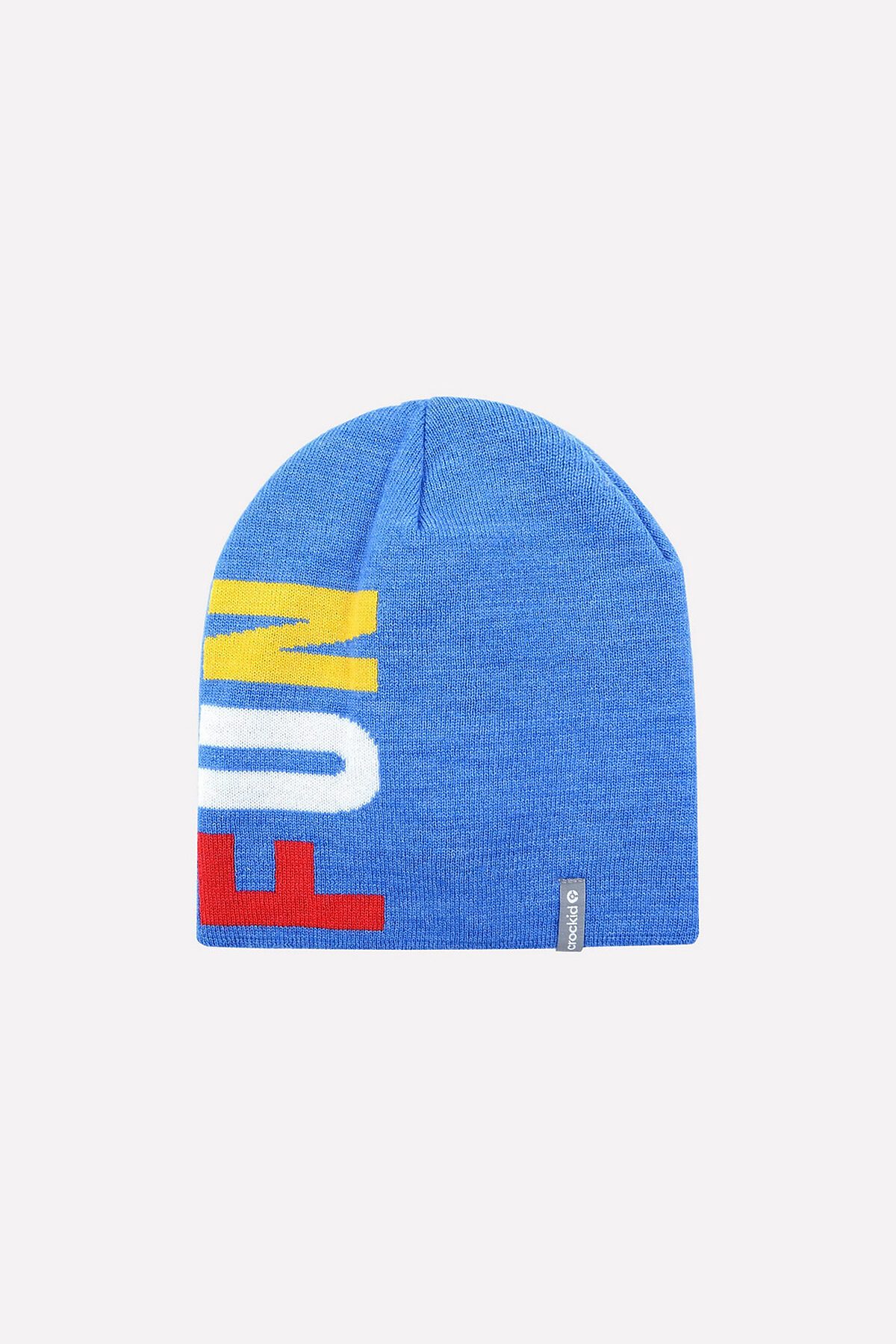 Шапка из двойного полотна, вязаного из полушерстяной пряжи, с рисунком. По низу пришит жаккард.