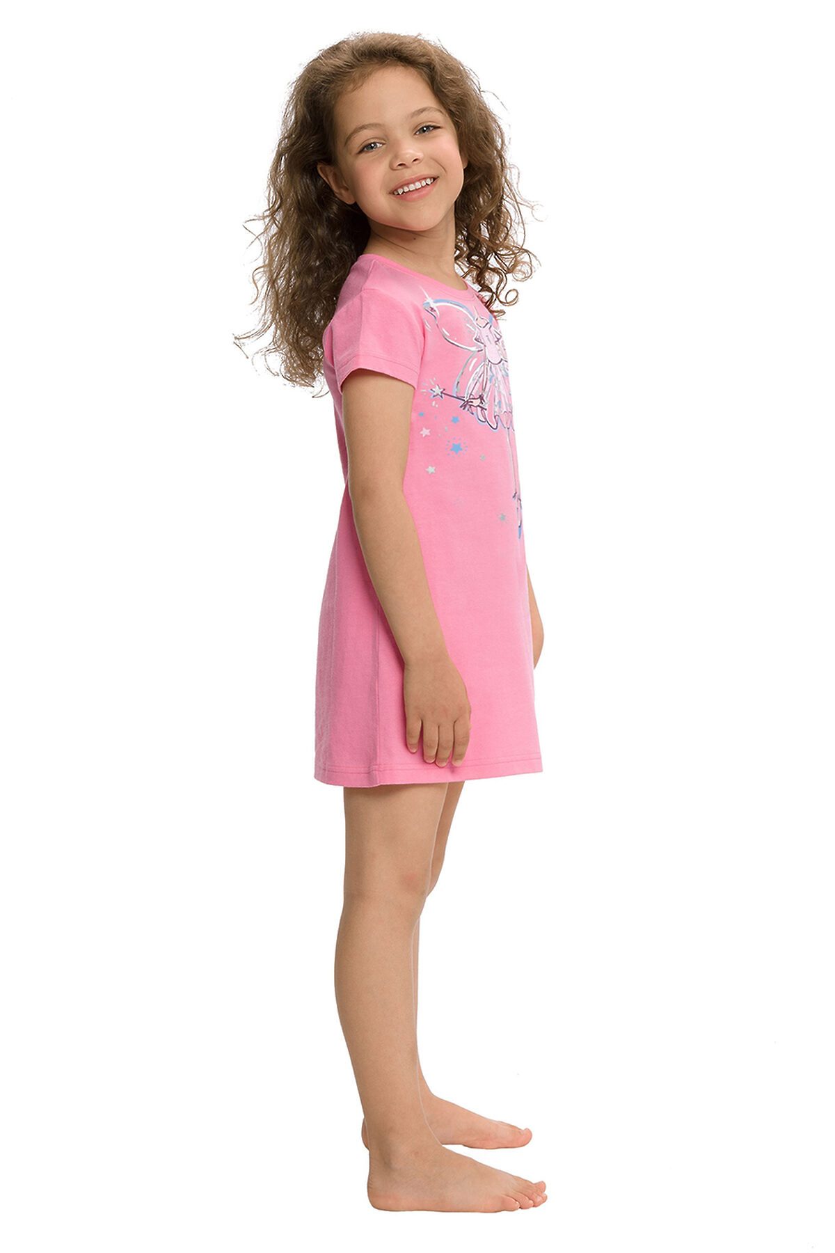 Ночная сорочка для девочек. Свободное платье-футболка для сна. Центральный принт с серебром.