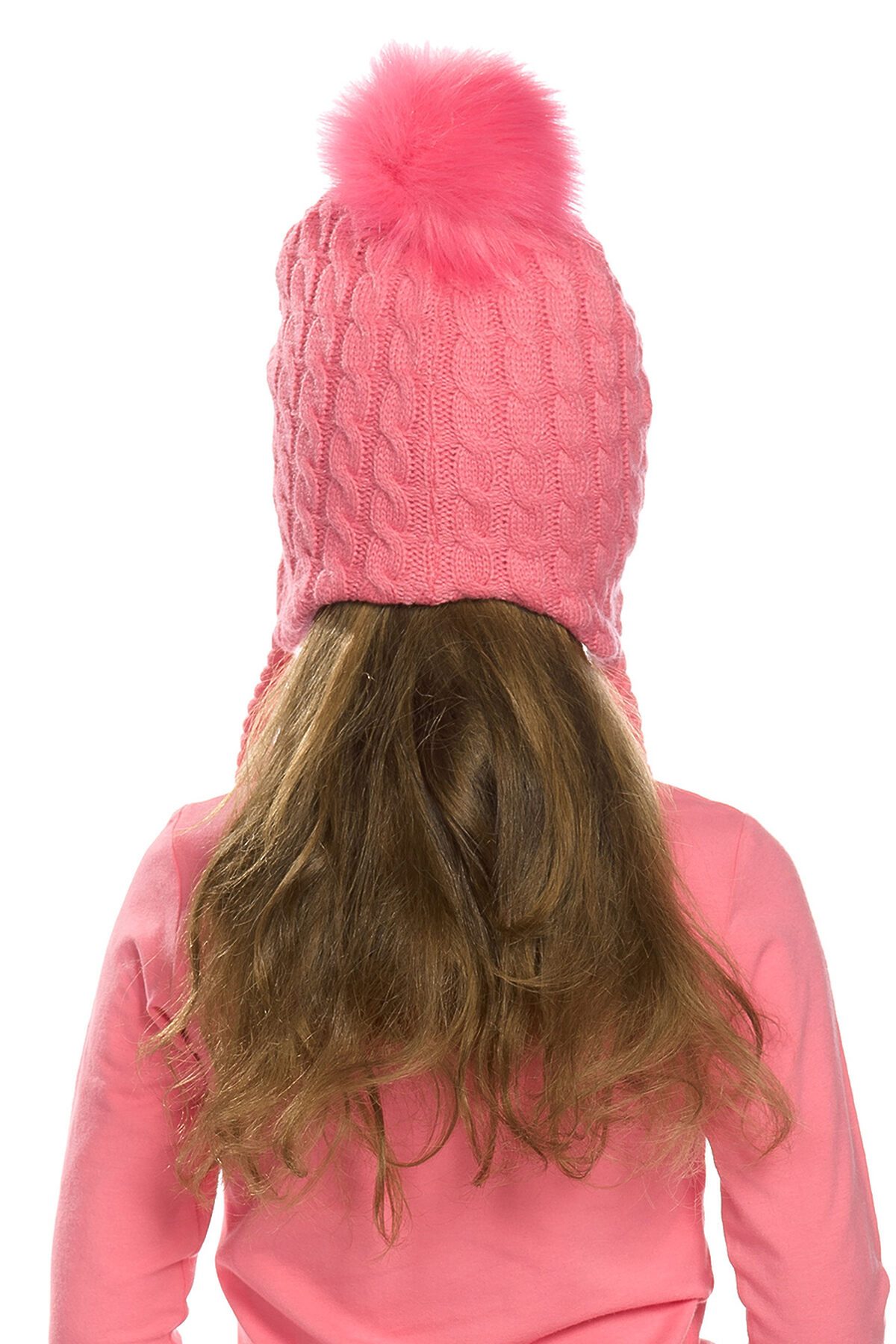 Шапка для девочек. Вязаная шапка на подкладе из флиса; помпон из искусственного меха; нашивка в виде бабочки.