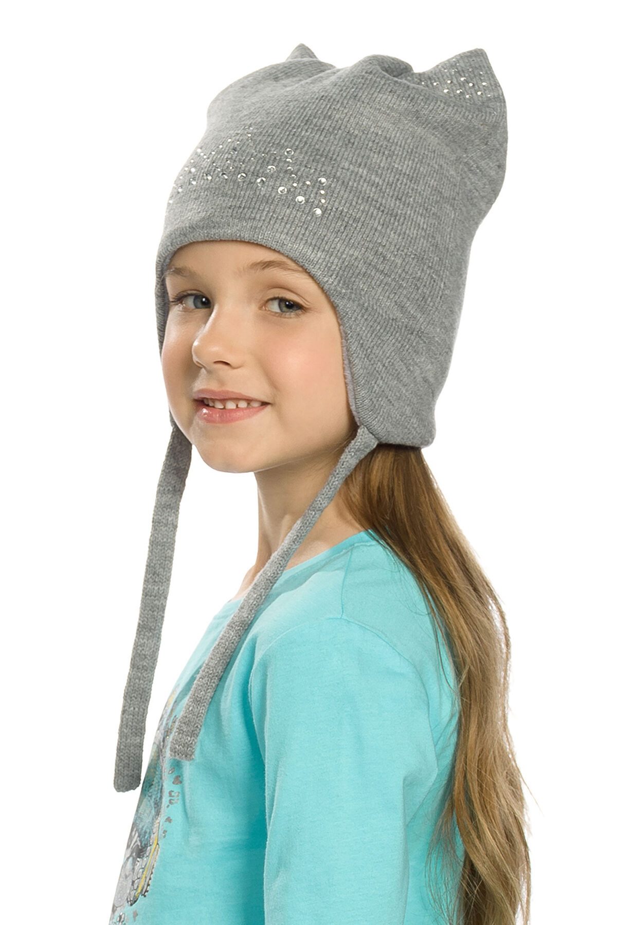 Шапка для девочек. Вязаная шапка на подкладе из флиса. Обработка верхнего края шапки, в виде двух заложенных складок, позволяет создать образ кошечки, декорированы россыпью блестящих страз. Ушки с завязками, по переду шапки аппликация из страз, выложенная в виде короны.