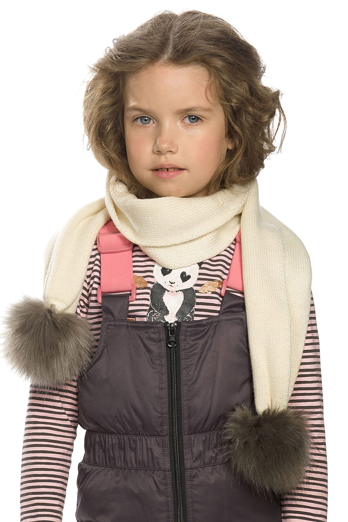 Шарф для девочек. Вязаный шарф, на концах изделия помпоны из искусственного меха.