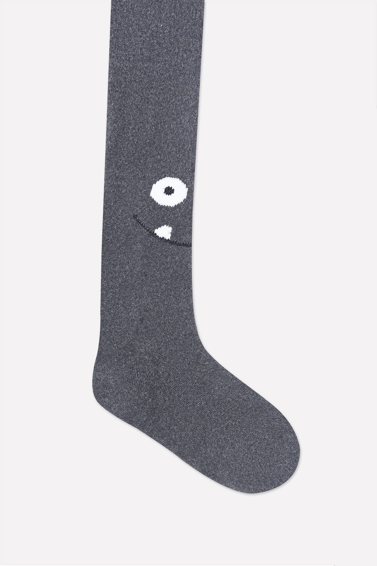 Колготки для мальчика из меланжевого смесового хлопка. С задней вставкой и формованной стопой. Махровые с внутренней стороны. В поясе эластичная резинка. В области колена рисунок.