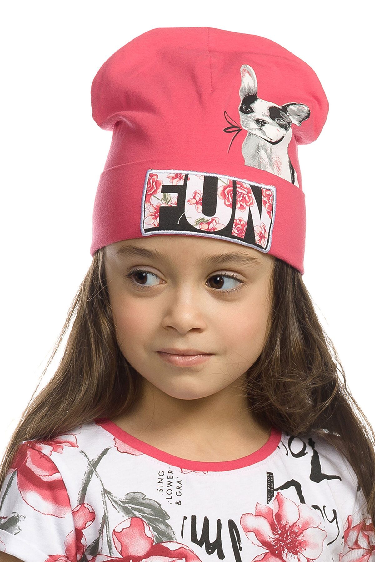 Шапка для девочек. Двойная шапка с отворотом, из эластичного хлопка. Форма шапки "лопатка", аккуратного объёма. Эластичный принт и нашивка. Перевод "Шутка".