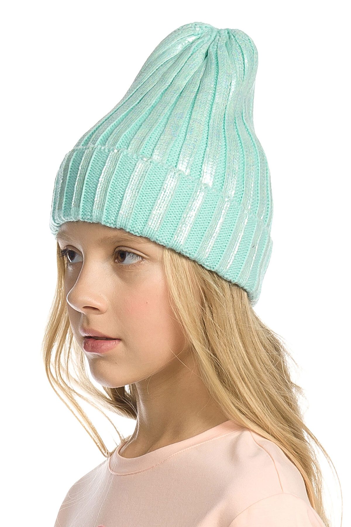 Шапка для девочек. Однослойная вязаная шапка с отворотом, вывязана рибом 3х3 из мягкой пряжи с перламутровым напылением. Высота шапки слегка уменьшена, но сохранена коническая форма.