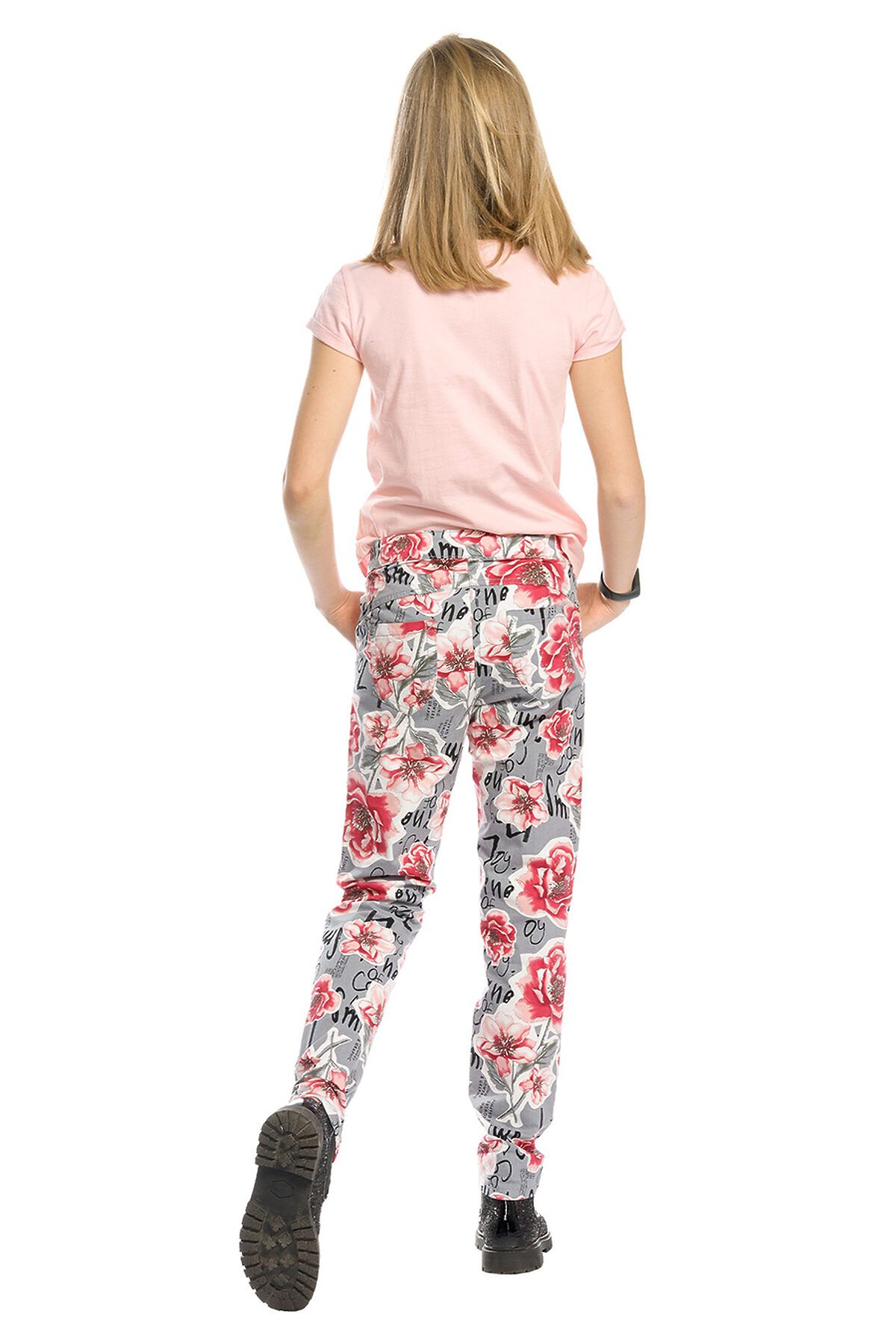 Брюки для девочек. Брюки из хлопка с защипами по талии, зауженные книзу. Альтернатива джинсам. Силуэт RELAXED "girlfriend". Полукруглые боковые карманы впереди, кокетка и накладные карманы на спинке, , металлические клепки. Пояс из основной ткани. Мягкий принт по всей поверхности изделия.