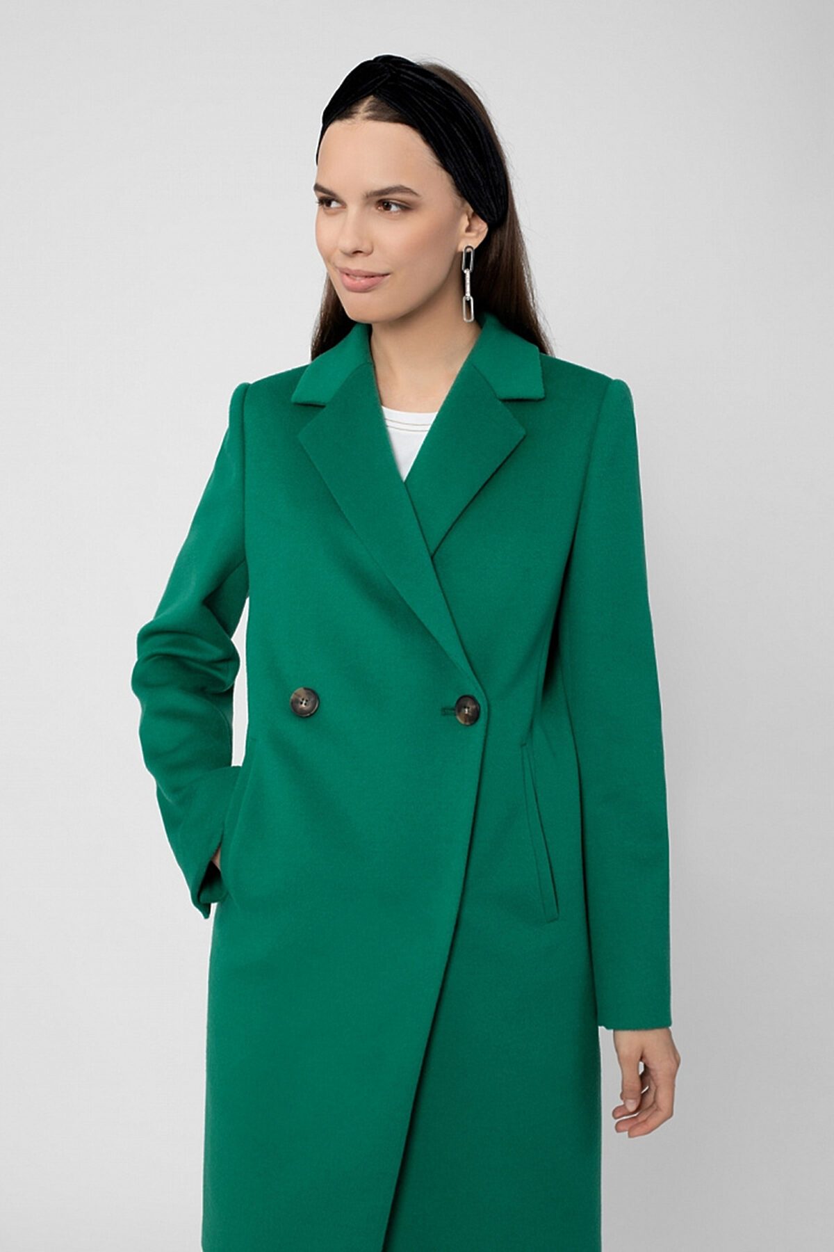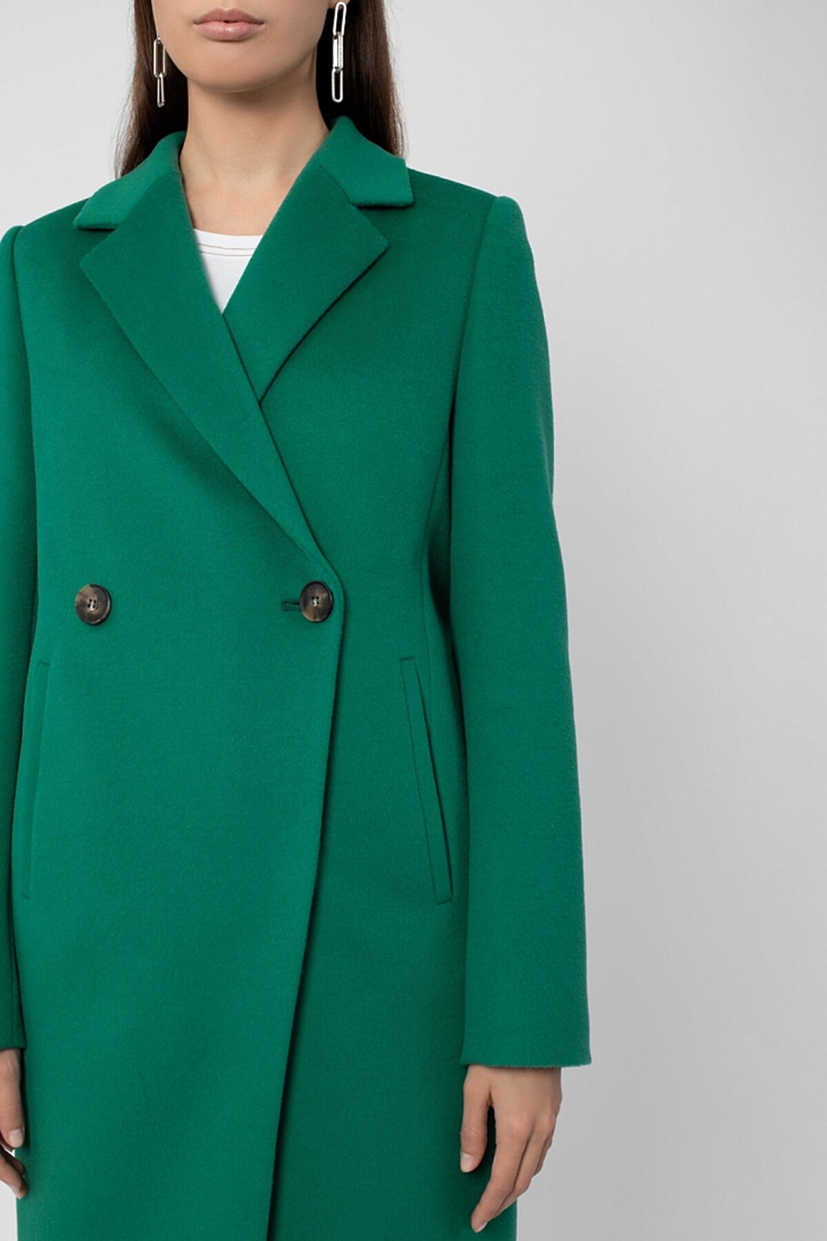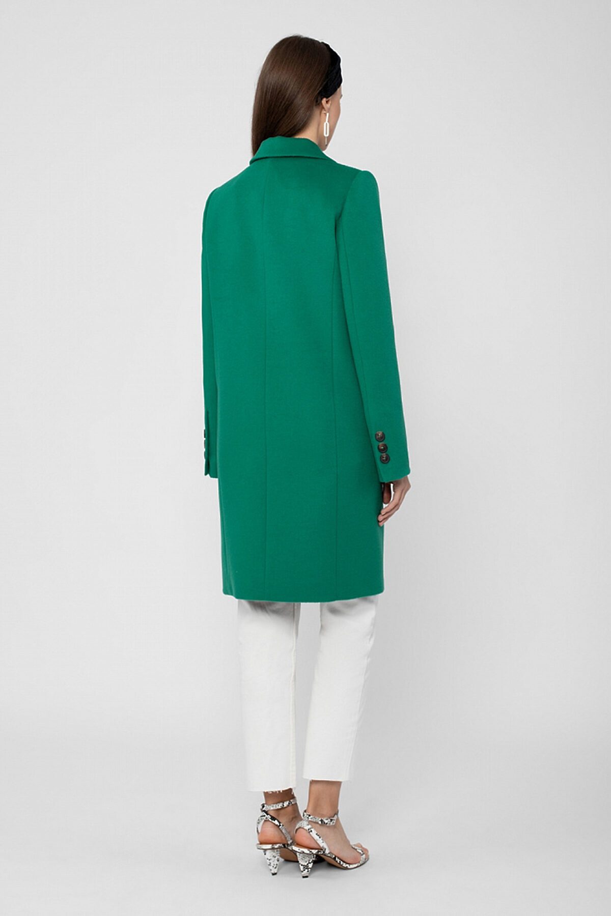 Пальто прямого силуэта с фигурной линией борта. Классический втачной рукав, английский воротник, карманы-листочки, застёжка на 2 крупные роговые пуговицы, шлицы на рукаве. Длина выше колена. Пальто изготовлено из ворсовой шерстяной ткани с добавлением кашемира яркого зеленого цвета. Все измерения даны на базовый 46 размер. Длина изделия (170 см): 93,0 Длина рукава (170 см): 62,5 Ширина рукава (охват плеча): 37,0 Ширина рукава (по низу): 28,5 Обхват груди: 106,8 Обхват бедер: 110,0 Рост модели на фото - 175 см. Цвет одежды на фотографиях может незначительно отличаться от оригинального. !!!Внимание, закрыты отгрузки в следующие города: Архангельск, Белгород, Благовещенск, Великий Новгород, Великие Луки, Вологда, Волосово, Выборг, Гатчина, Иваново, Иркутск, Колпино, Кириши, Комсомольск-на-Амуре, Котлас, Миасс, Мурманск, Нижний Тагил, Оренбург, Петрозаводск, Петергоф, Пскоф, Санкт-Петербург, Смоленск, Северск, Старый Оскол, Сургут, Тихвин, Томск, Тверь, Усинск, Уфа, Улан-Уде, Ханты-Мансийск, Электросталь, Элиста, Якутск, Калининград.
