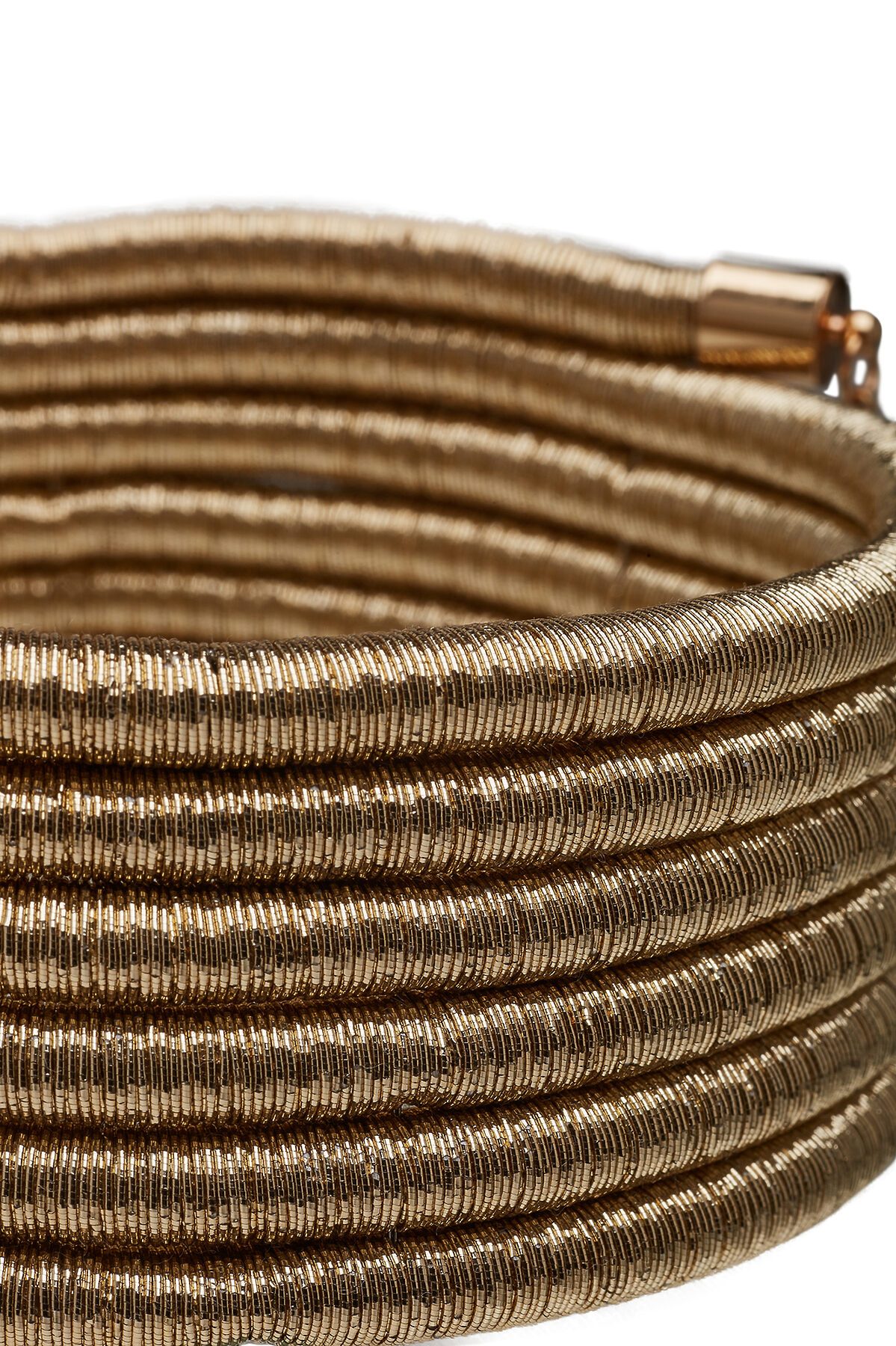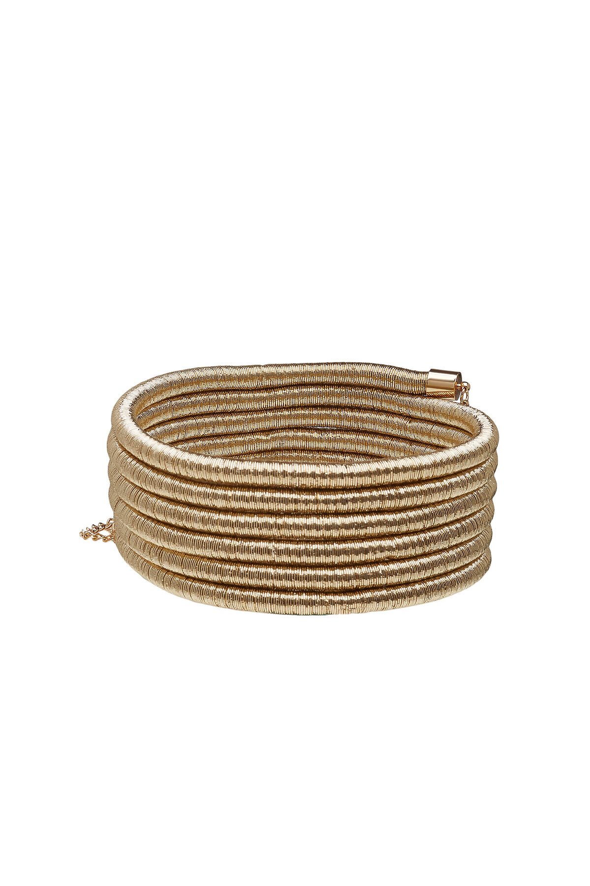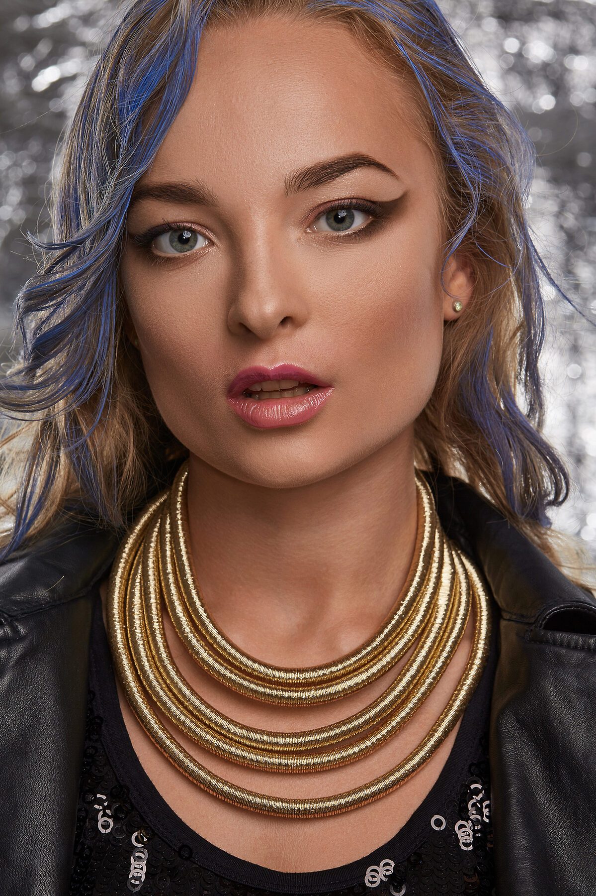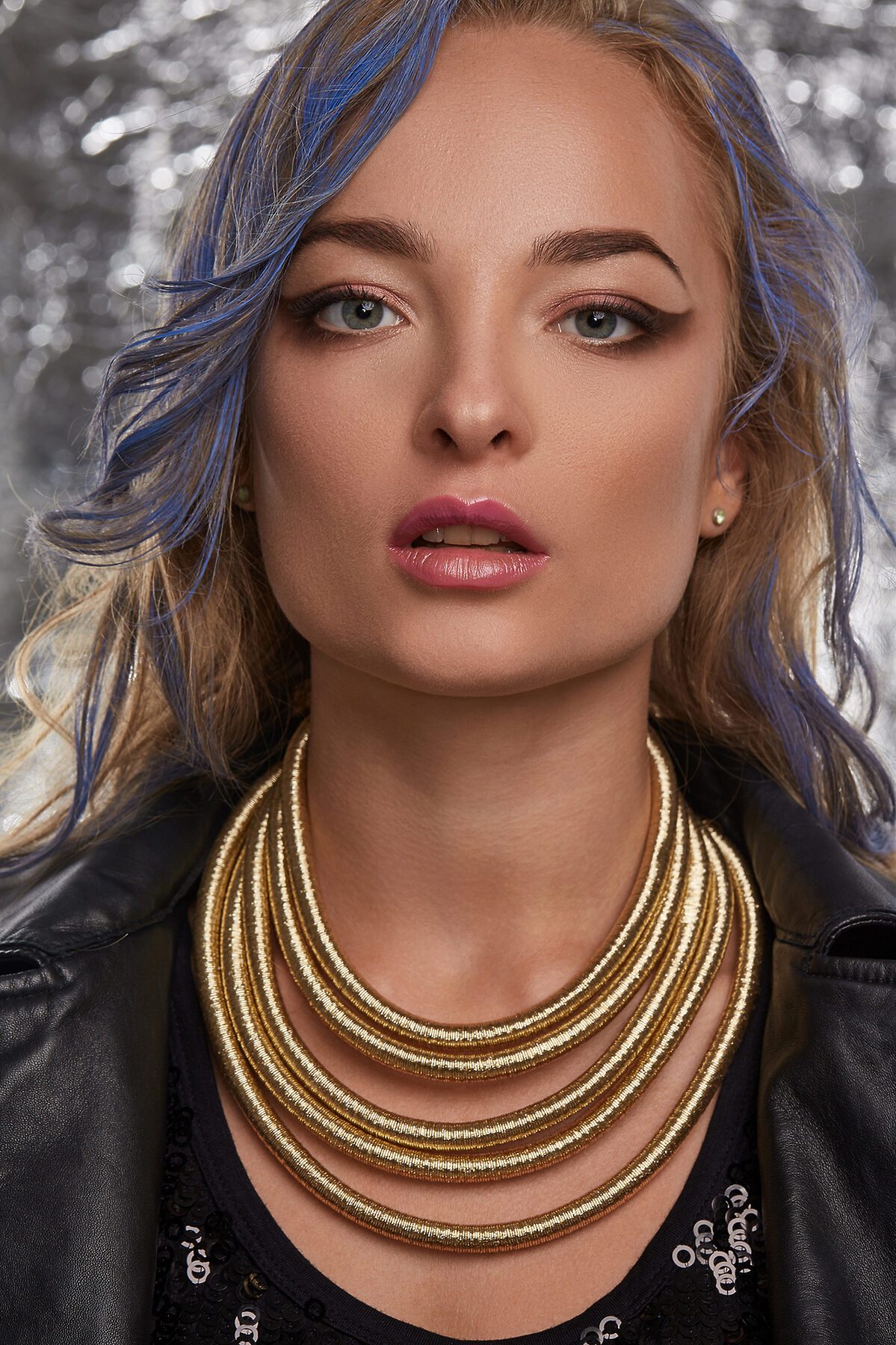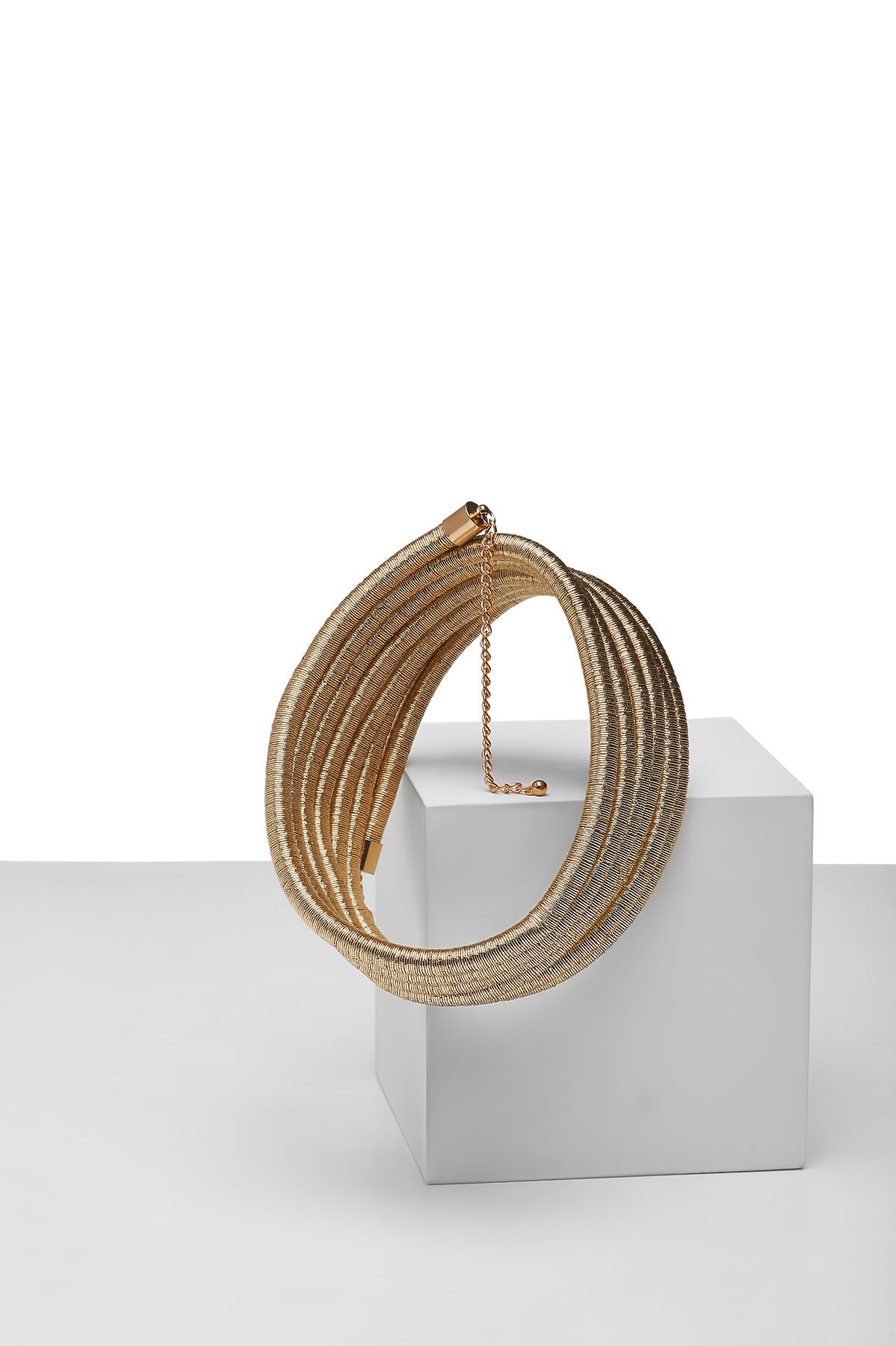 "Бижутерия - основной тренд 2017 года, особенно бижутерия массивная. А футуристический стиль, один из самых прогрессивных, правит бал практически в каждом модном сезоне.Колье-трансформер роскошного оттенка металлик выполнено в виде гибкого шнура длиной около 2,5 метров. Основу шнура составляет гибкий каркас из металлической сетки, верхнее покрытие - люрекс. Застежка - карабин и тонкая цепочка длиной 10 сантиметров - из гипоаллергенного бижутерного сплава. Выбирайте сами как надеть его сегодня - в зависимости от стиля и настроения. Вес аксессуара всего 115 грамм.".