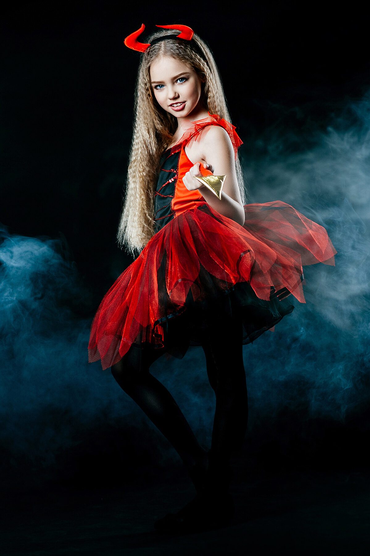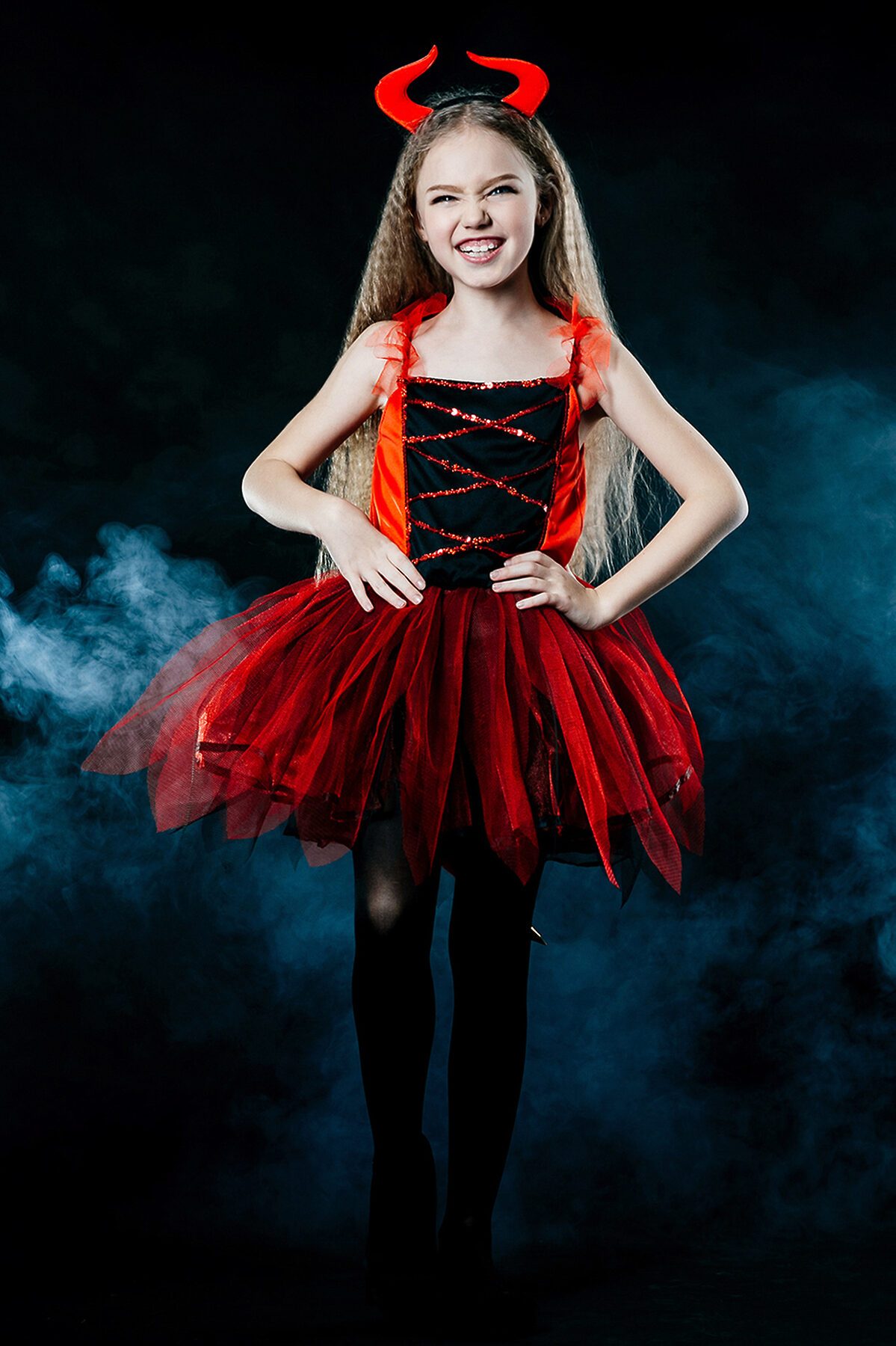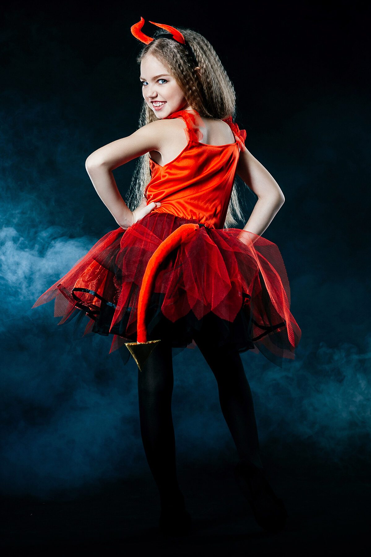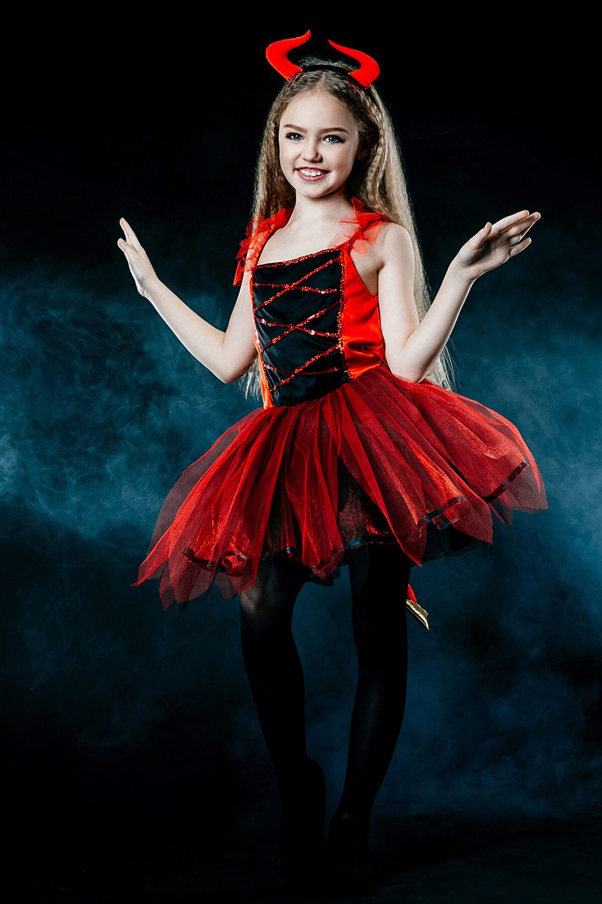 Костюм чертенка состоит из платья, хвоста и ободка с рожками.