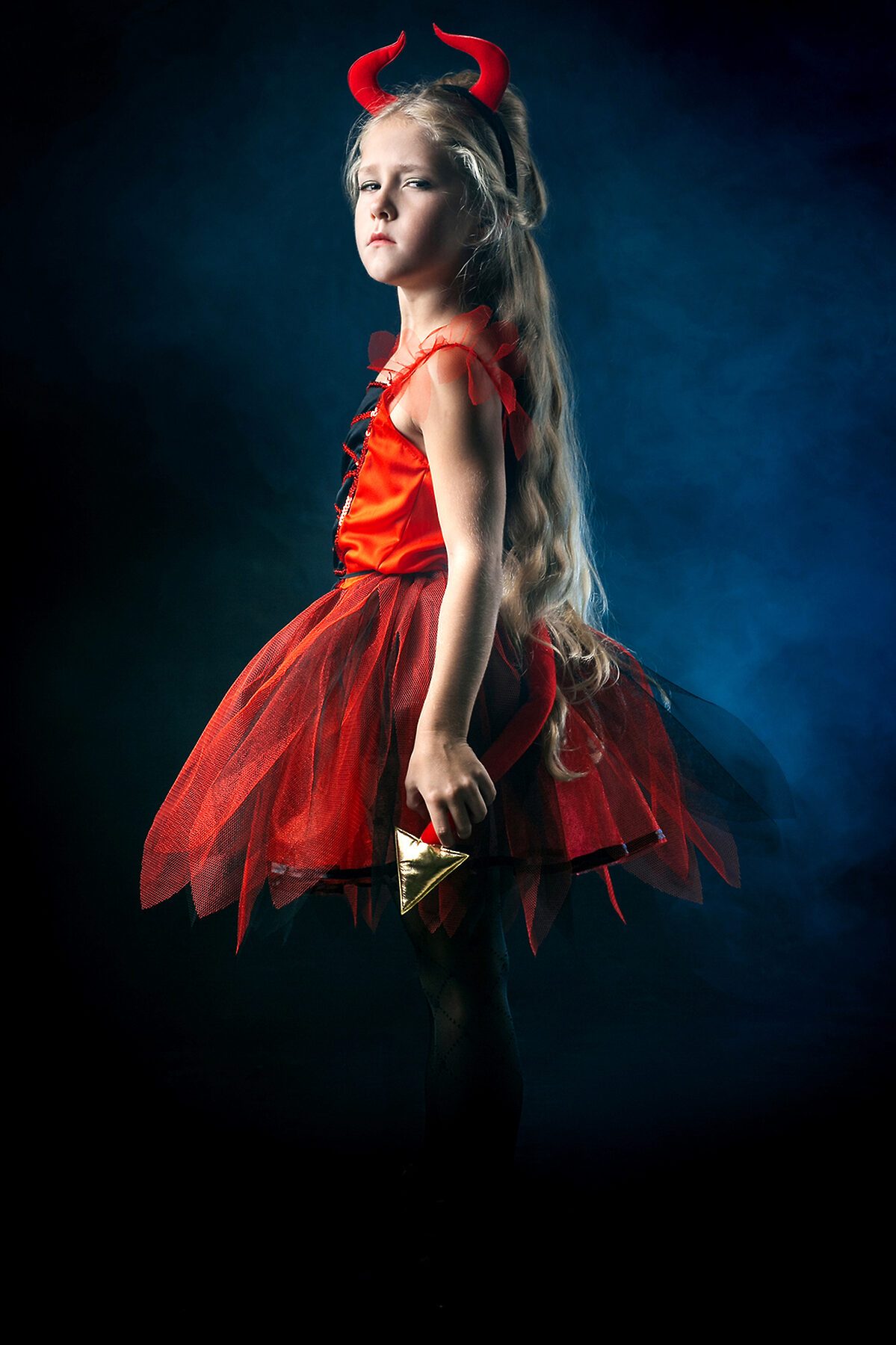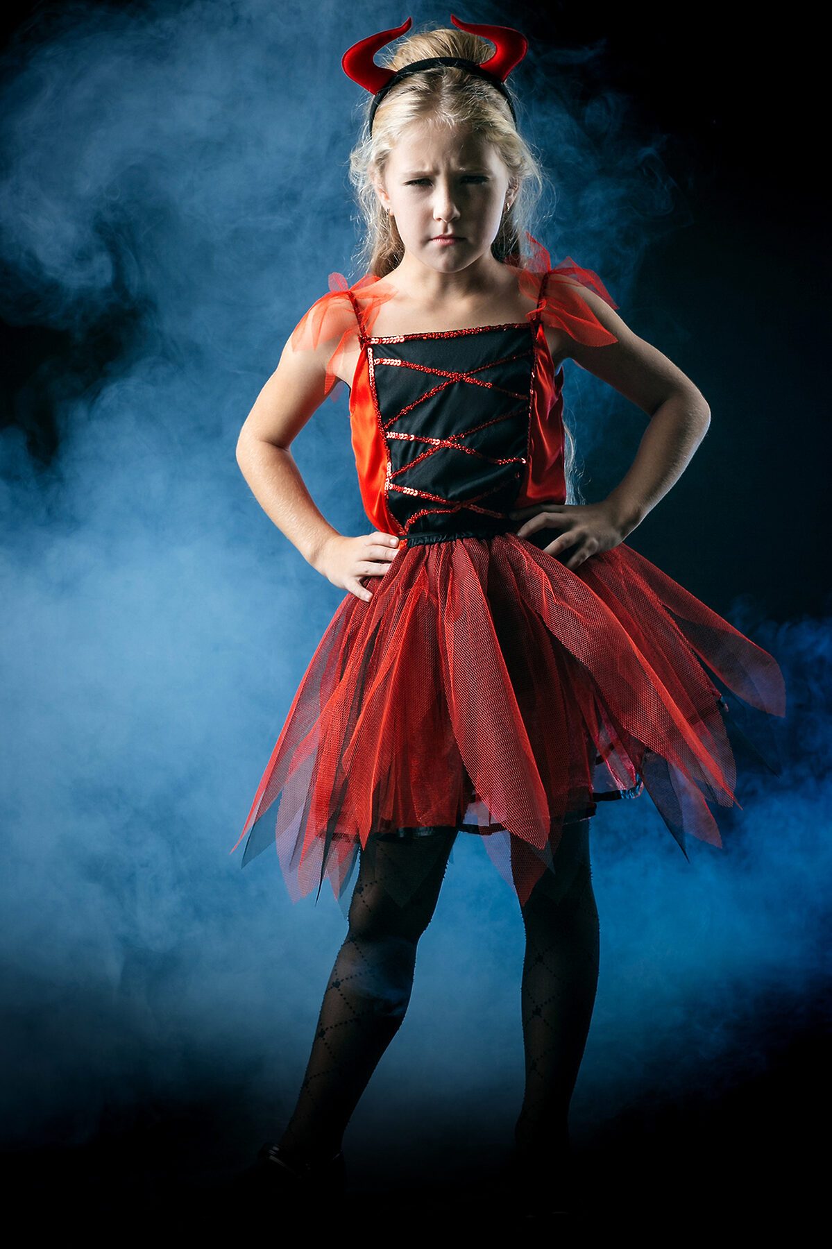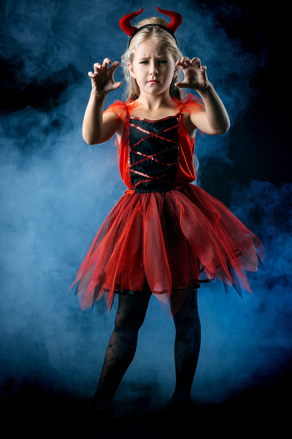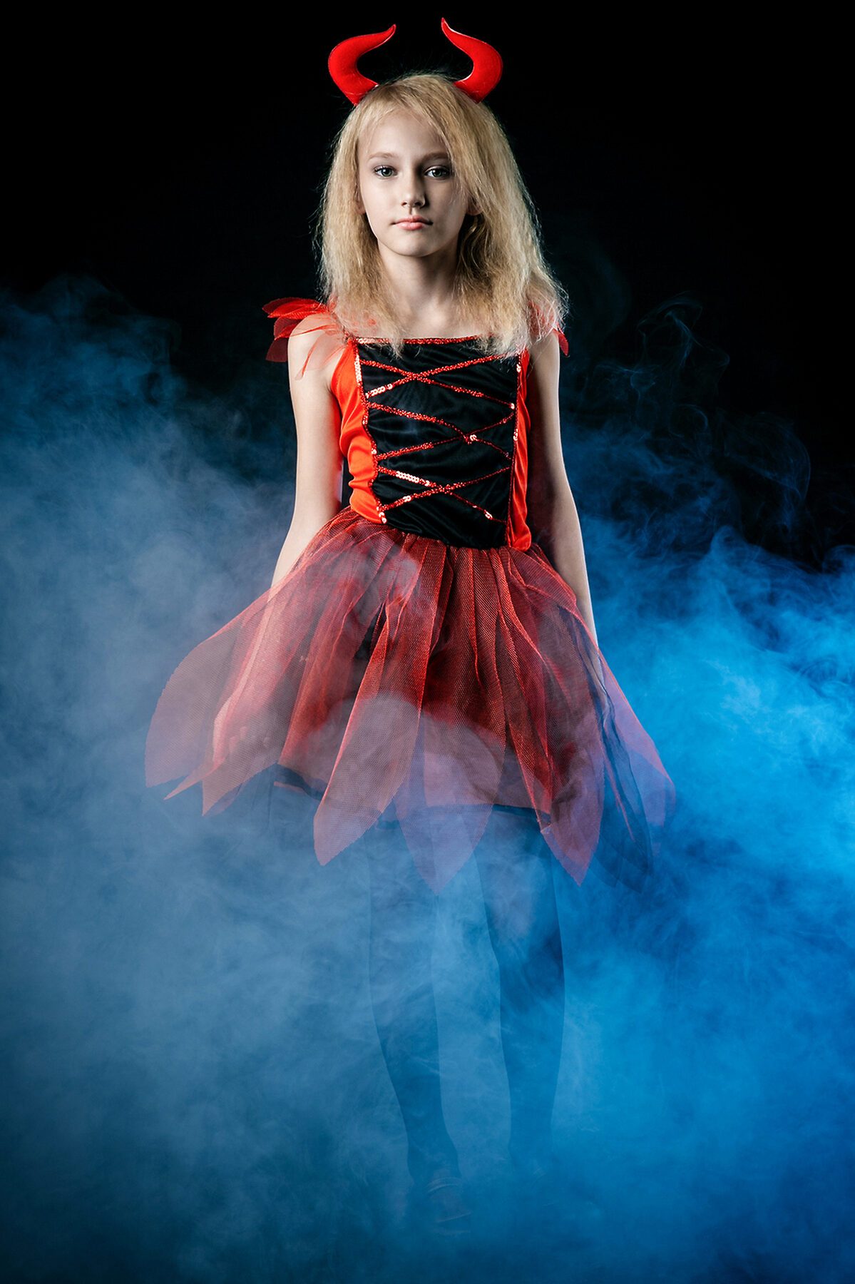 Костюм чертенка состоит из платья, хвоста и ободка с рожками.