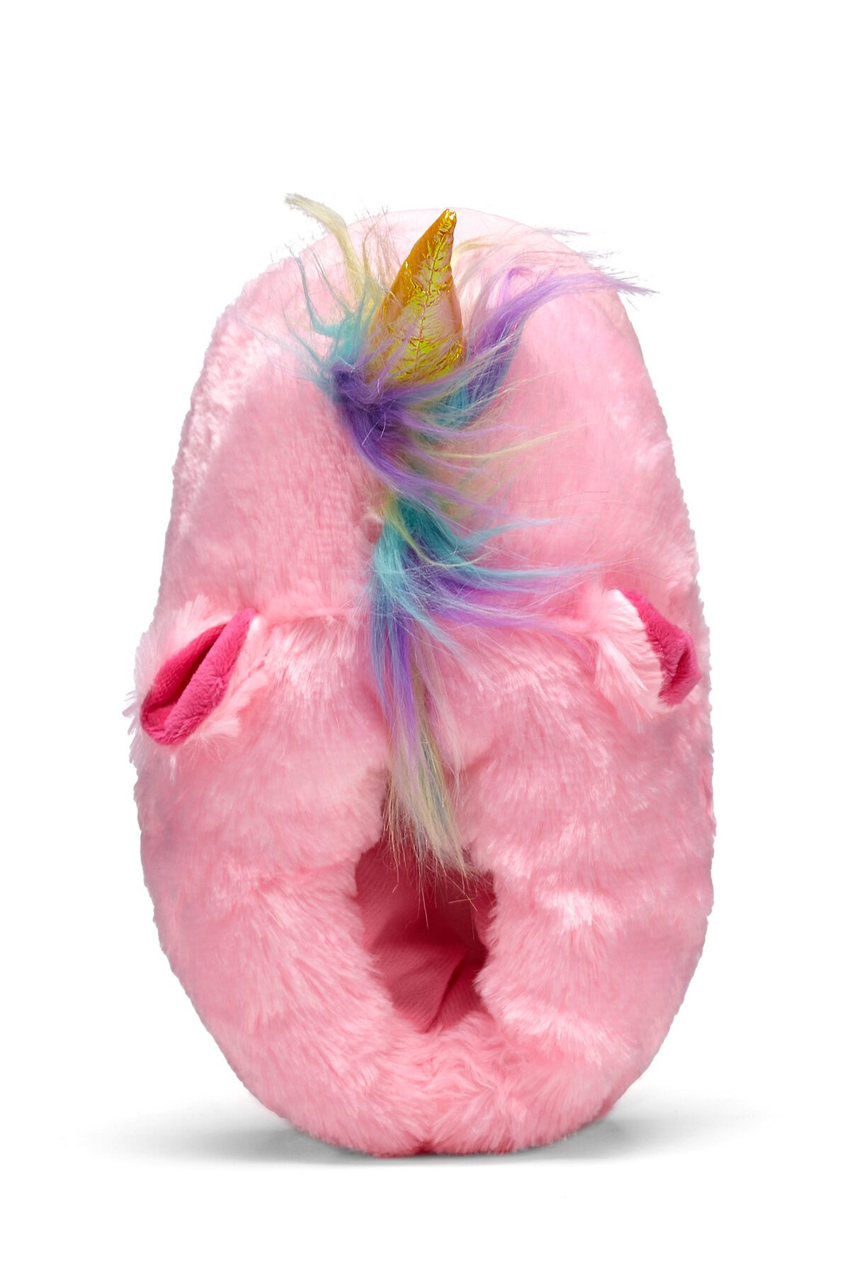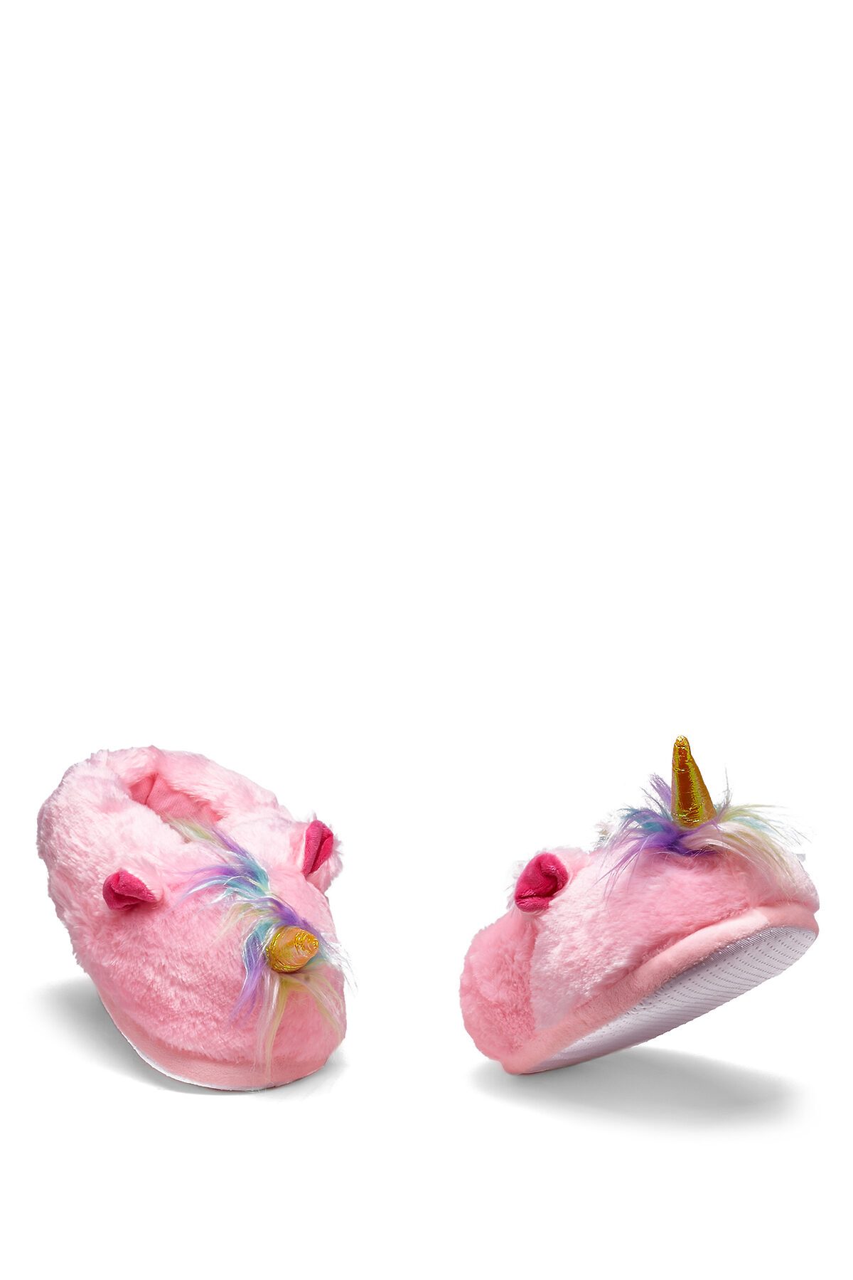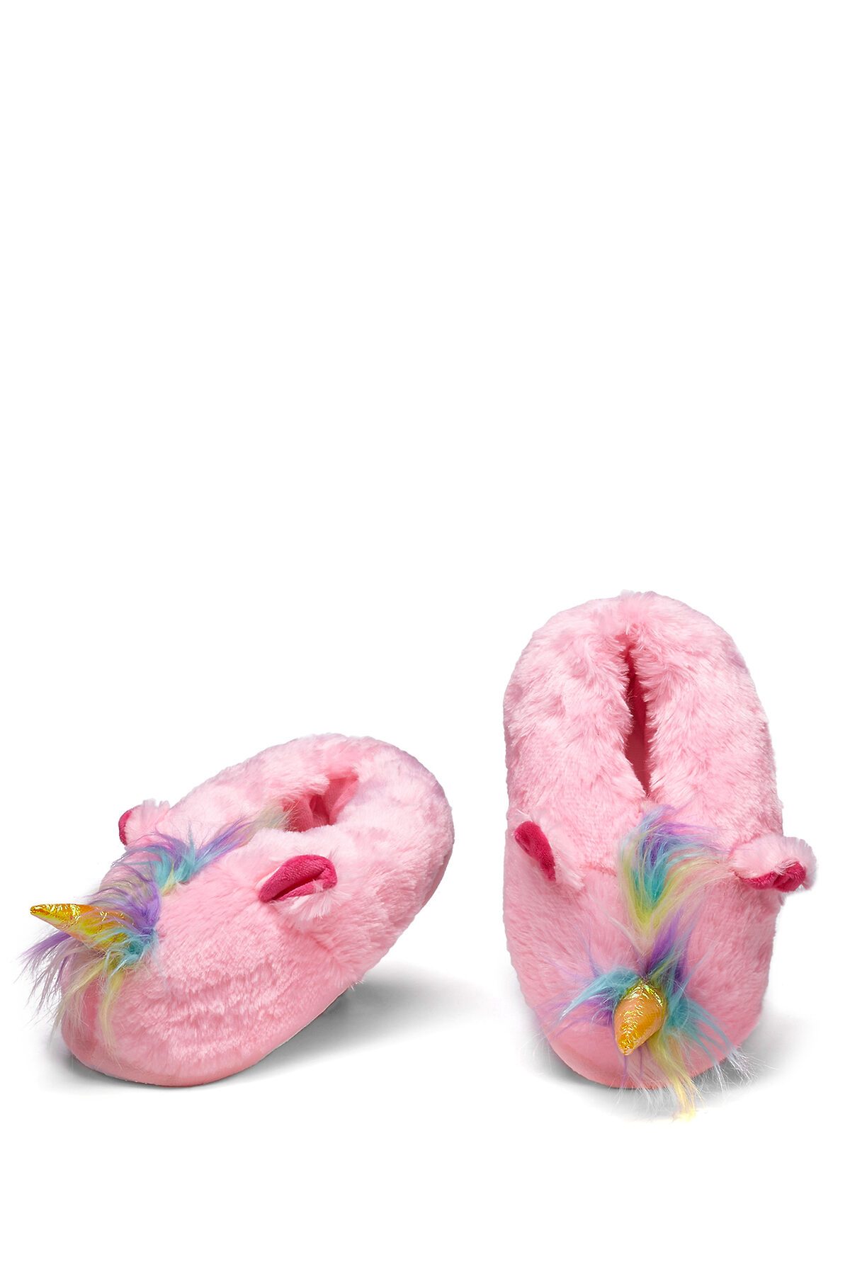 Тапки с закрытой пяткой выполнены из мягкого материала. Прекрасно держат ногу, за счёт плотного наполнителя. Сверху красуется плотно набитый блестящий золотой рог. Подошва с антискользящей поверхностью, достаточно плотная, но вместе с тем гибкая и легкая.