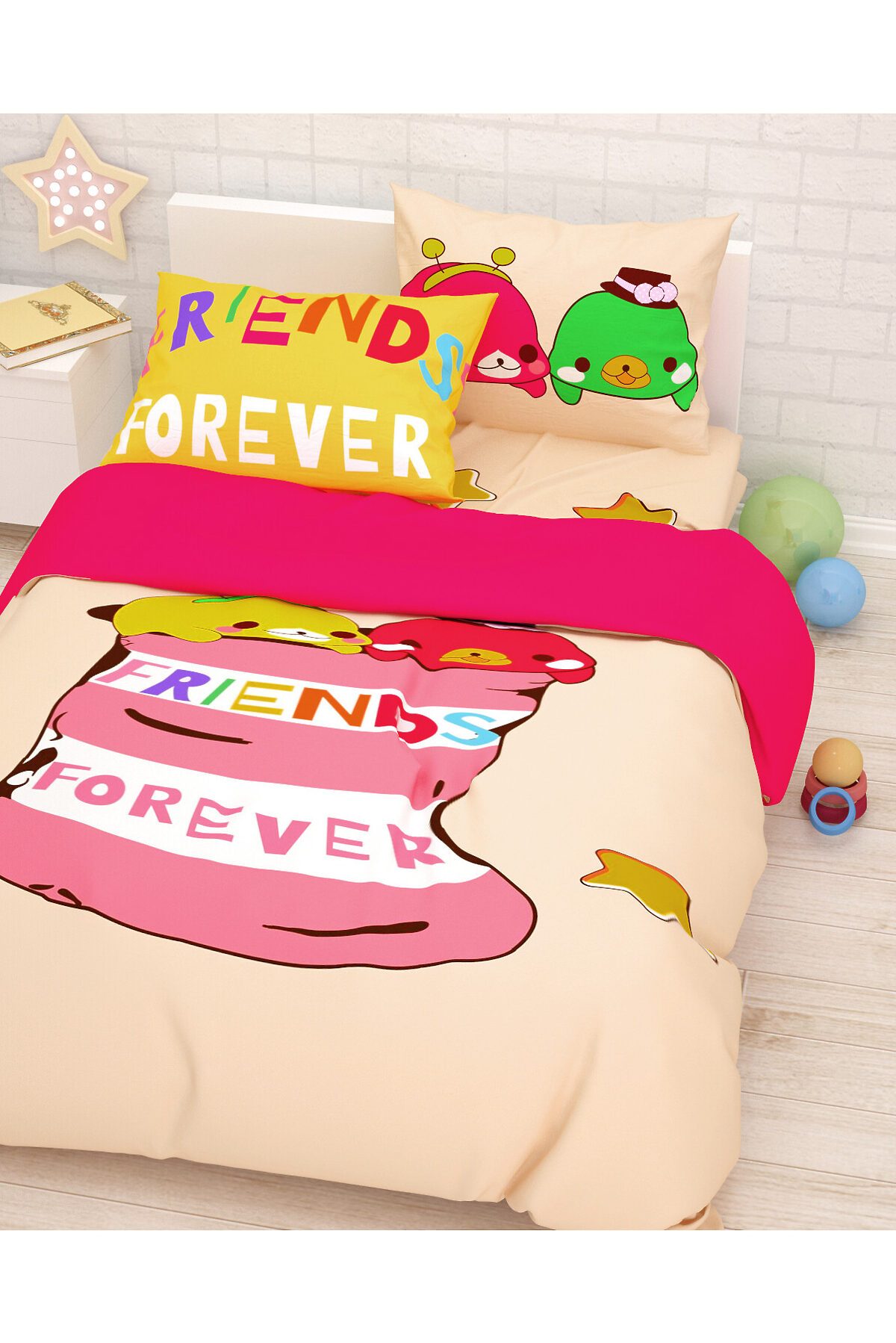 Комплект выполнен из дышащего материала с содержанием хлопка не более 50%. Комплектация: 1,5 - спальный (детский): простыня - 150*220 см,1 шт., пододеяльник- 145*210 см, 1 шт., наволочка 50*70 см, 1 шт; Стирать при 30°С, гладить при температуре 150°С. Товар сертифицирован. Материал: Полисатин Размер:1,5 - спальный
