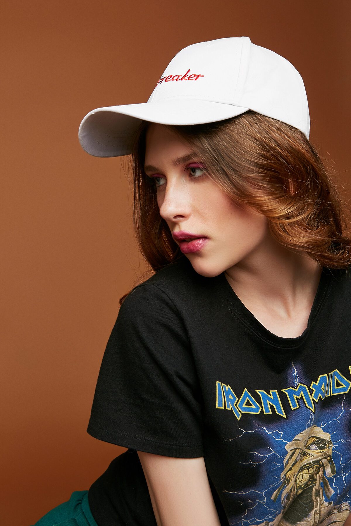Бейсболка из прочного и легкого материала. Сшита из 6-и клиньев, которые наверху соединяются специальной кнопкой. Отверстия на бейсболке обеспечивают вентиляцию, поэтому модель не вызовет дискомфорта. Жесткий козырек надежно защищает от солнца. Размер бейсболки регулируется при помощи пряжки с зажимом. Модель декорирована вышитой спереди надписью "Heartbreaker".