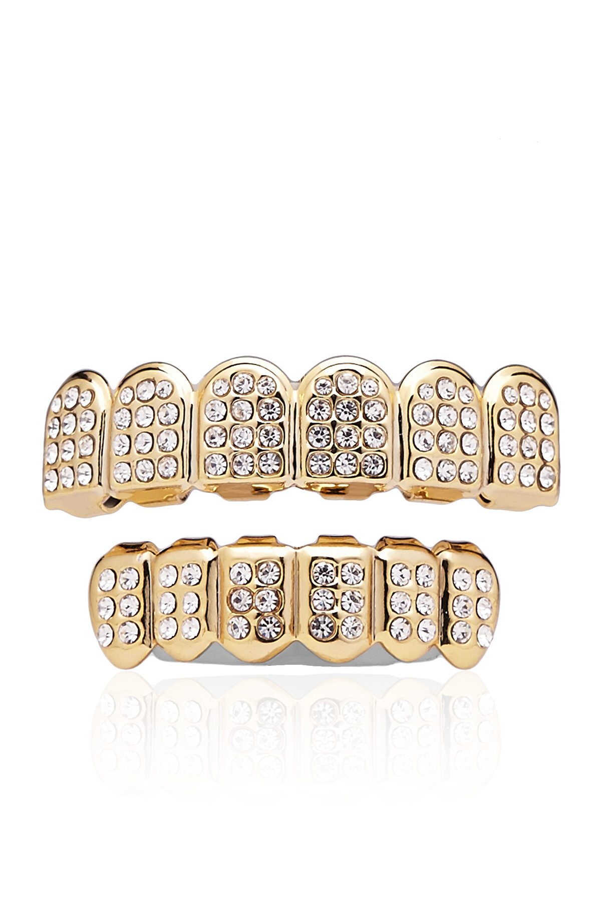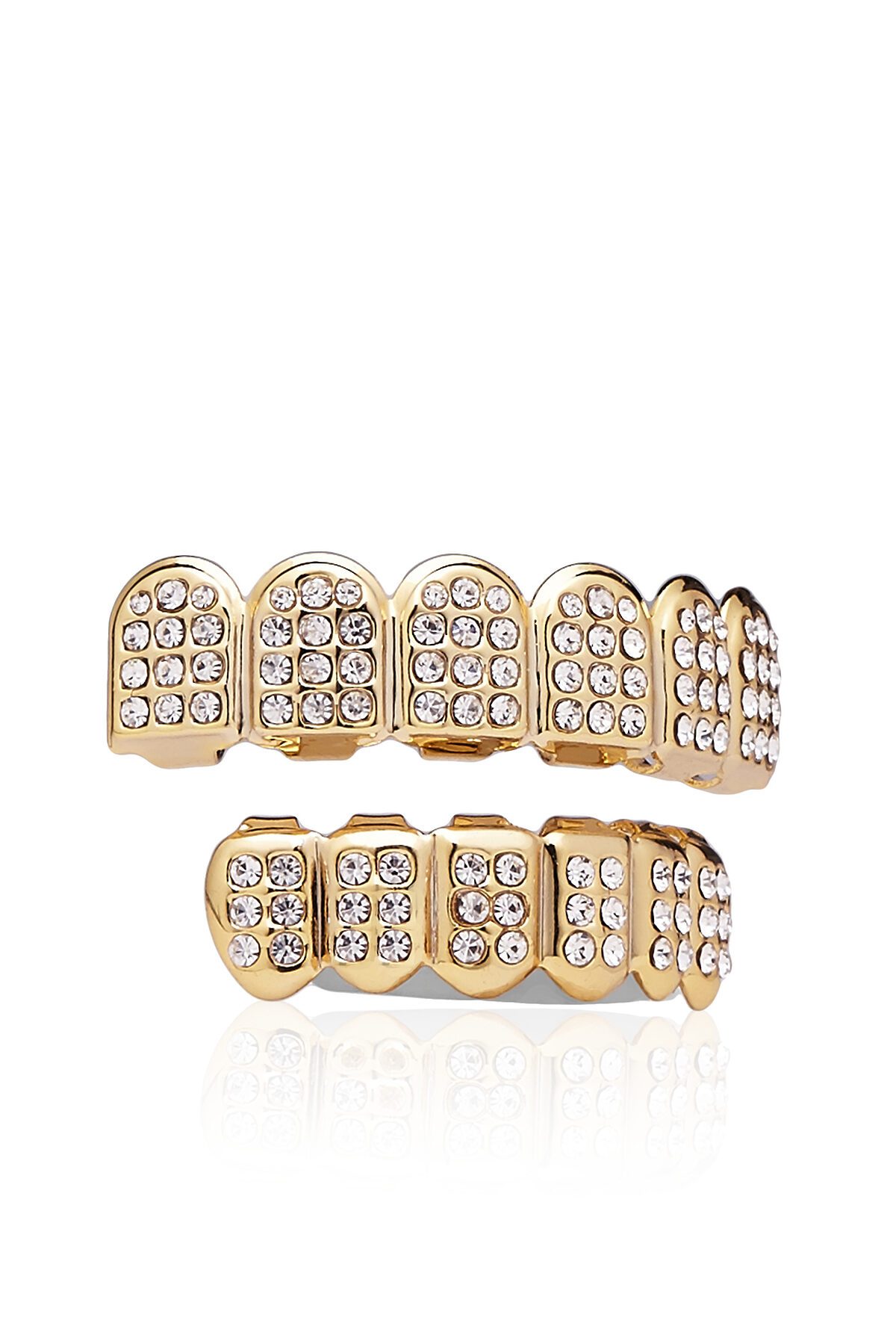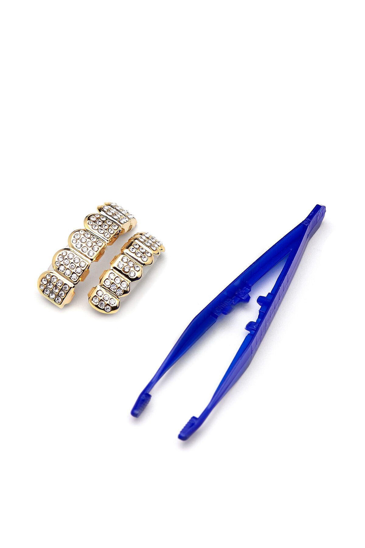 Грилзы выполнены из твердого, но гибкого бижутерного сплава, поэтому подойдут для любой формы зубного ряда. Это классическая модель грилз, инкрустированная стразами. Комплект включает в себя две съемных металлических накладки (для верхней и нижней челюсти), силиконовые вкладыши, пинцет, инструкцию по применению. Чтобы зафиксировать грилз на зубах, поместите в него силиконовый вкладыш и с помощью пинцета опустите в горячую воду на 15 секунд. Достаньте украшение и наденьте на зубной ряд, прижав его к внутренней поверхности зубов микрозажимами.