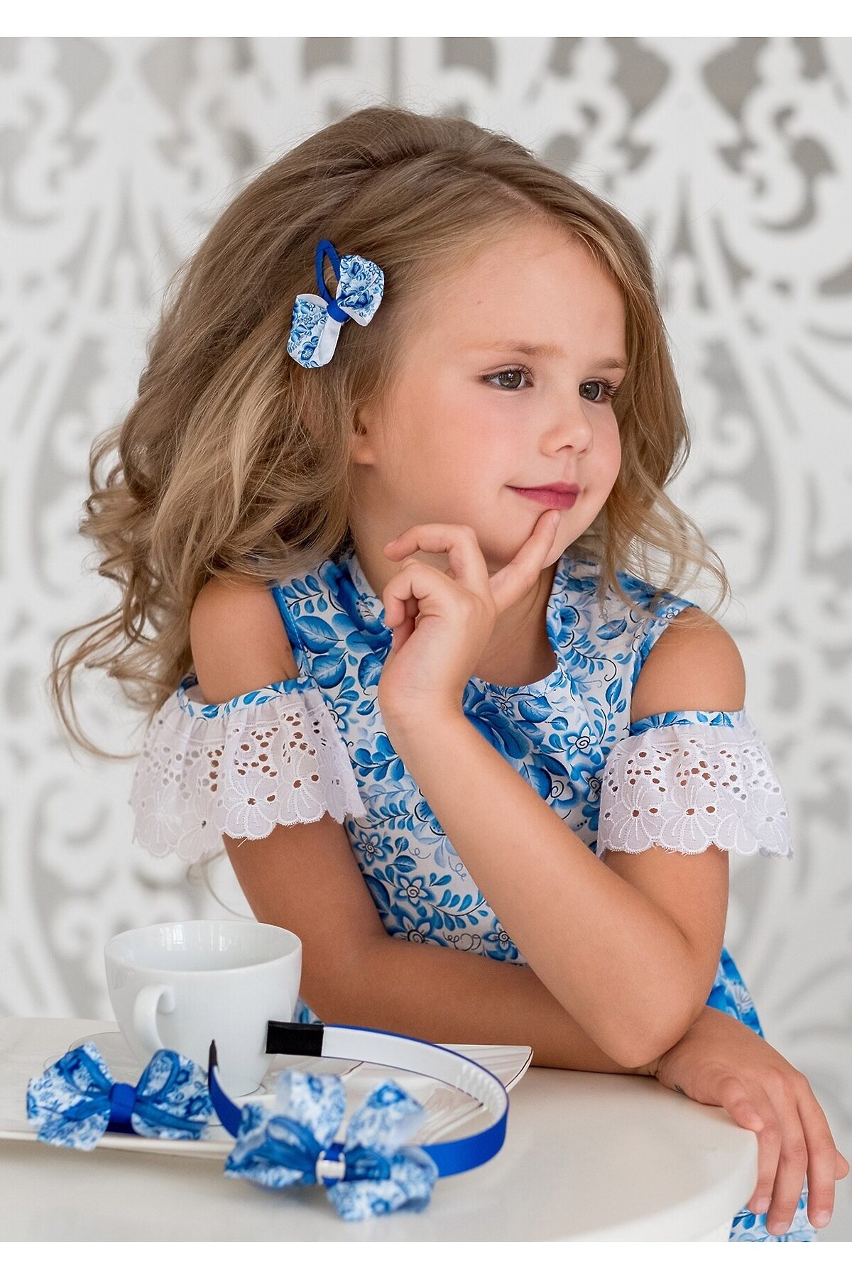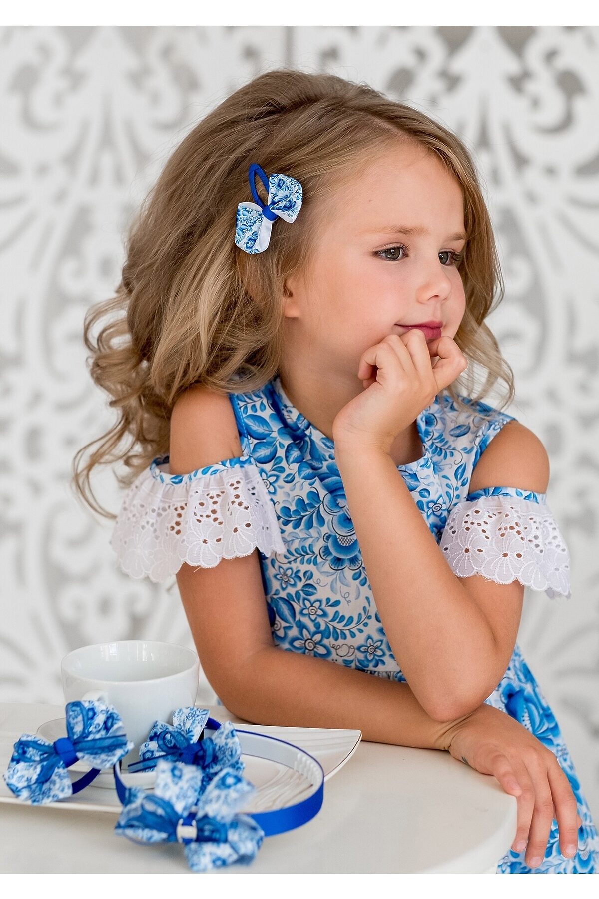Восхитительная заколка-зажим с принтом "гжель"для девочек. Набор из 6 комплектов.