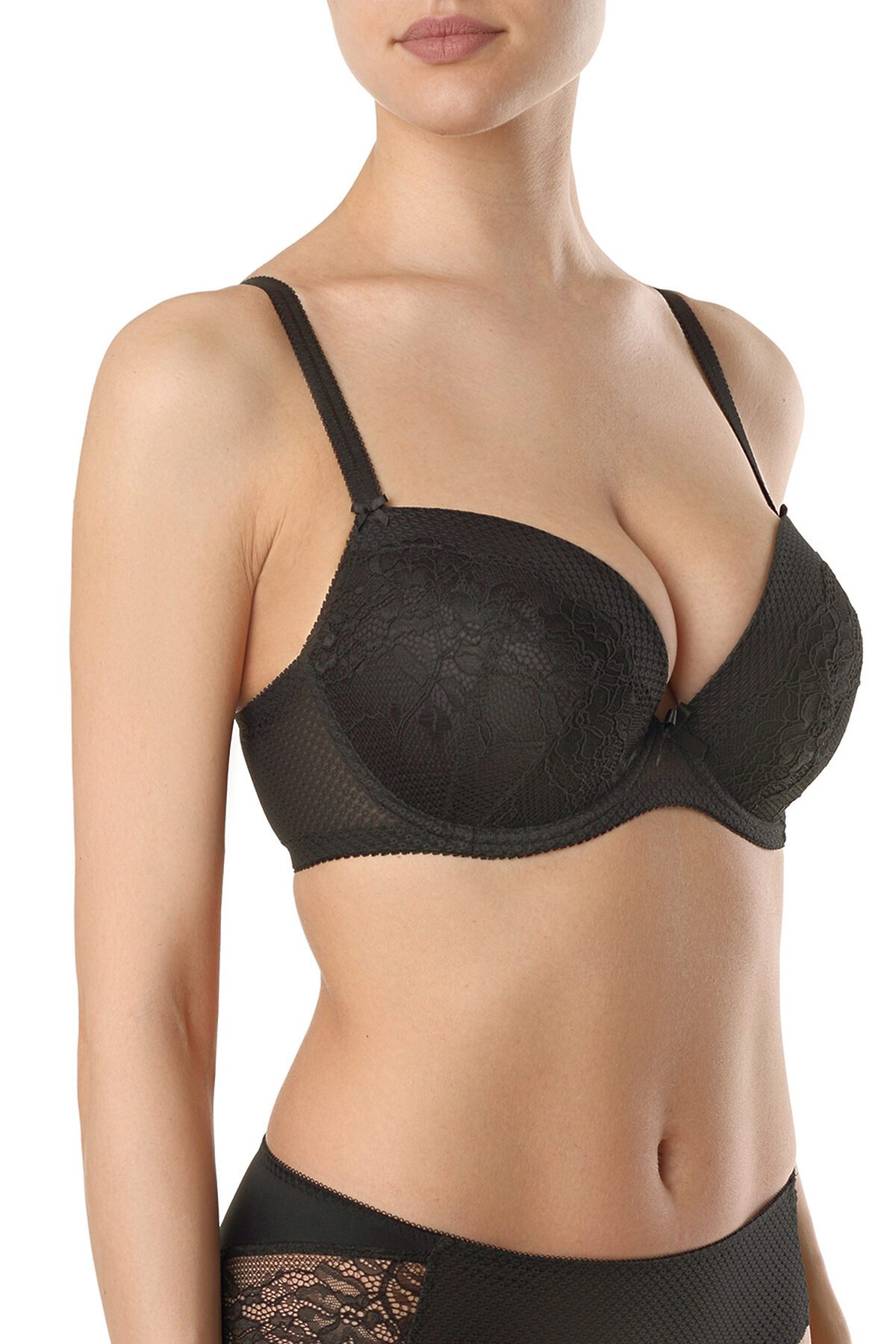 Бюстгальтер серии ETUDE создан для поклонниц женственного образа, легкости и комфорта. Эффектная комбинация кружева с нитью «кордоне» и жаккардового сетчатого полотна, безупречная поддержка и широкий размерный ряд сделают белье серии ETUDE вашим фаворитом! Специально разработанная форма чашки приподнимает грудь и создает соблазнительную линию декольте, имитируя эффект «пуш-ап» без дополнительного объема внутри чашки. - формованная чашка - имитация эффекта «push-up» - на каркасах - боковые детали стана на подкладке.