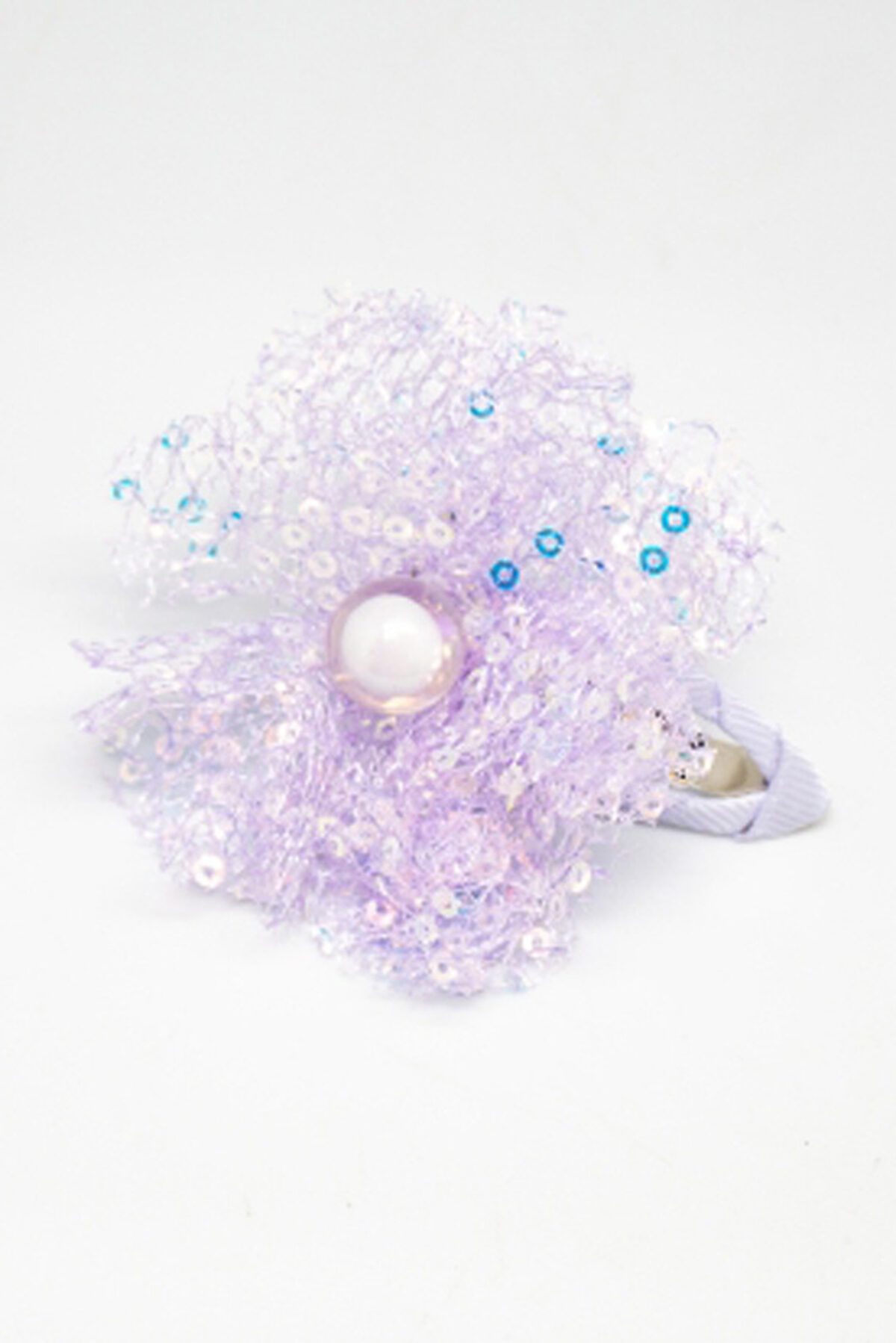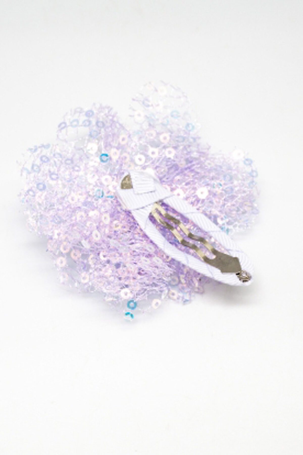 Яркий зажим в виде цветка из пайеток. Длина 6 см. Длина зажима 5 см. Набор из 6 шт.