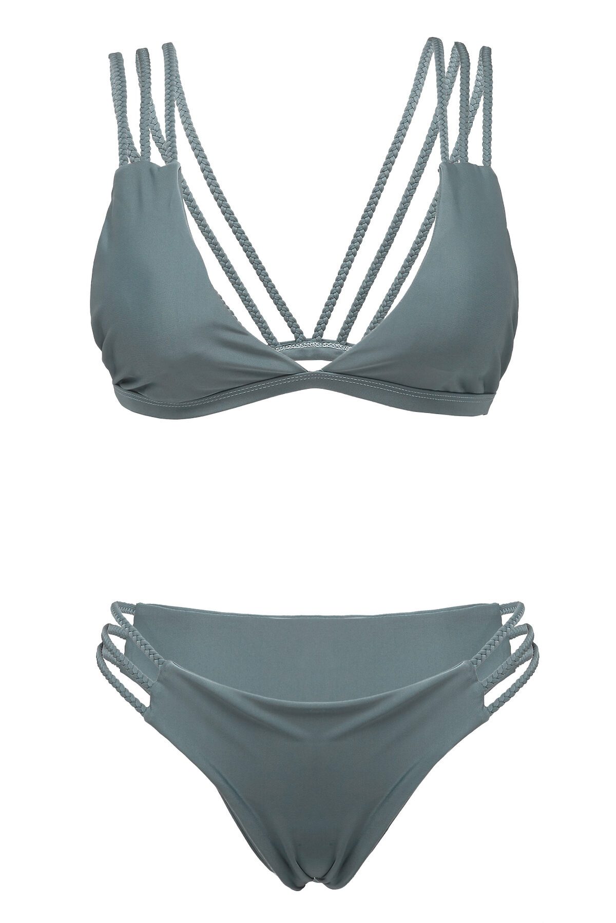 Раздельный купальник выполнен из гладкого эластичного материала. Лифчик без застежки, с уплотненными чашечками. Уплотнители съемные, посадка плавок средняя. Параметры модели на фото 88-60-88 см, рост - 166 см. На ней купальник размера М.