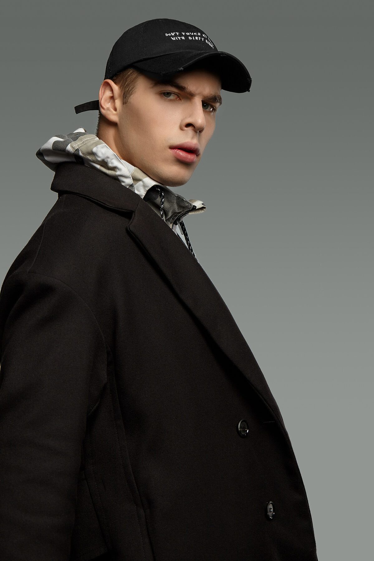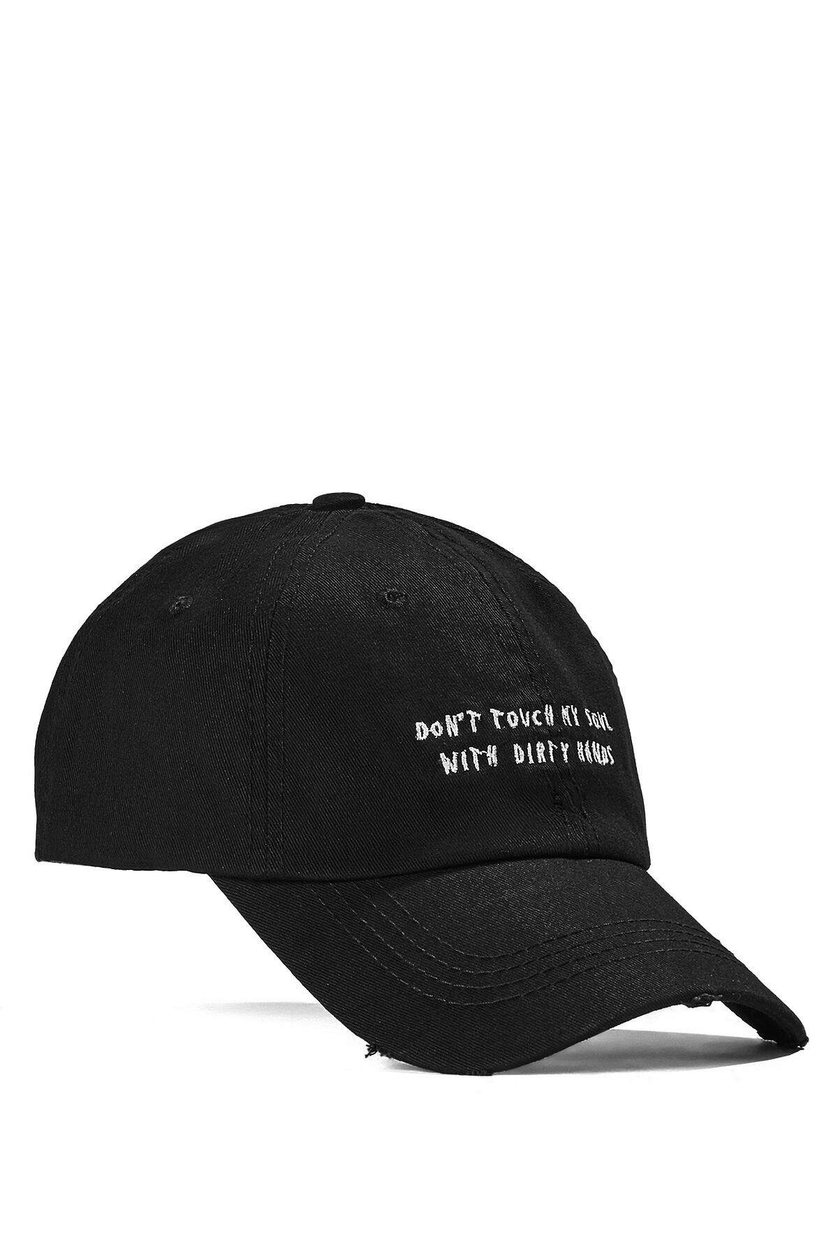 Бейсболка состоит из 6 клиньев, соединенных наверху специальной кнопкой. Спереди на бейсболке имеется вышитая надпись. Клинья декорированы отверстиями, обшитыми тонкой нитью. Фронтальная часть козырька украшена потертостями. Тканевая застежка с металлической пряжкой на задней части позволяет регулировать размер. Аксессуар изготовлен из хлопчатобумажной ткани, подкладка отсутствует.