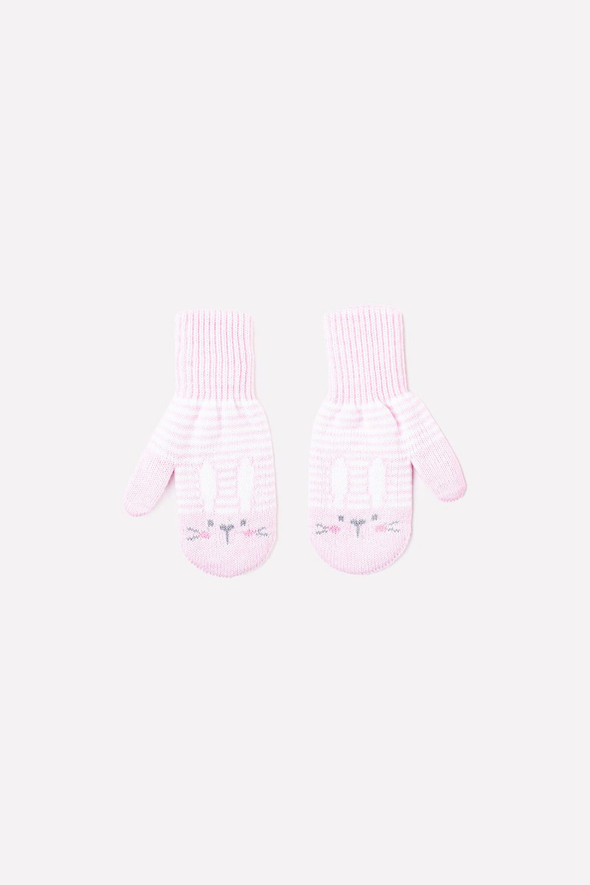 Варежки для девочки двухслойные из полушерстяной пряжи, в полоску. На тыльной стороне рисунок. Эластичные манжеты.