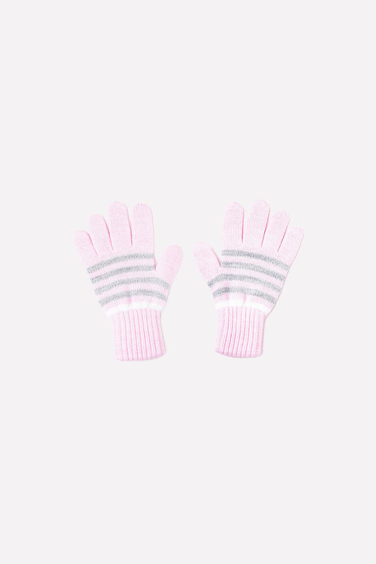 Перчатки для девочки из полушерстяной пряжи, в полоску. Эластичные манжеты.