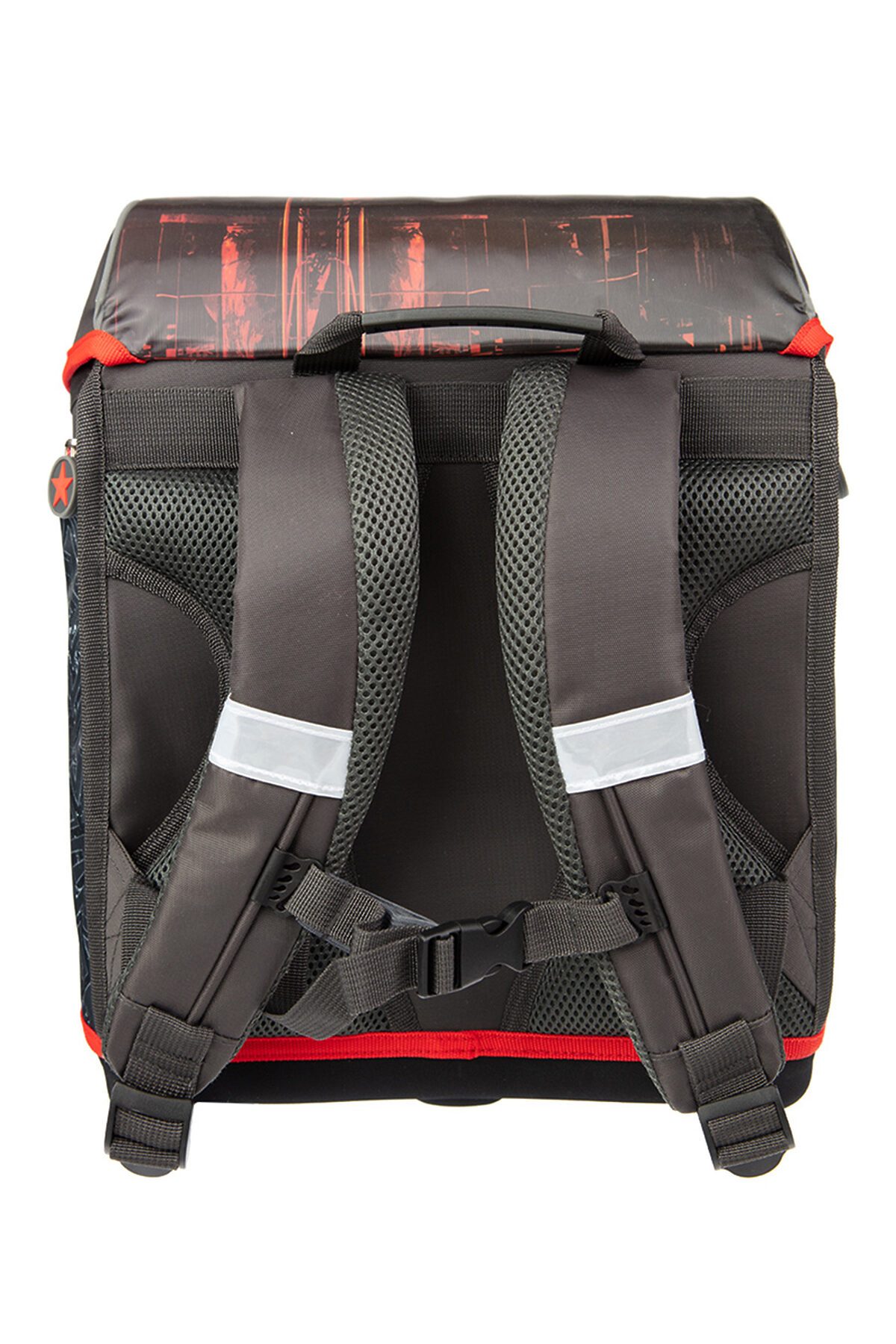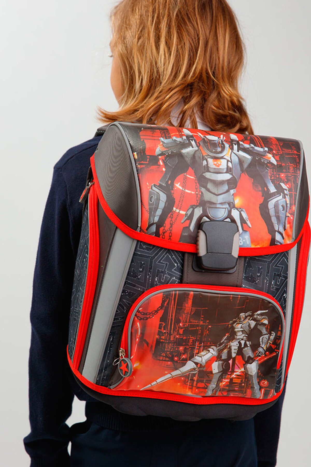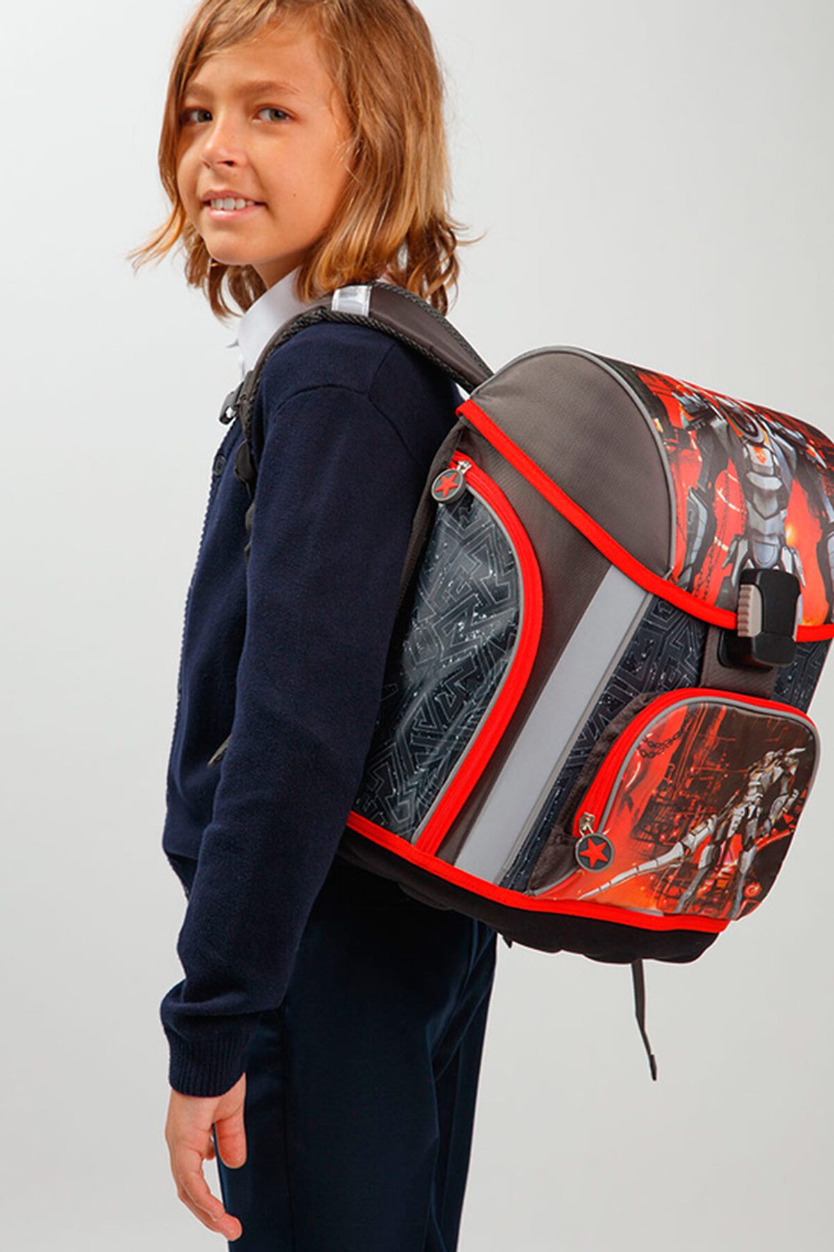 Современный формованный ранец с ортопедической вентилируемой спинкой, распределяющей равномерно нагрузку на спину ребенка; широкие прочные лямки не врезаются в плечи; регулируемые лямки подстраиваются под рост и одежду ребенка; ранец отлично держит форму, не деформируется при складывании в него школьных принадлежностей; устойчивое дно с пластиковой накладкой; влагозащитная пропитка; размеры 29х17х41 см; облегченная конструкция; светоотражающие элементы на лямках; основное отделение с застежкой на карабине, два боковых кармана на молнии; внешний карман на молнии; в основном отделении большой внутренний карман с уплотненной стенкой. В комплект можно подобрать мешок для обуви и пенал.