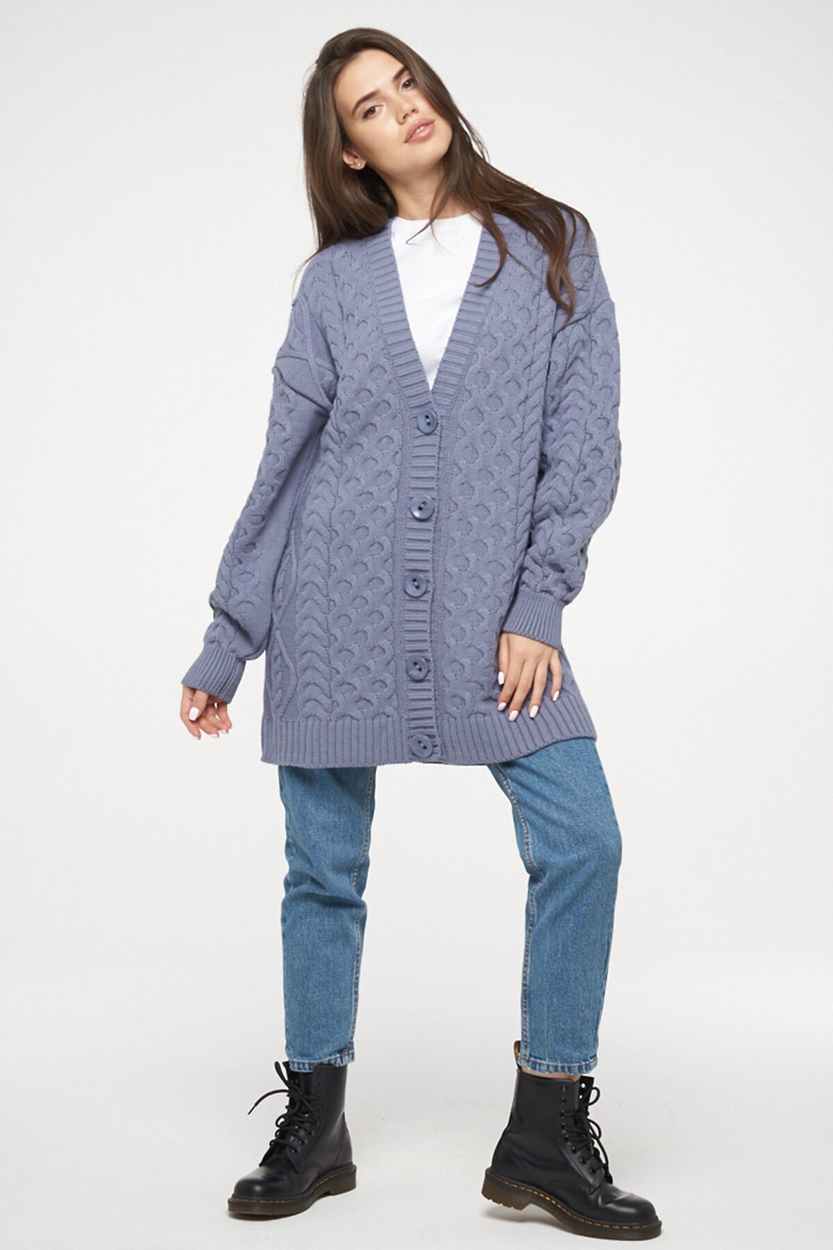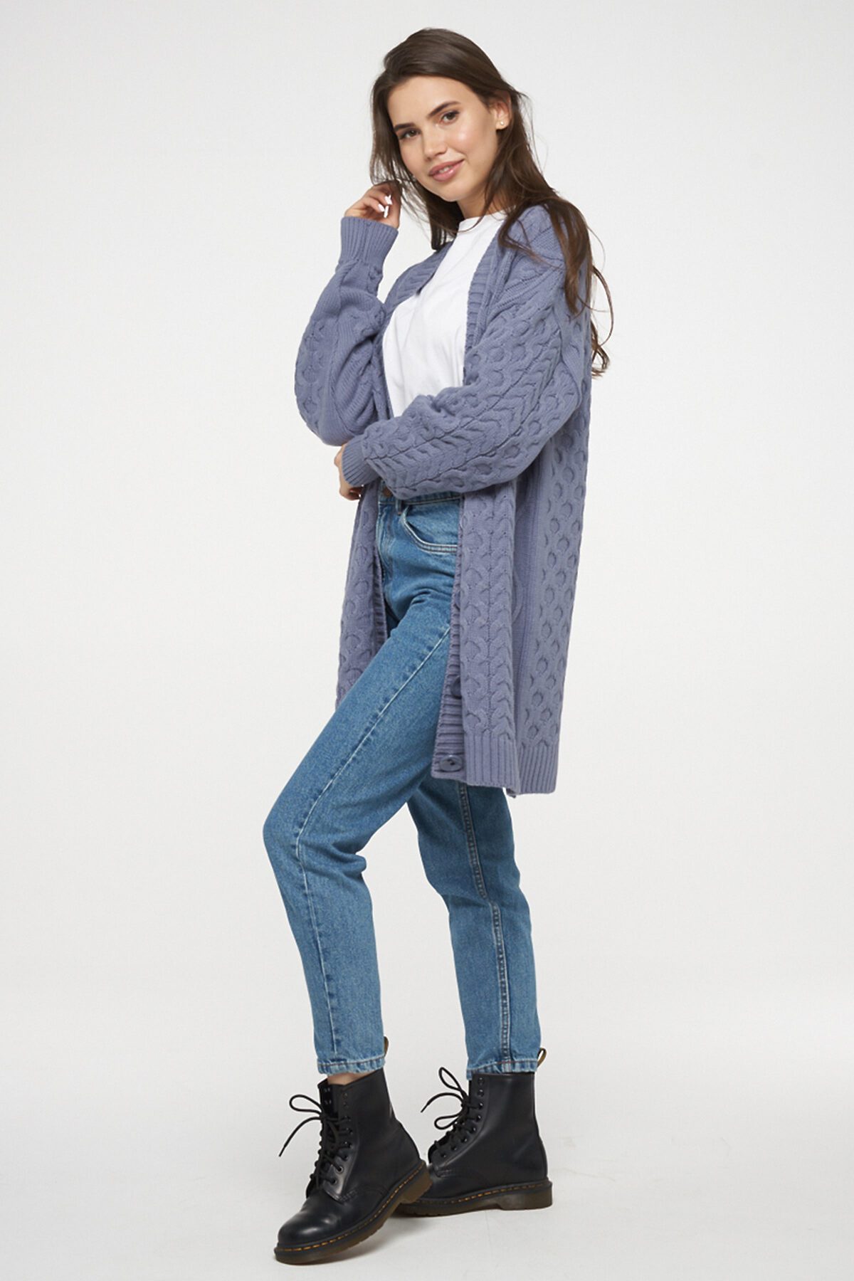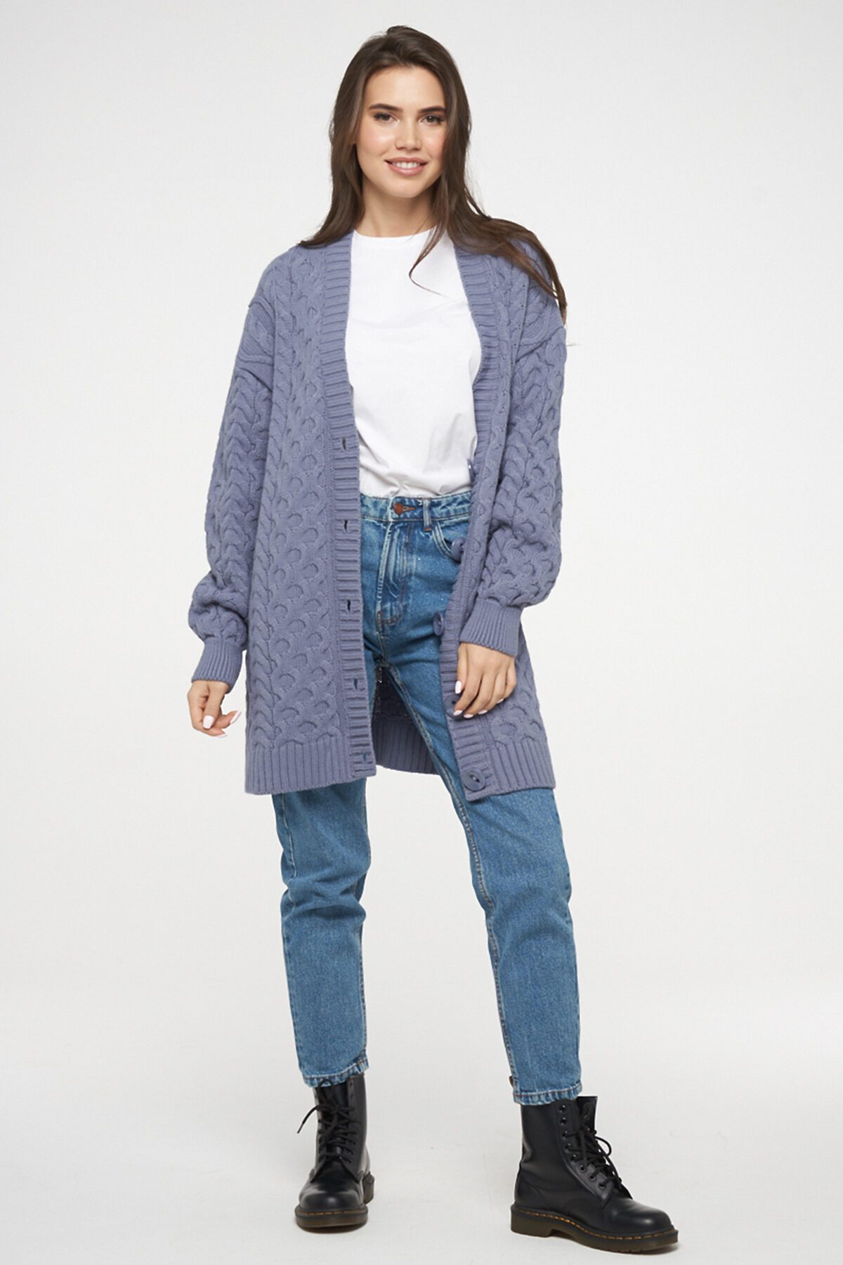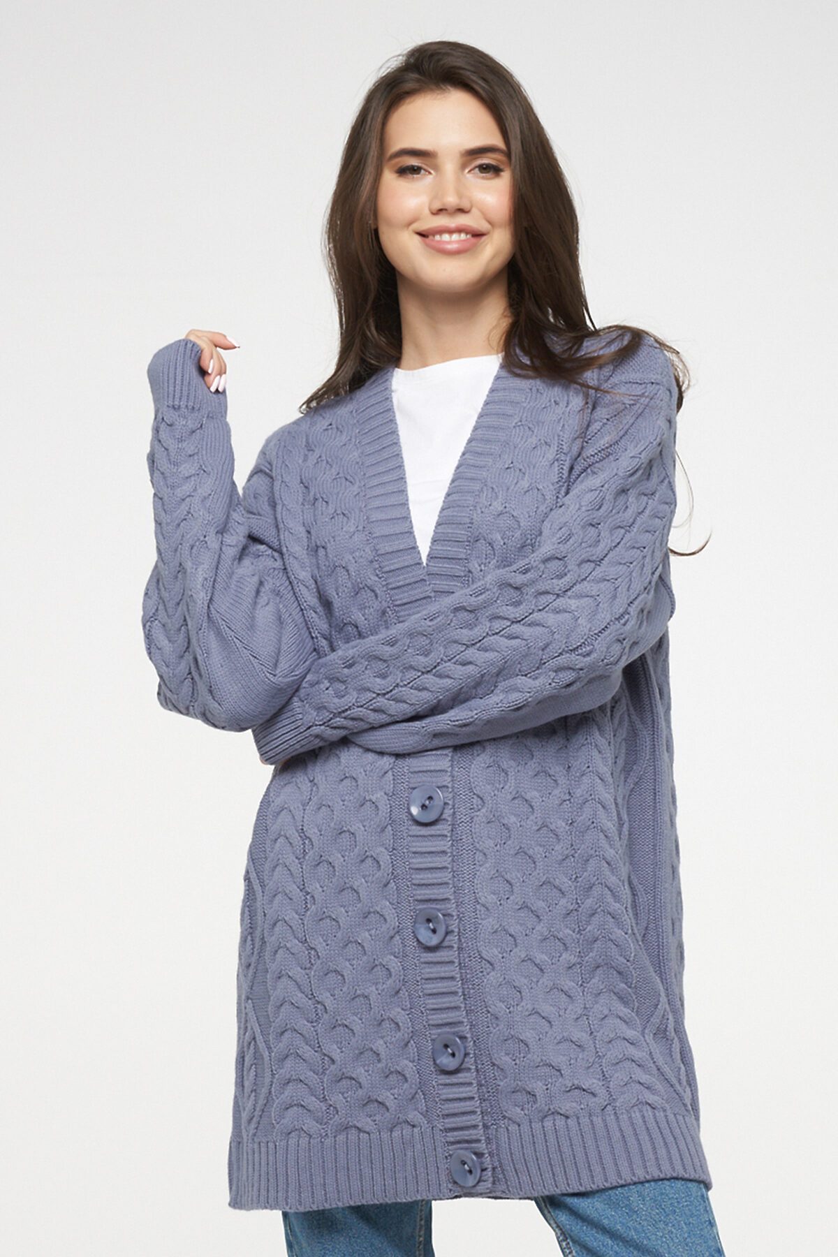 Женский ажурный жакет средней длины с длинными рукавами и V-образным воротником на пуговицах. Отличное решение для базового гардероба.