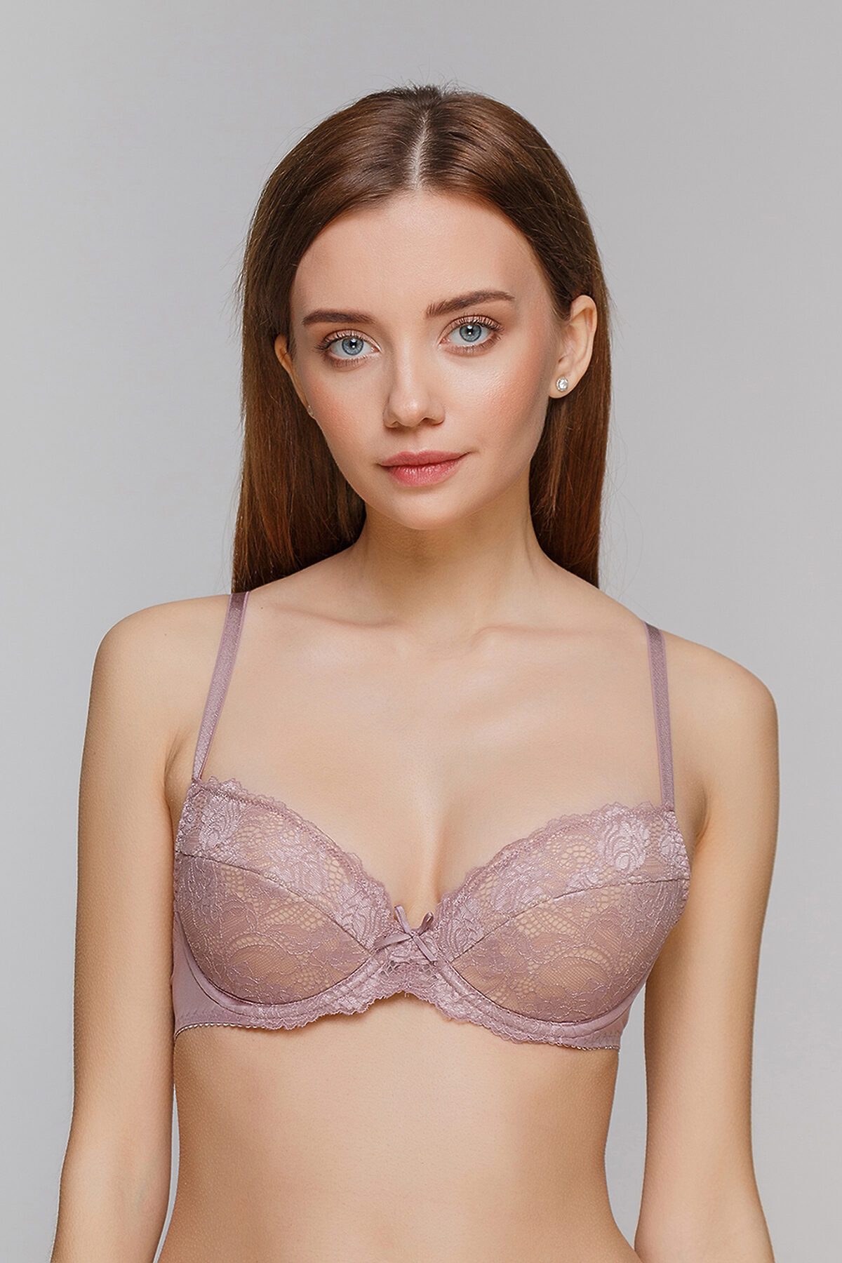 Бюстгальтер "пуш-ап" из эластичного кружева и эластичного кружевного полотна. На каркасах. Чашки на дубляже с хлопком и объёмными вкладышами, с двойным членением. Отделка – атласный бантик.