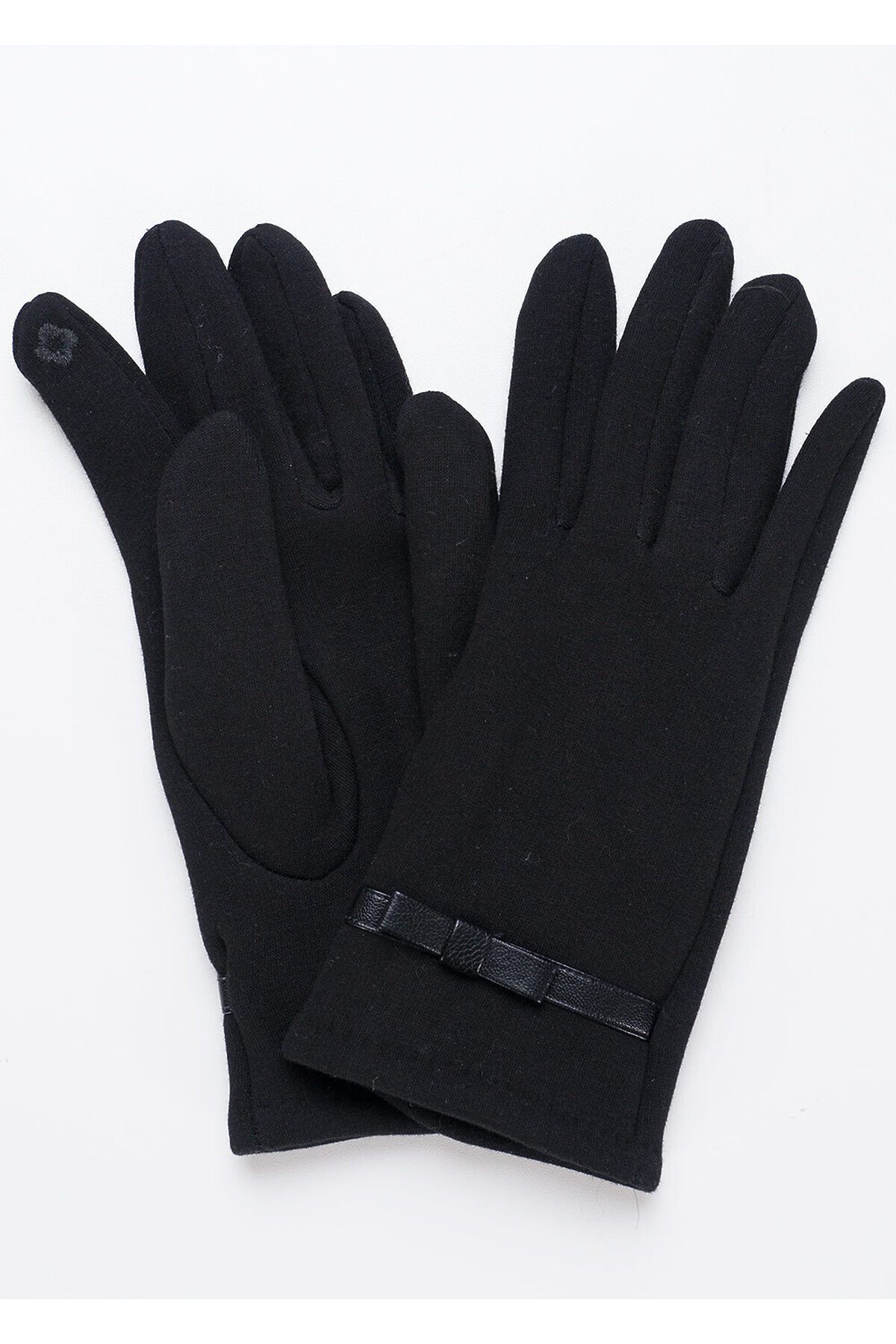 Женские перчатки из трикотажного полотна имитирующего внутри искусственный мех, декорированы кожанным ремешком на запястье, на большом и указательном пальцах вышивка "сенсорными" нитками, размер 18. Продажи по 10 шт