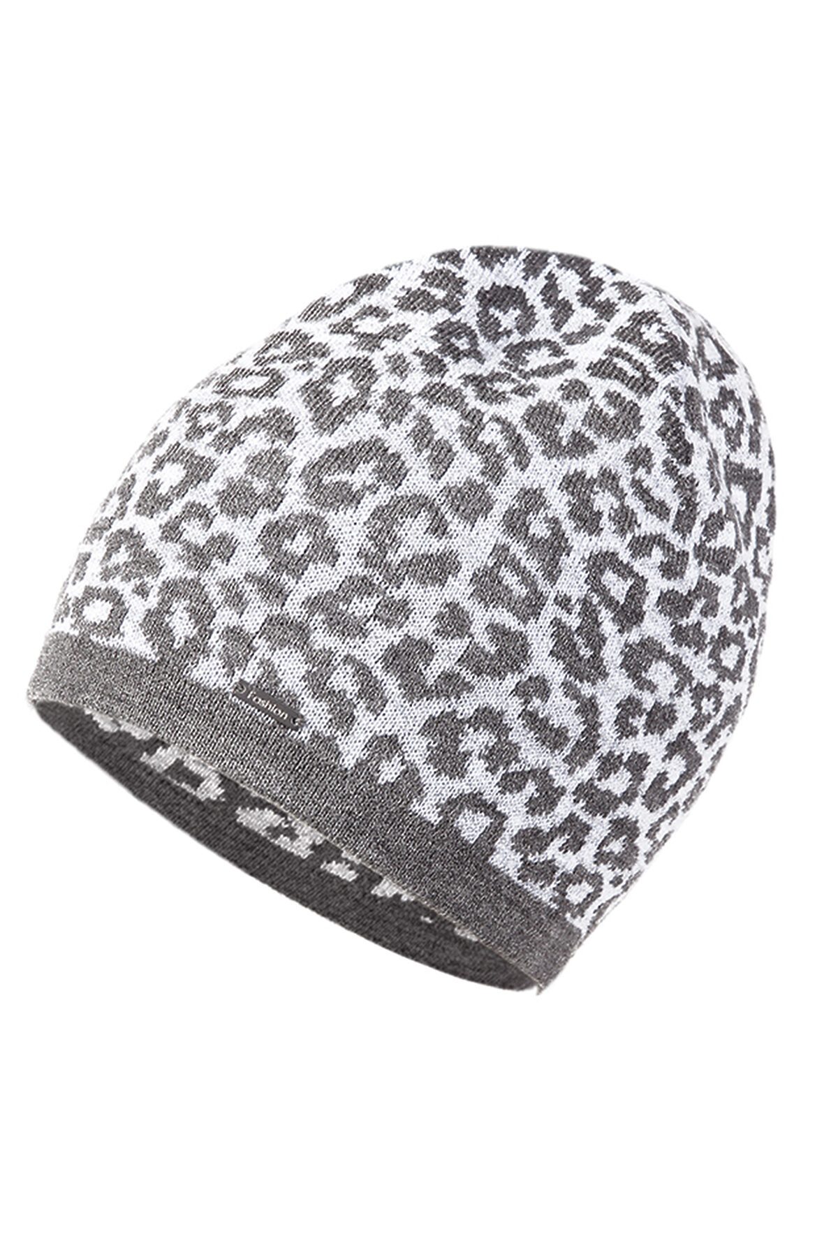 Шапка для девочек выполнена леопардовым принтом, спереди логотип в виде небольшого страза.