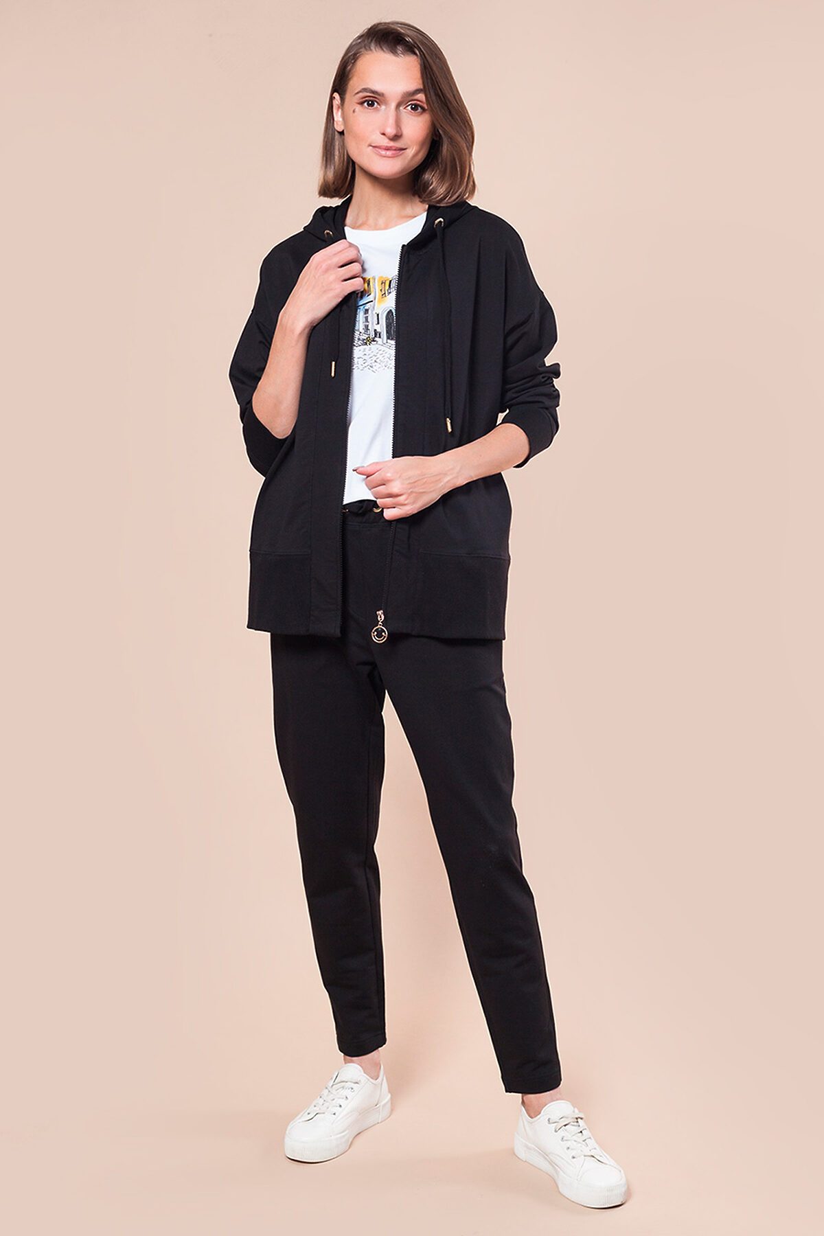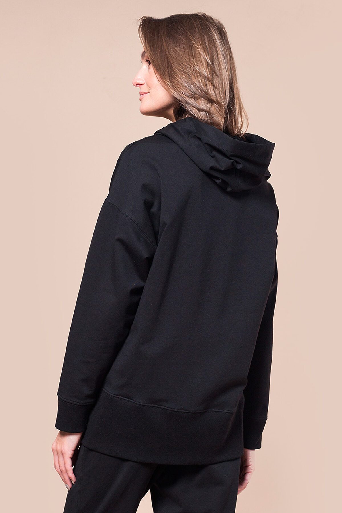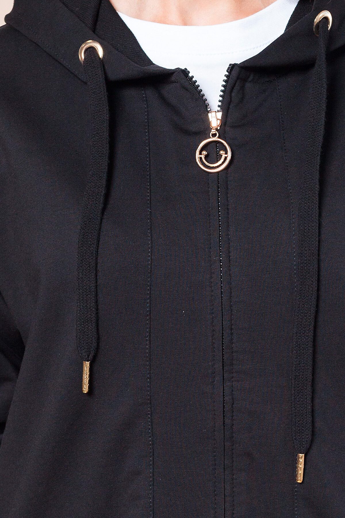 Джемпер с капюшоном из плотного футера, без рибаны снизу, удлинённый сзади. Фурнитура золотистого цвета - люверсы и наконечники на широком шнуре в капюшоне. ВНИМАНИЕ!!! При выборе размера опирайтесь на фотографию с замерами изделия!