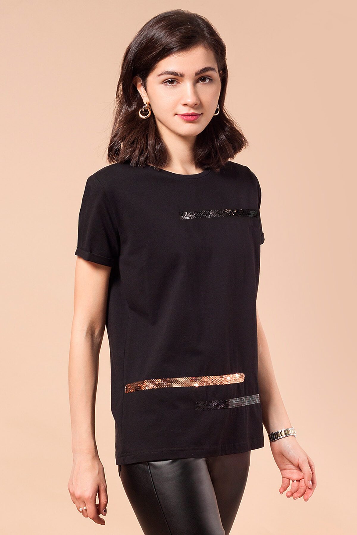 Футболка прямая с коротким рукавом,с вышивкой пайетками. ВНИМАНИЕ!!! При выборе размера опирайтесь на фотографию с замерами изделия!