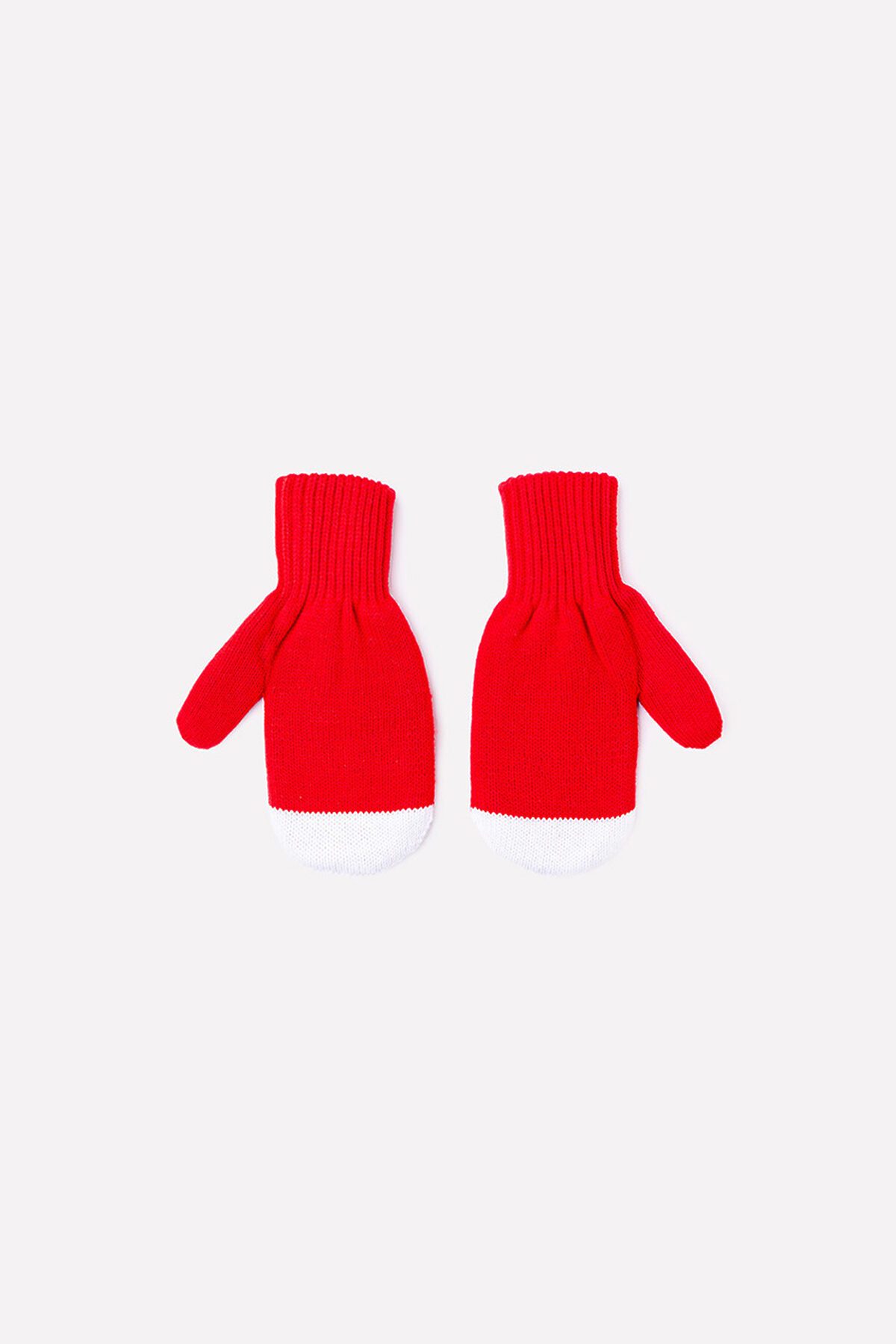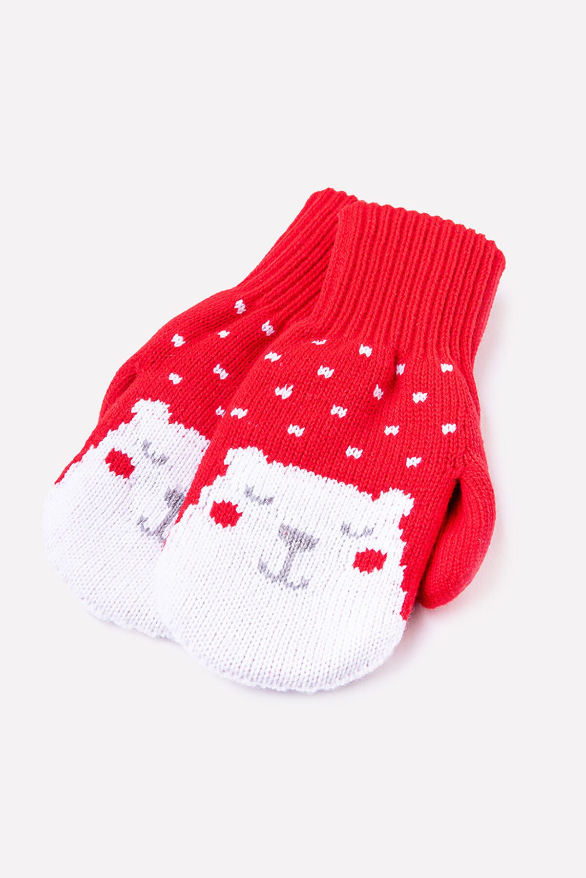 Детские варежки двухслойные из акриловой пряжи, в горох. На тыльной стороне рисунок. Эластичные манжеты.