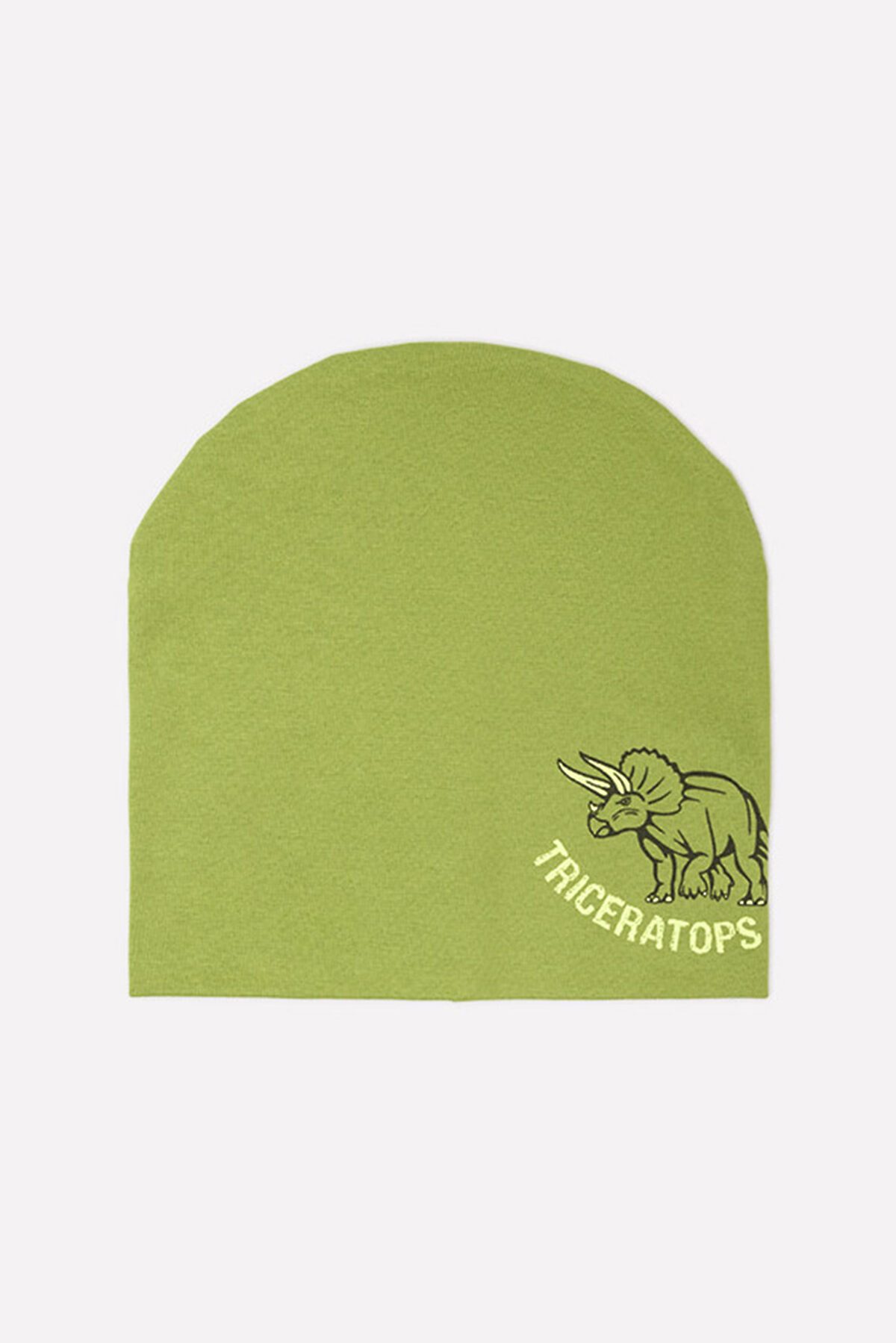 Шапка из однотонного эластичного трикотажа супрем, двойная. Удлиненная скругленная макушка. Сбоку принт.